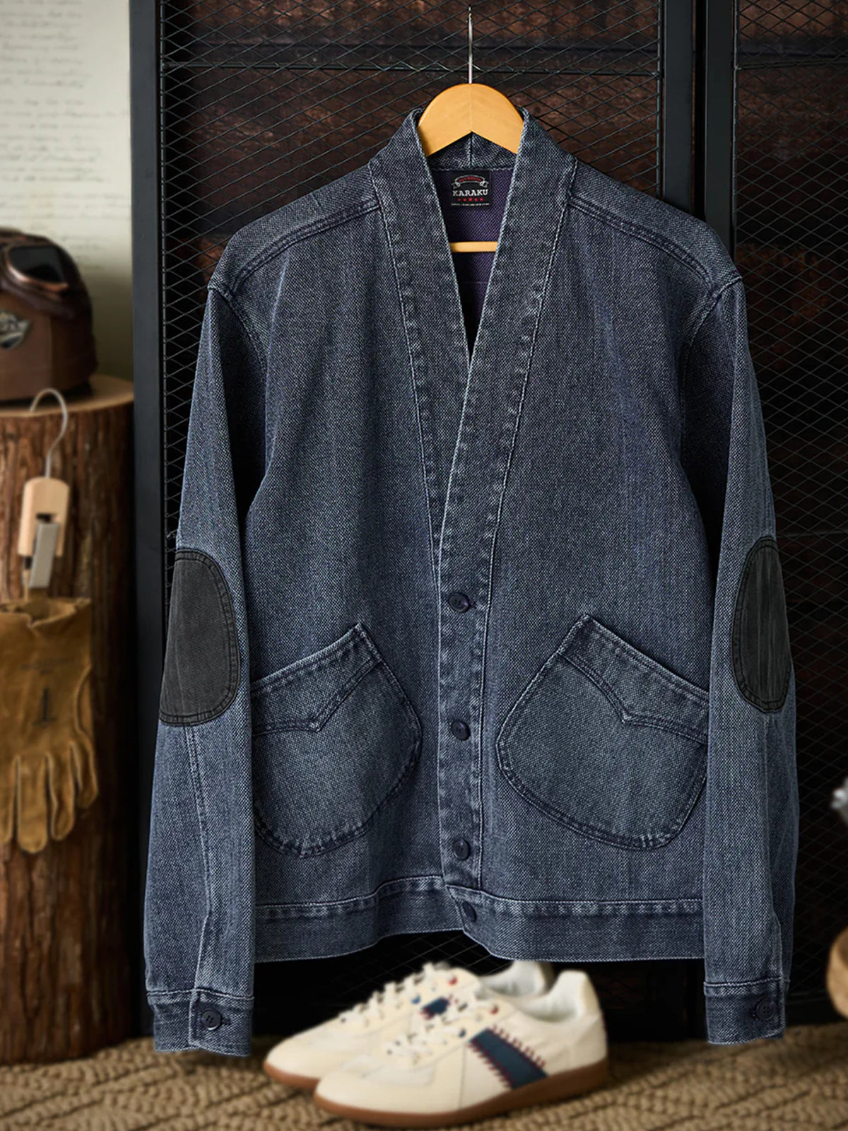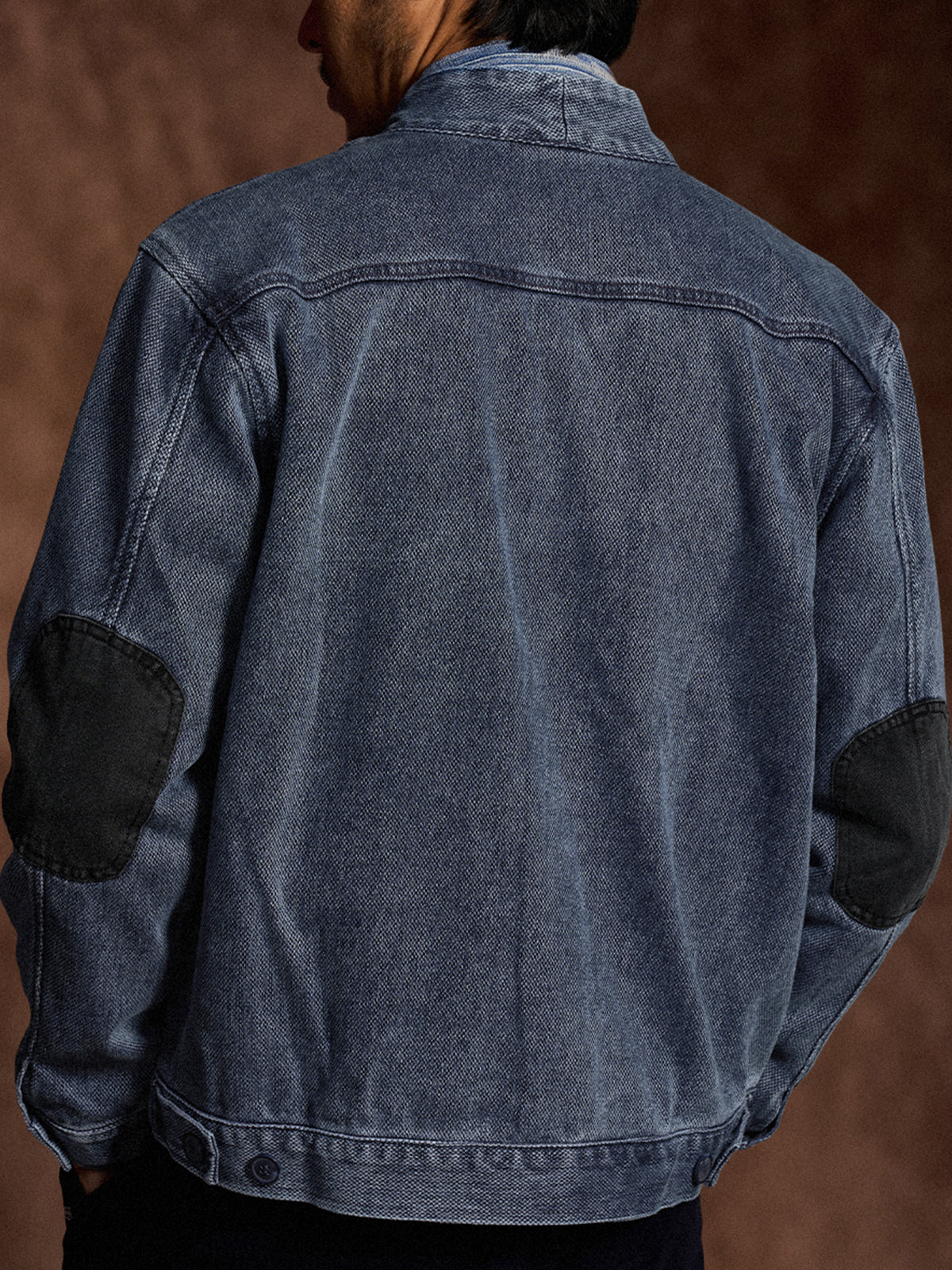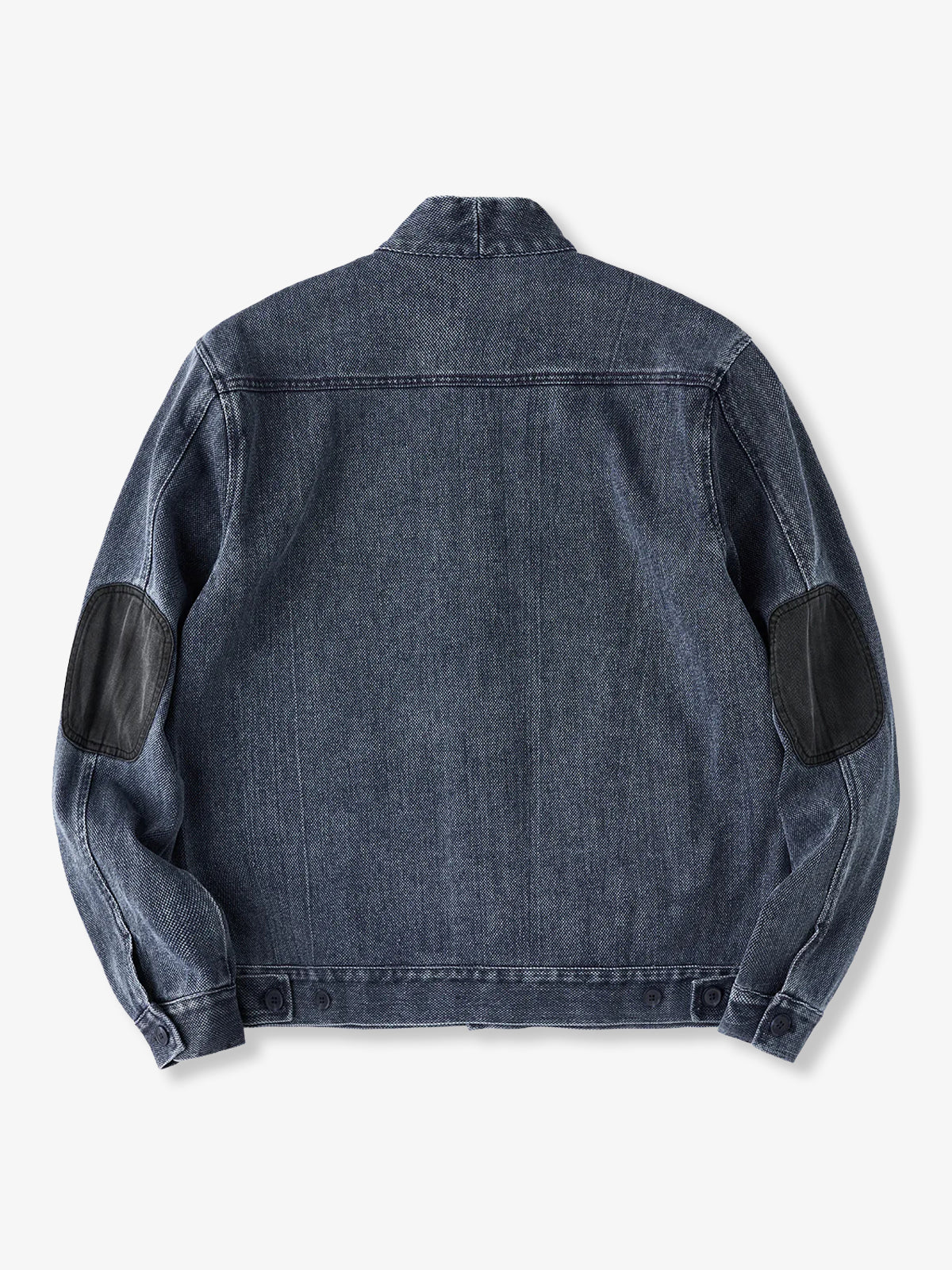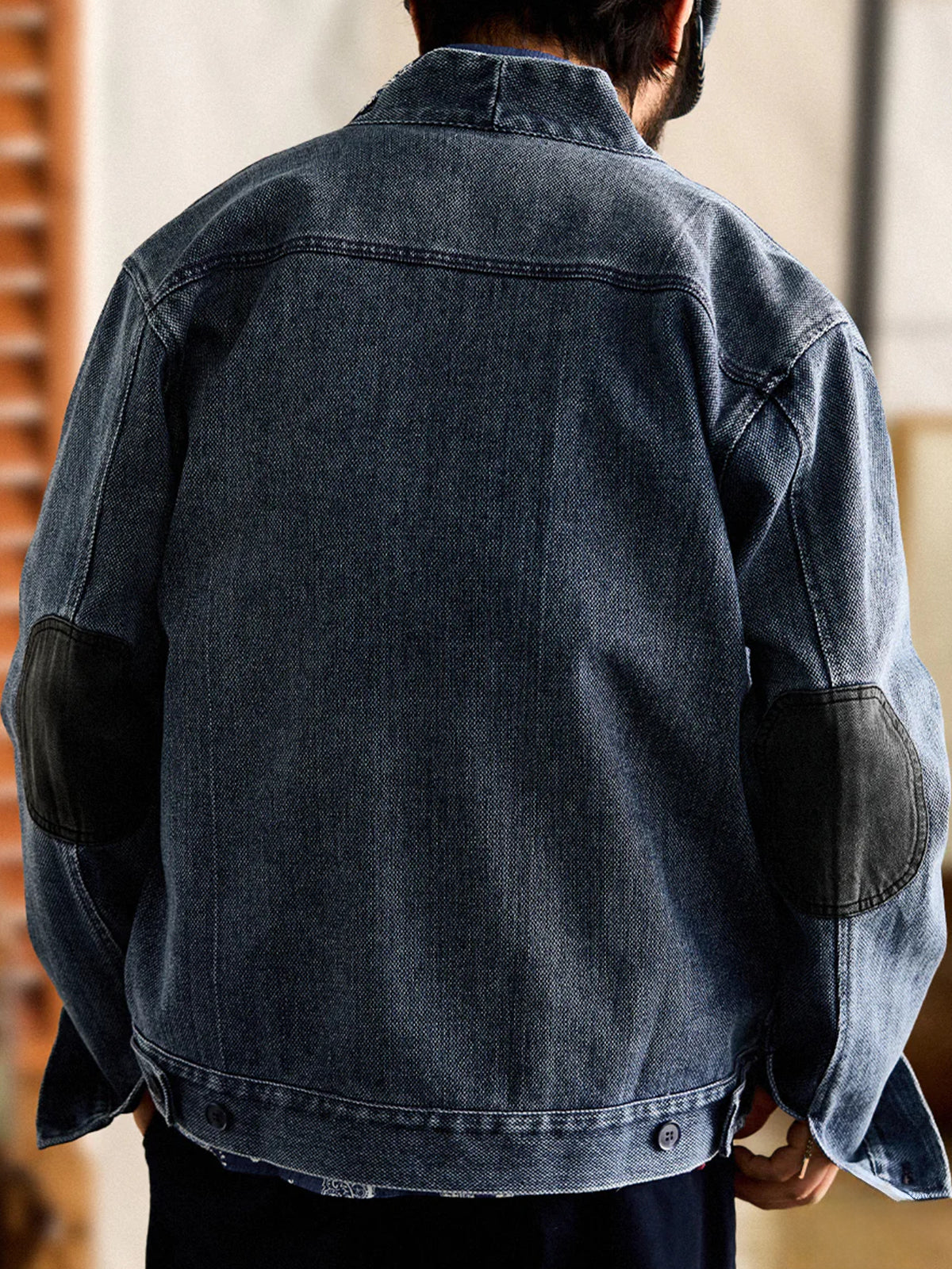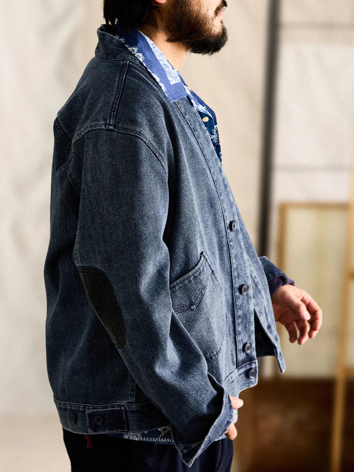 Elbow Contrast Patches Washed Kendo-Inspired Jacket