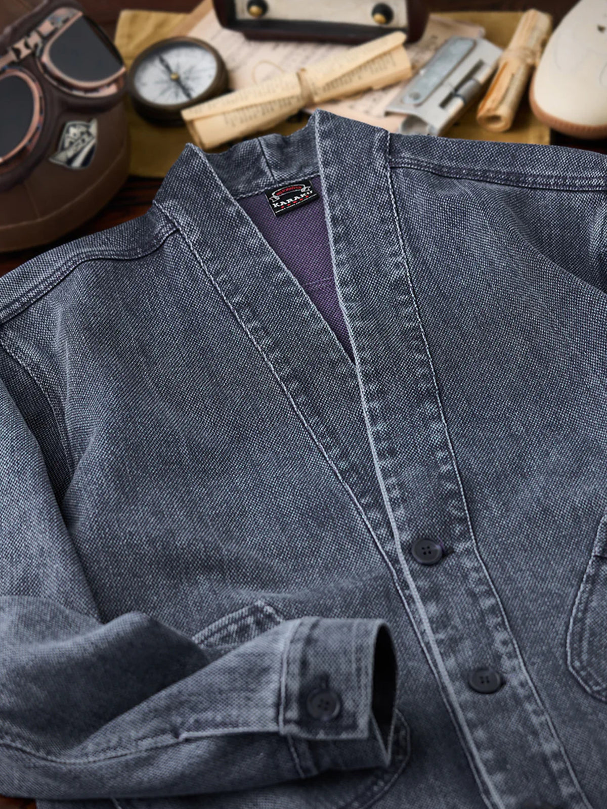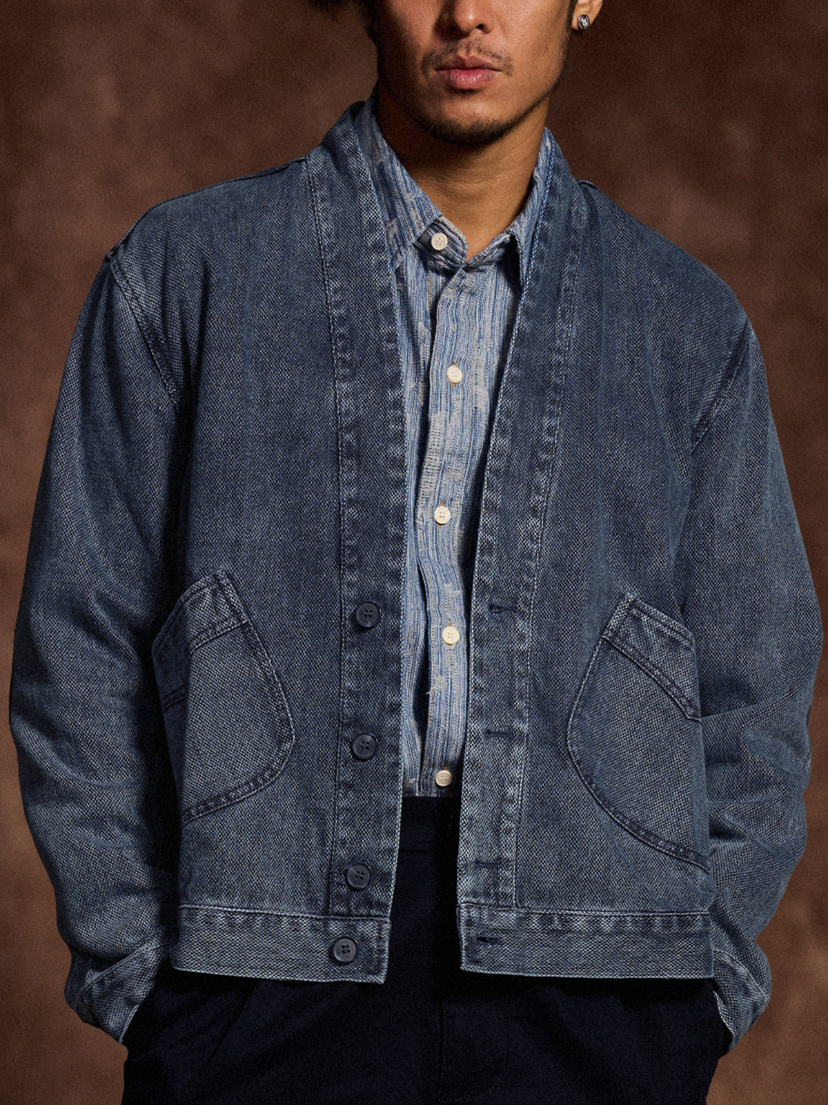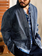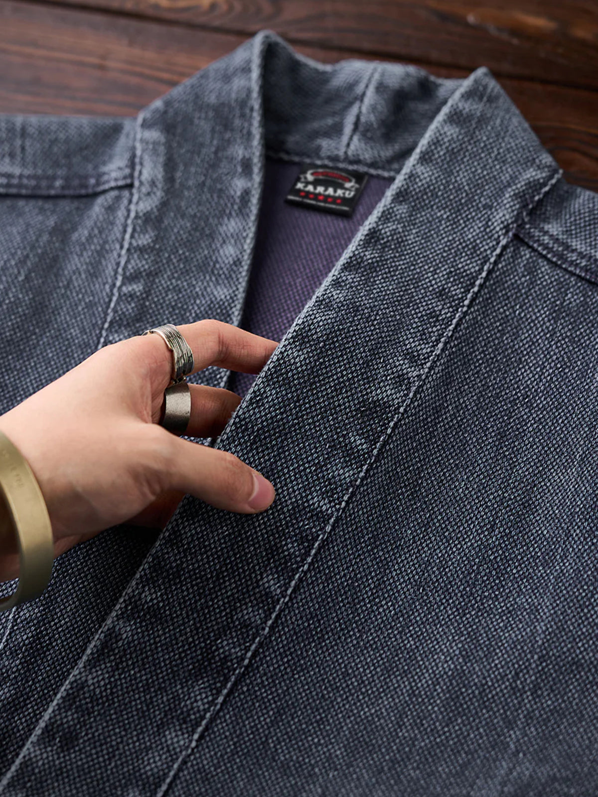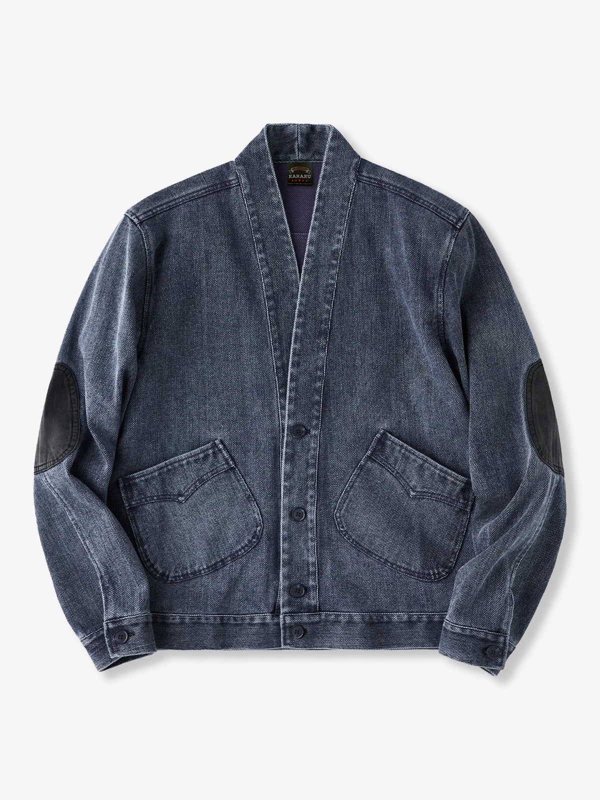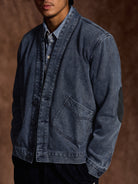 Elbow Contrast Patches Washed Kendo-Inspired Jacket