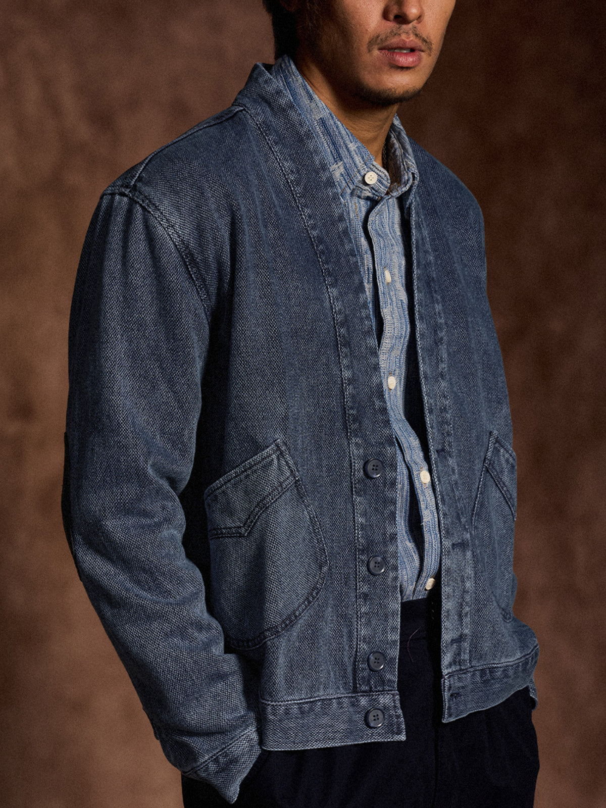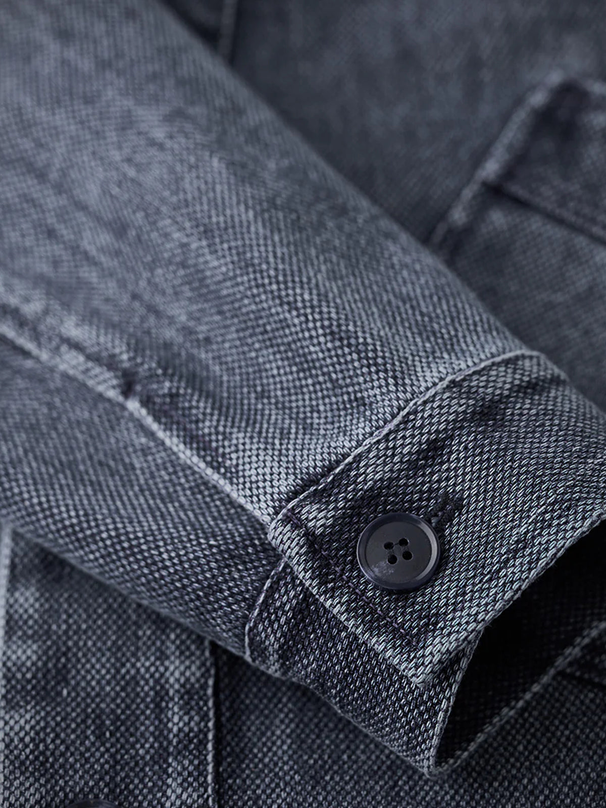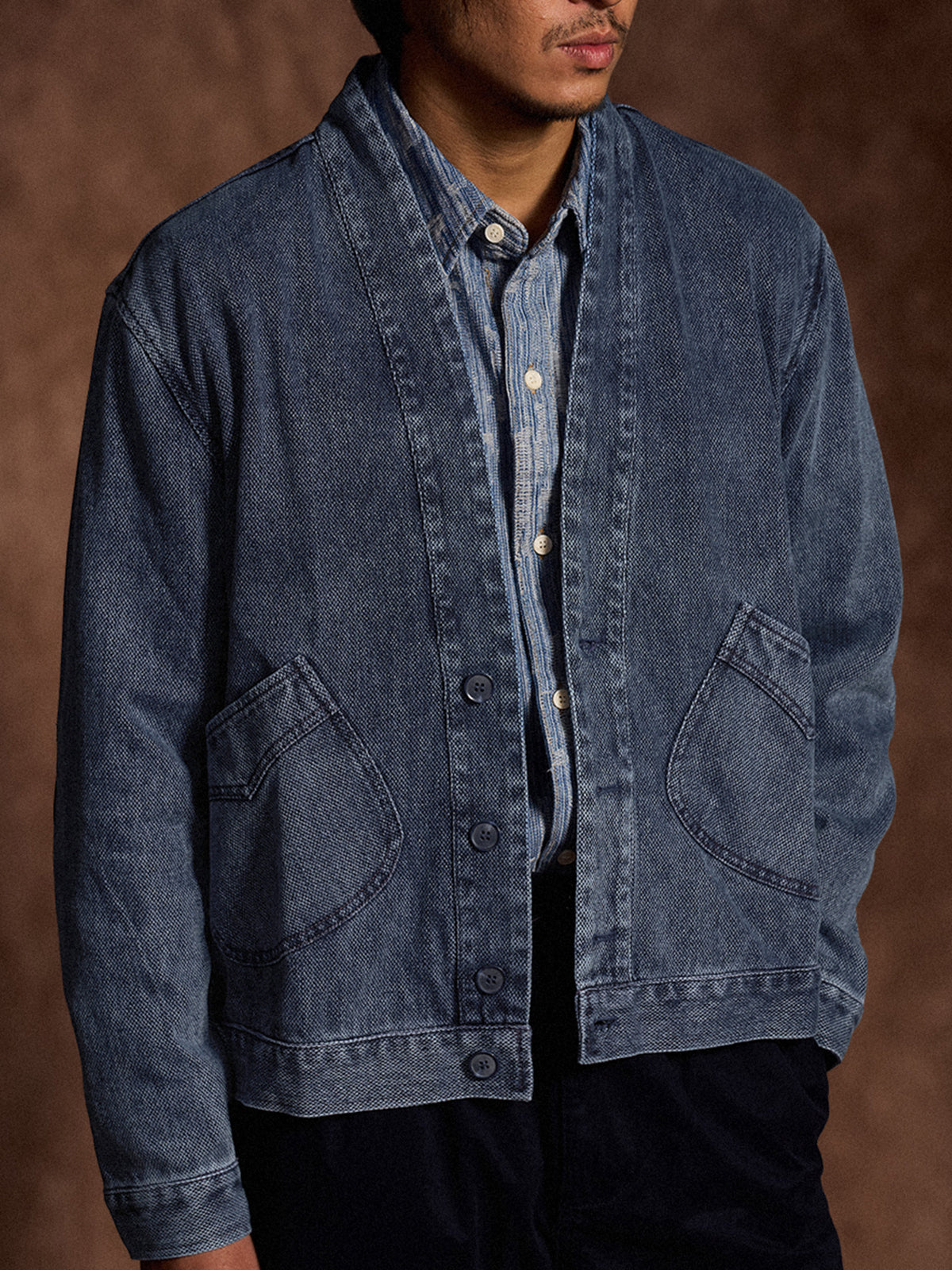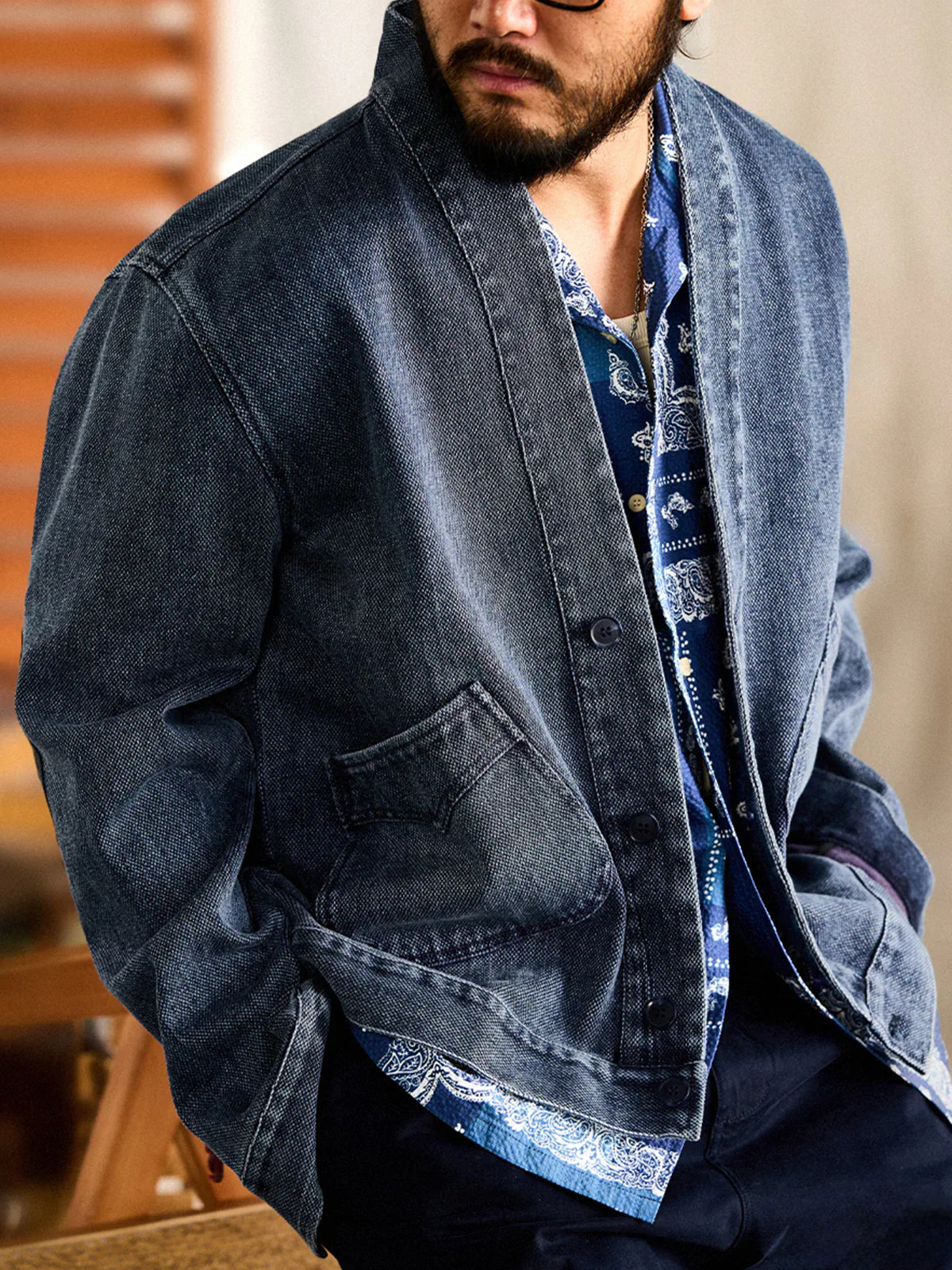 Elbow Contrast Patches Washed Kendo-Inspired Jacket