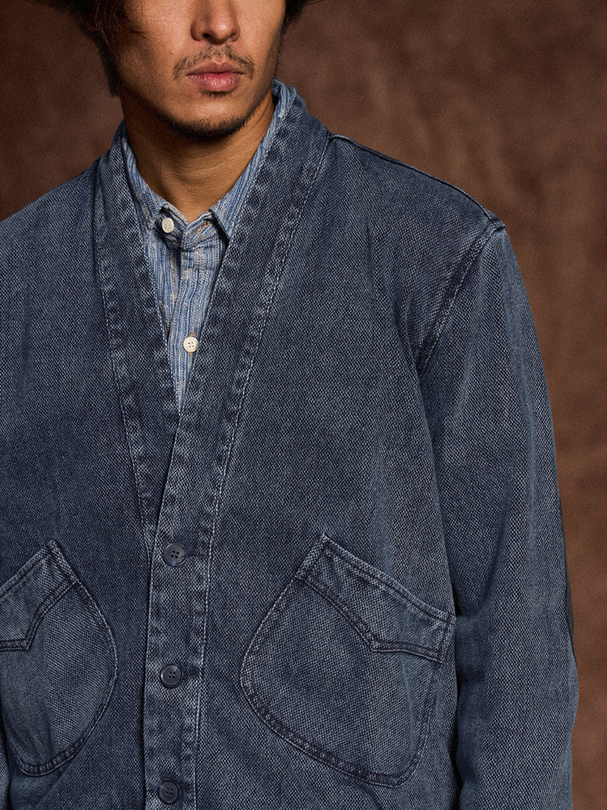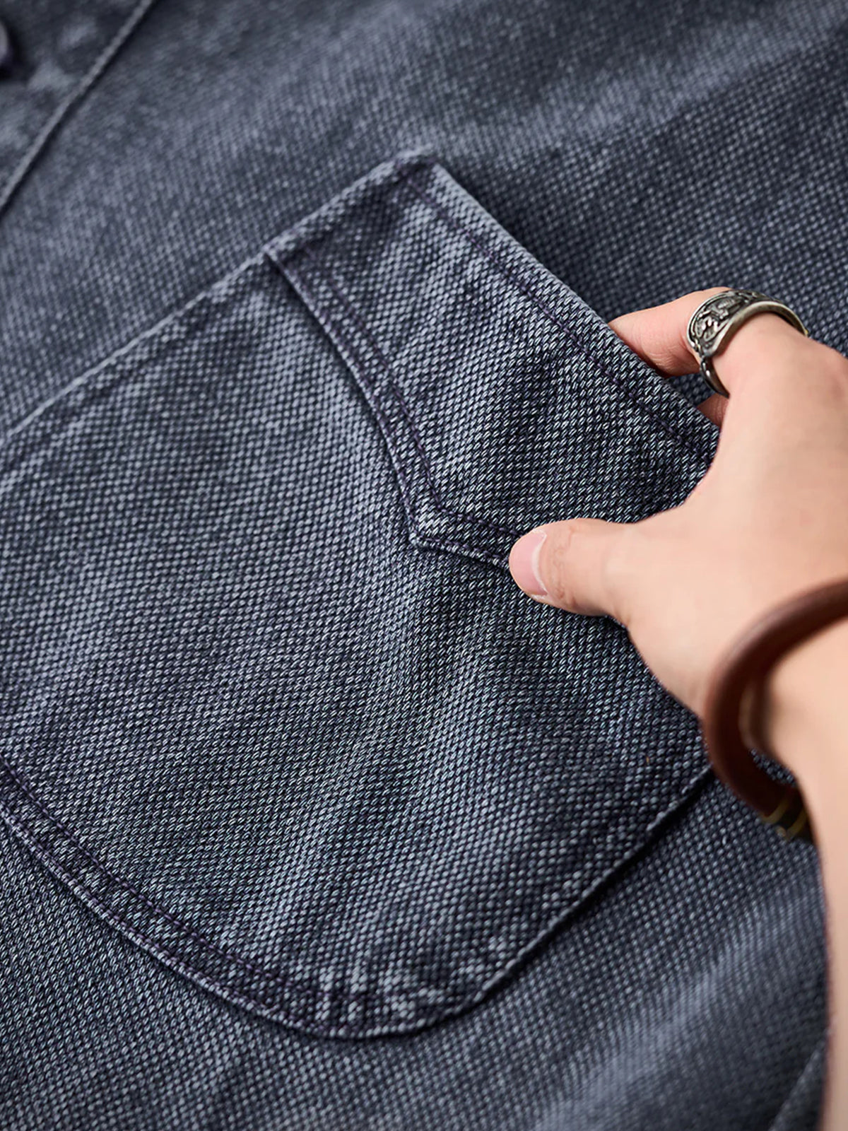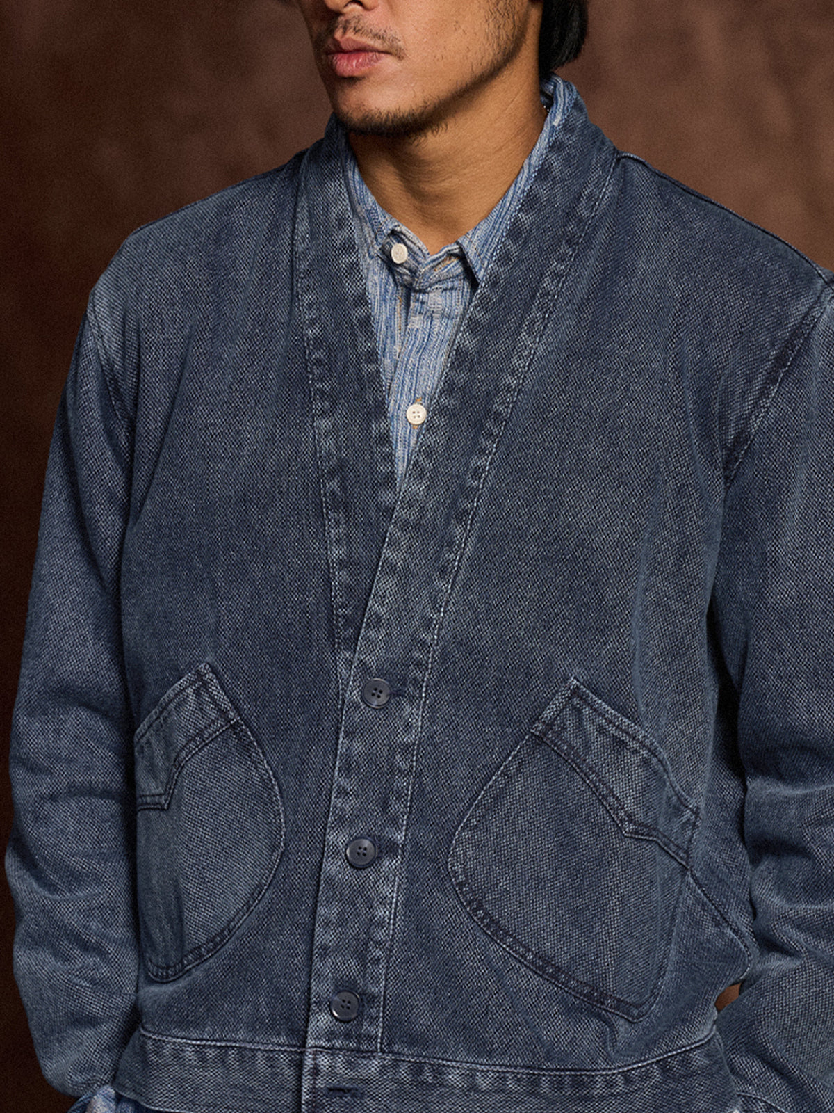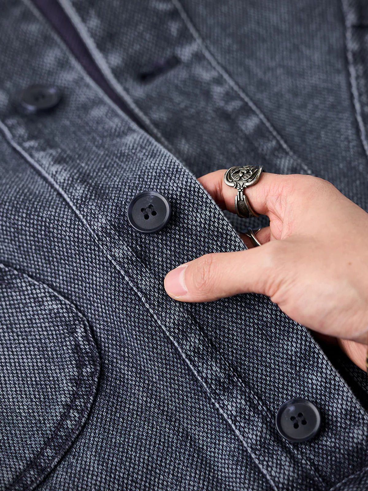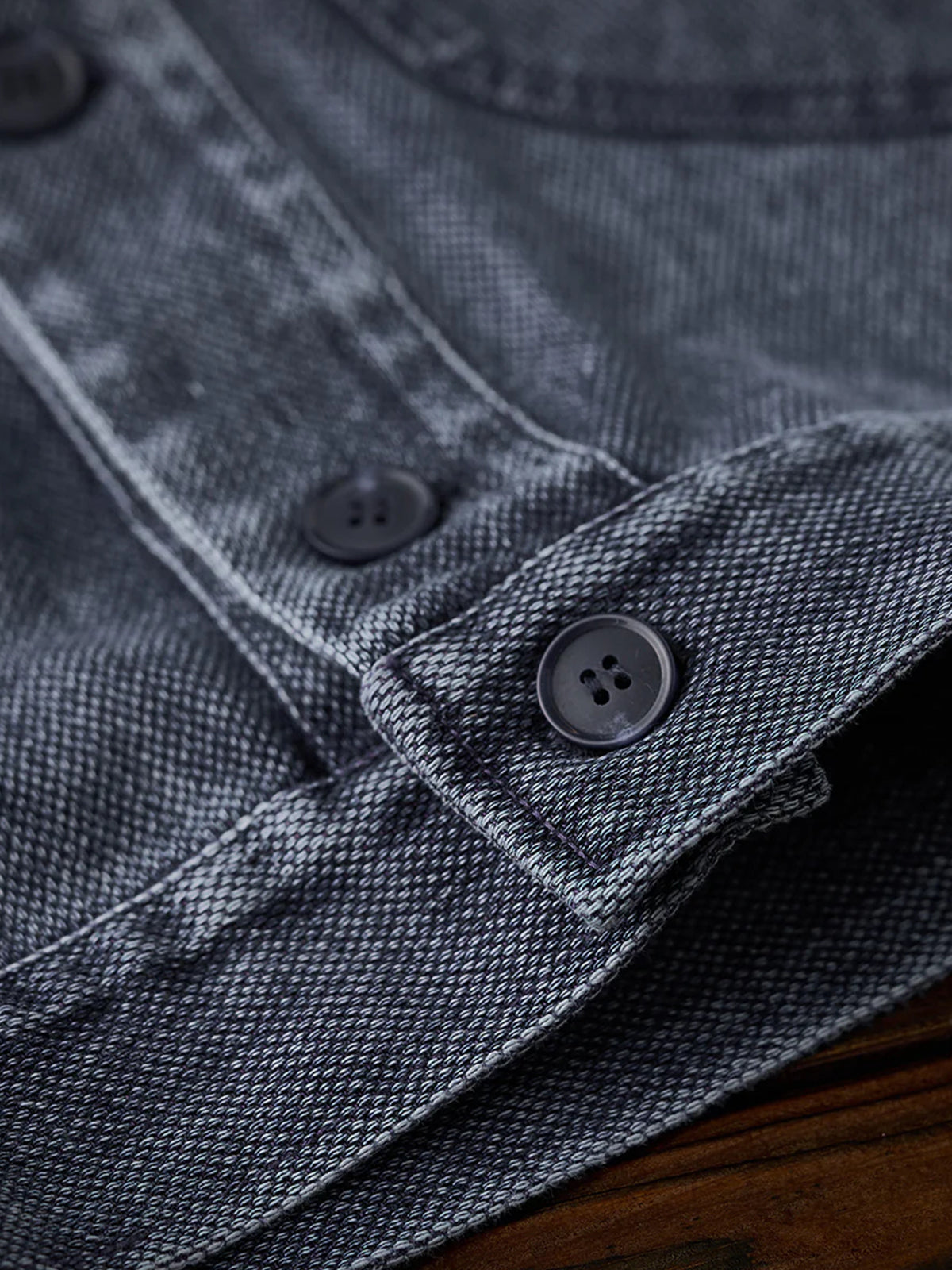 Elbow Contrast Patches Washed Kendo-Inspired Jacket