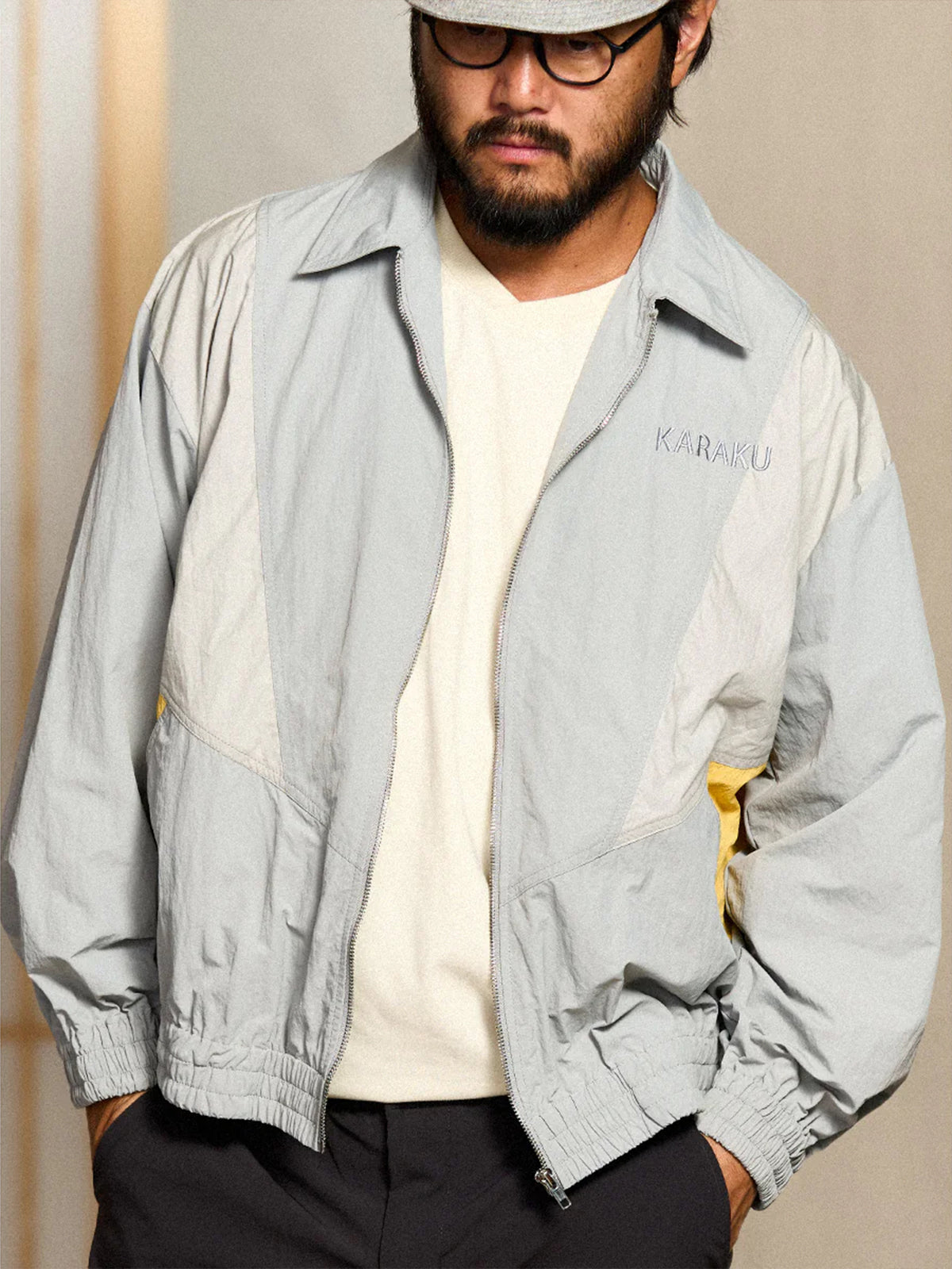 Contrast Panel Training Jacket with "KARAKU" Embroidery