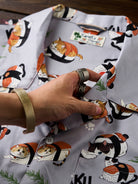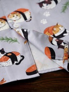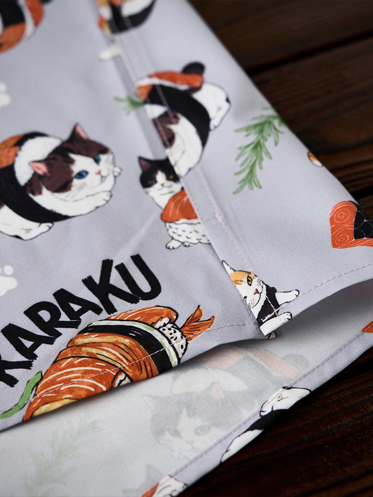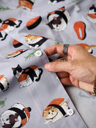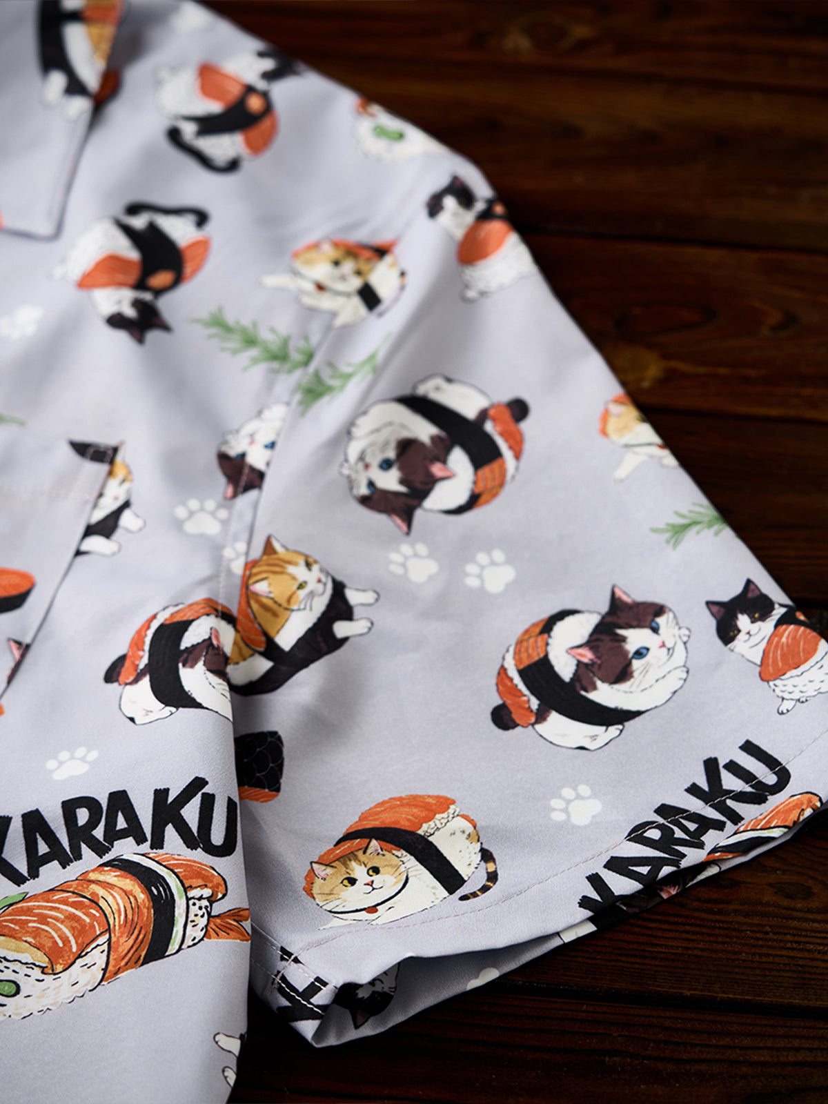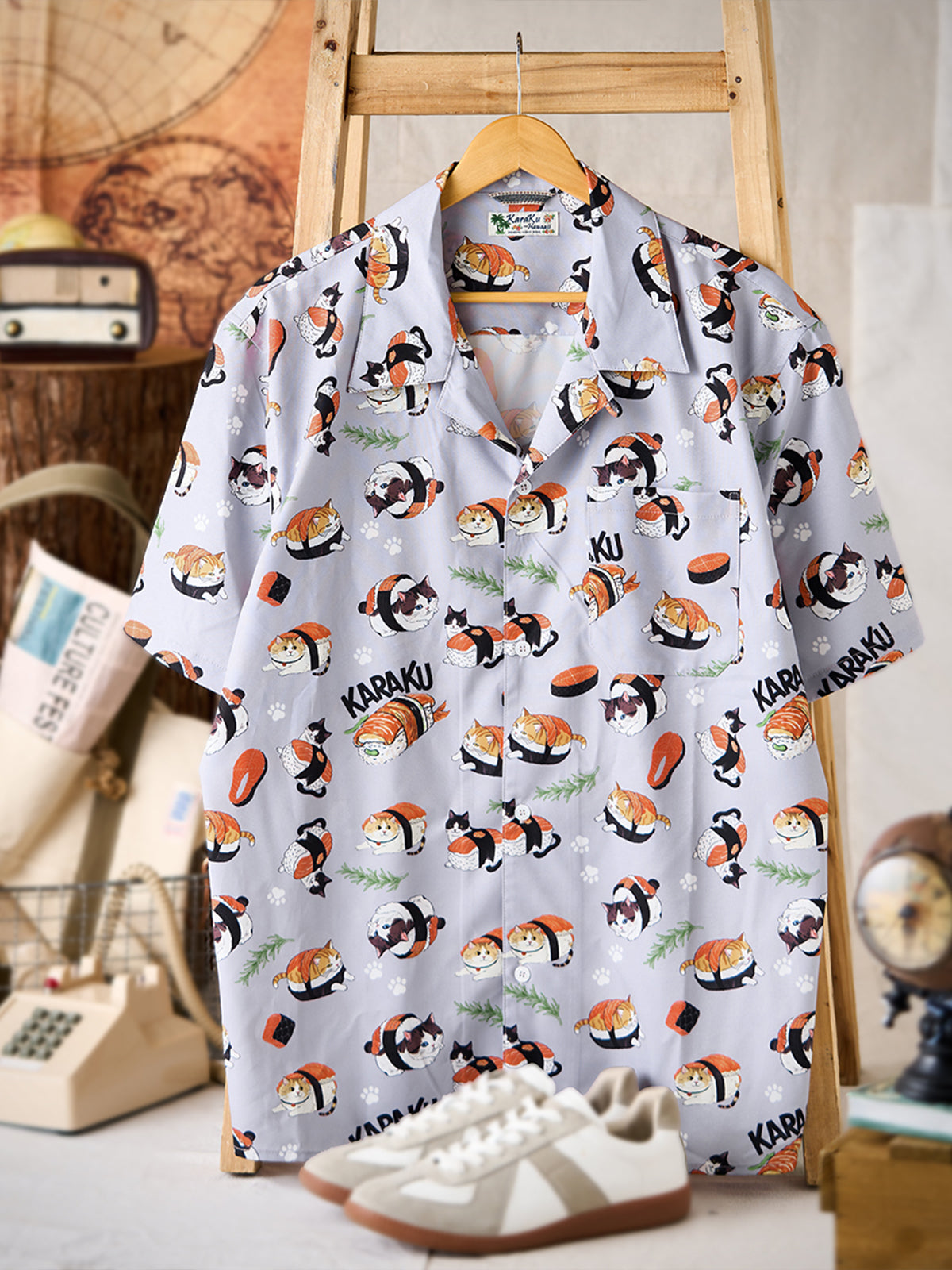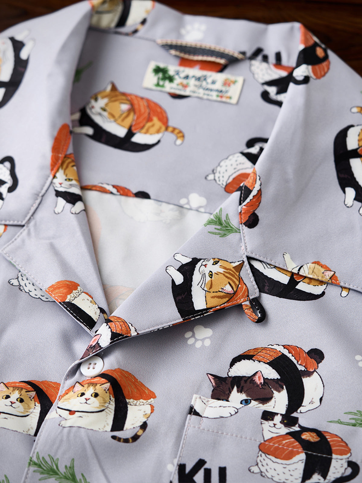 "Cat Sushi Encyclopedia" Handwritten Style Open Collar Shirt