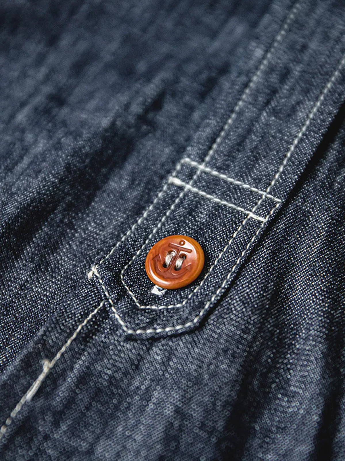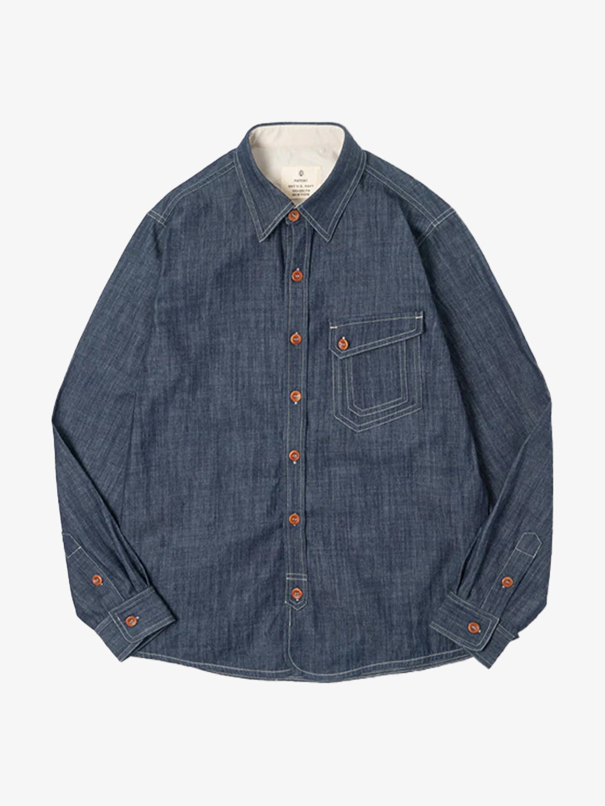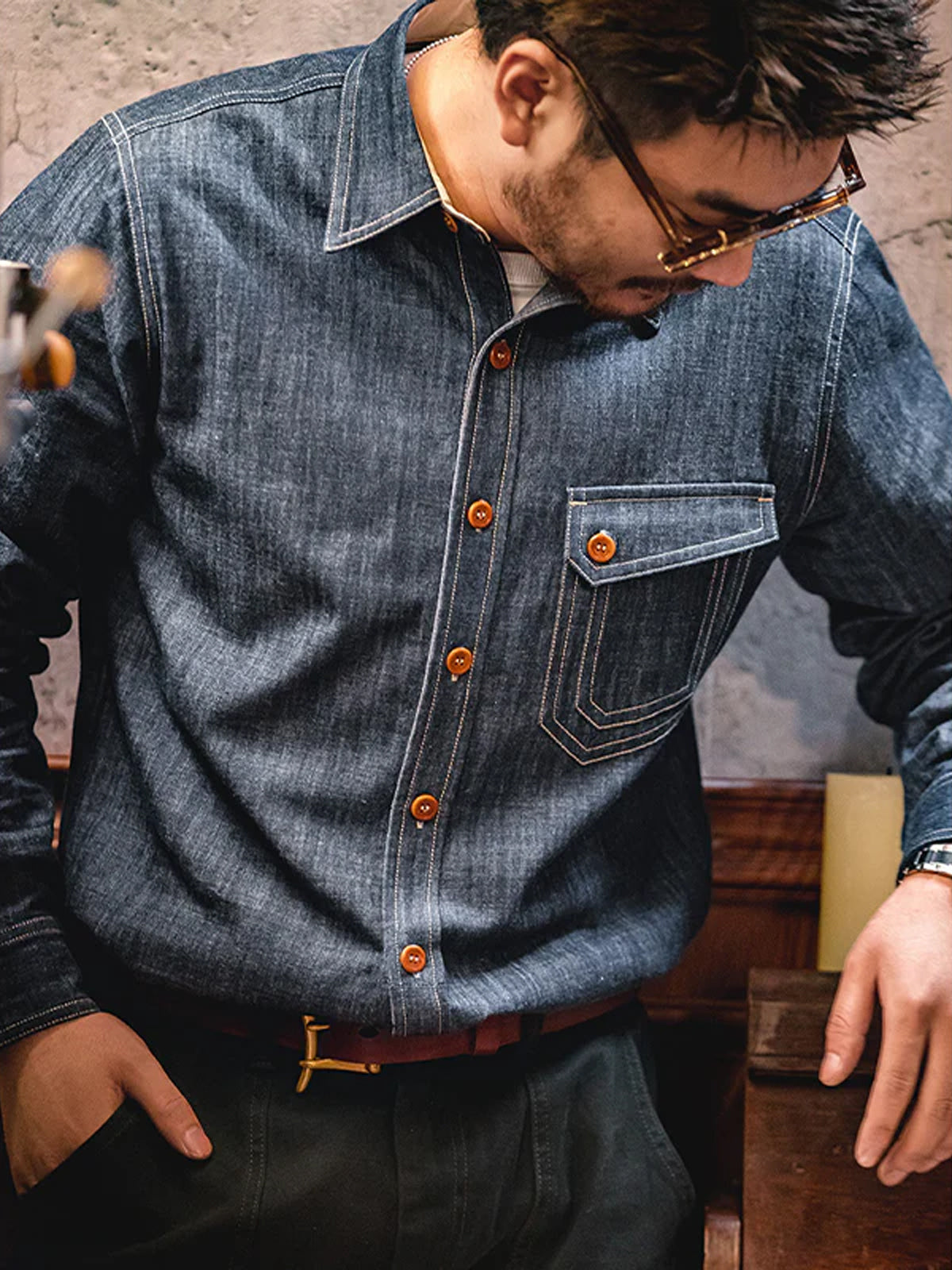 Inspired by the classic Navy CPO shirt, this denim shirt features large flap pockets and anchor buttons. Crafted from 100% cotton, it offers a perfect blend of softness and durability, with excellent moisture-wicking and quick-drying properties. Ideal as a lightweight outer layer, it's perfect for year-round wear, from casual outings to layering on cooler days.