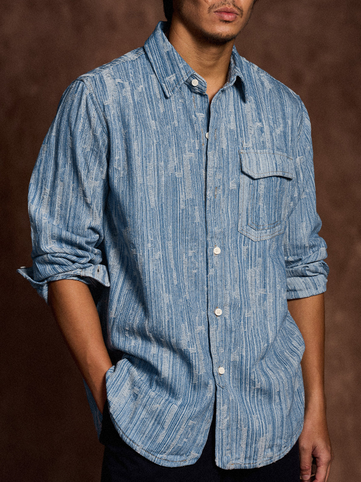 The C.P.O. shirt, originally designed for Chief Petty Officers in the U.S. Navy, was a functional outer garment that served as both a shirt and a jacket. Features jacquard weaving, creating a textured surface. Made from 100% cotton, it offers both durability and breathability, ensuring comfort year-round. Perfect for layering over tees or pairing with chinos, or denim for a stylish, versatile look.