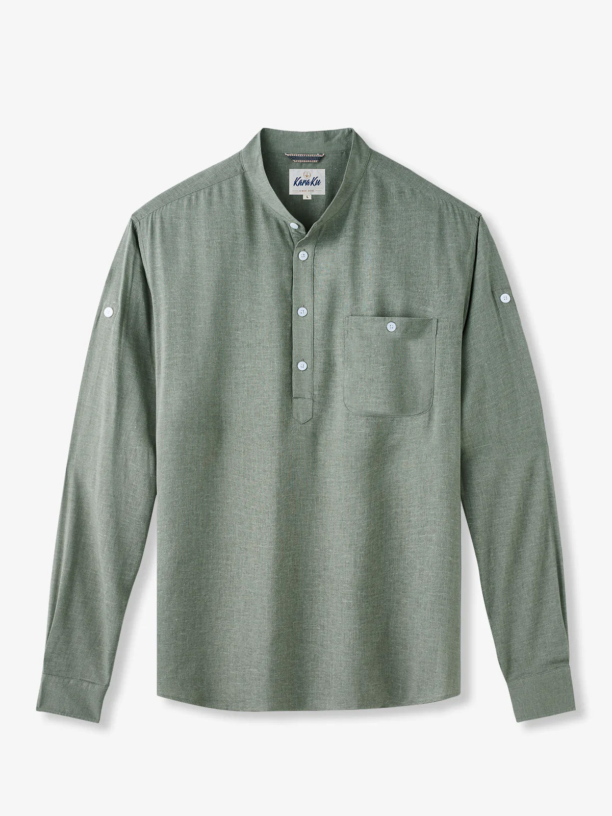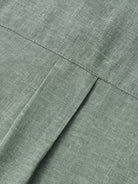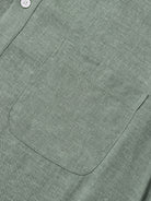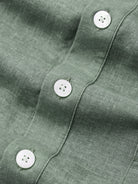 The shirt features a sleek, solid army green design with a half-button design, inspired by modern urban style. Crafted from a cotton-linen blend, it offers softness, breathability, durability, lightweight comfort, and moisture-wicking properties. Ideal for office wear, casual outings, and layering in cooler weather, this shirt provides both sophisticated style and practical comfort.