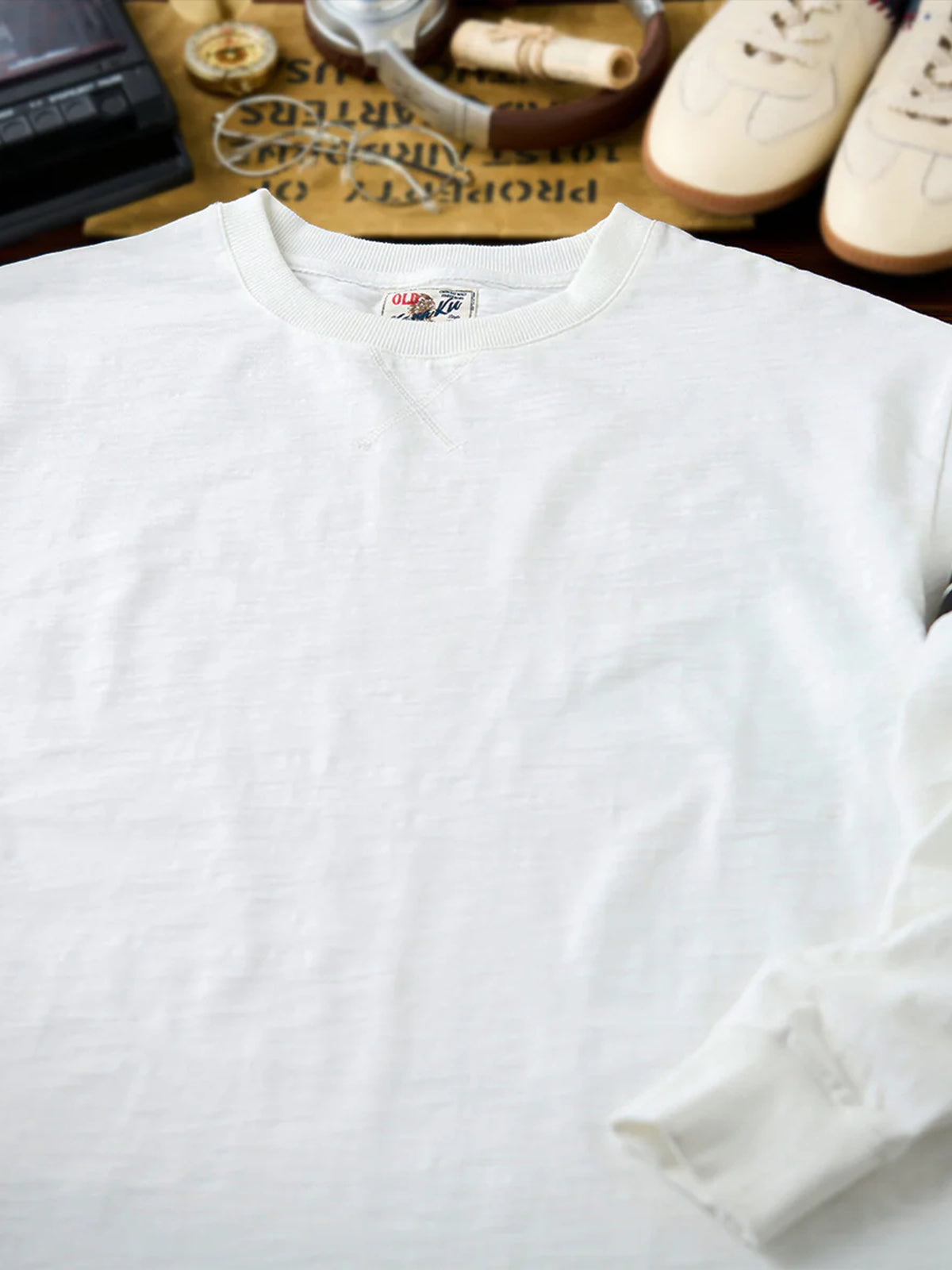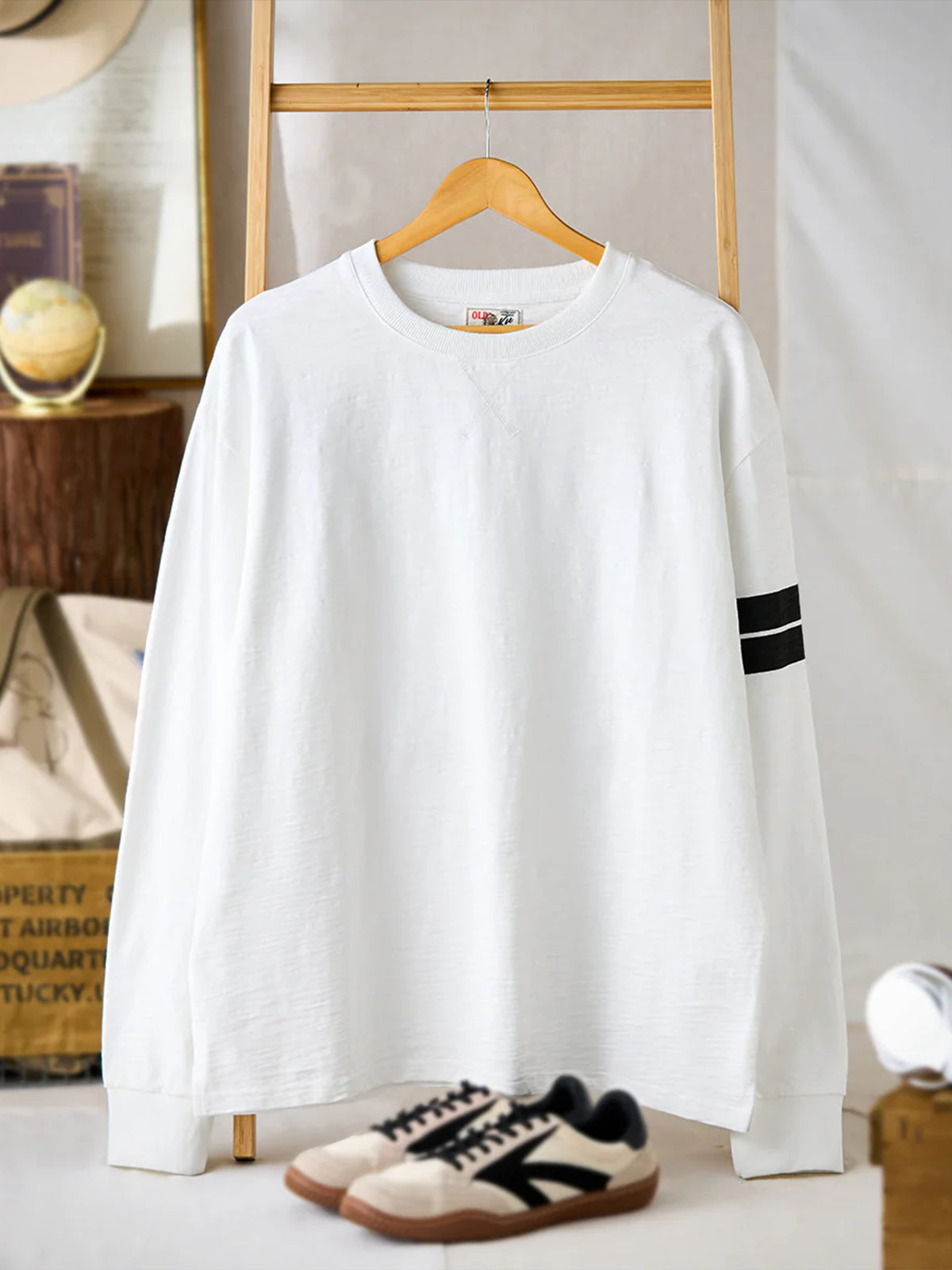Contrast Sleeve Line Heavyweight Slub Long Sleeve Tee