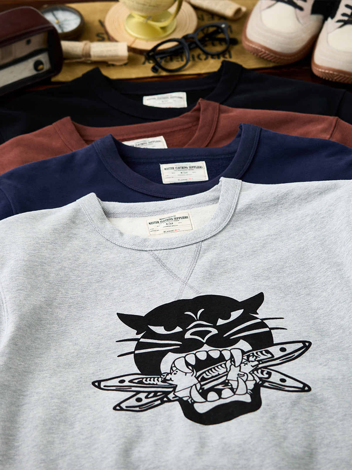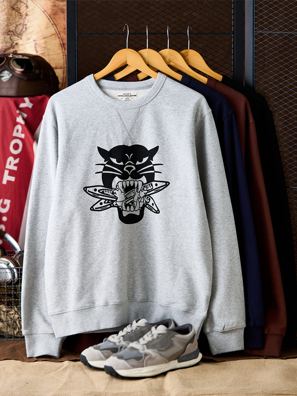 Military Style Shuttle Bomber Leopard American Vintage Crewneck Sweatshirt