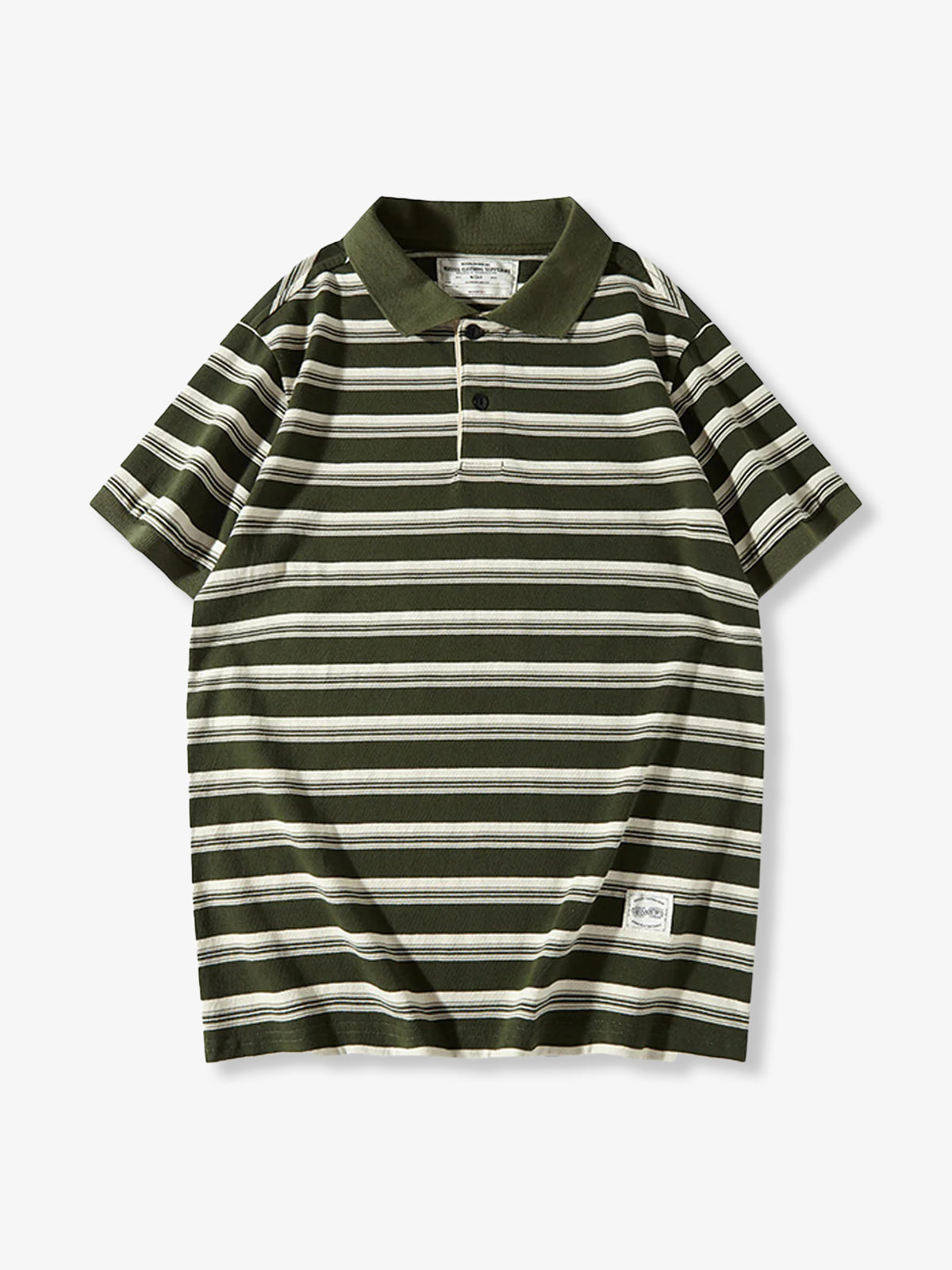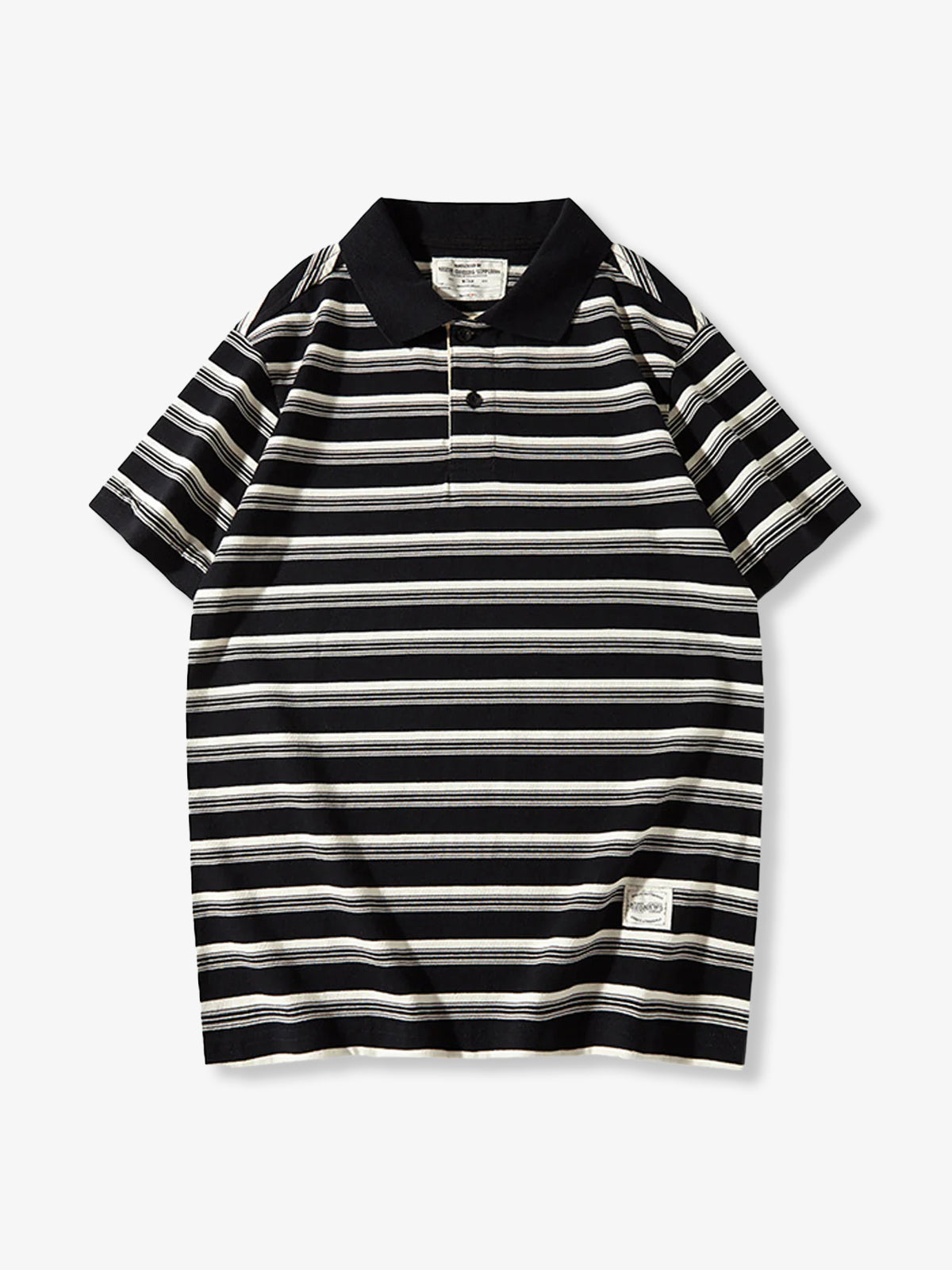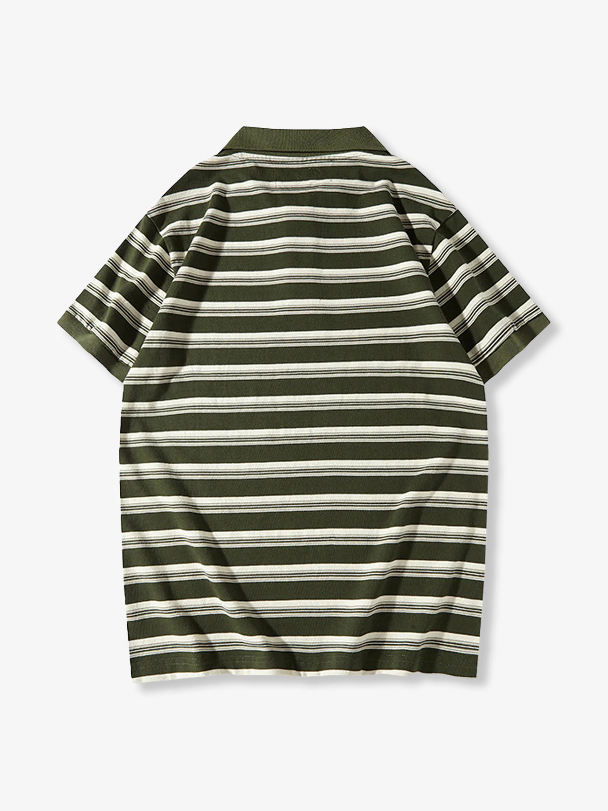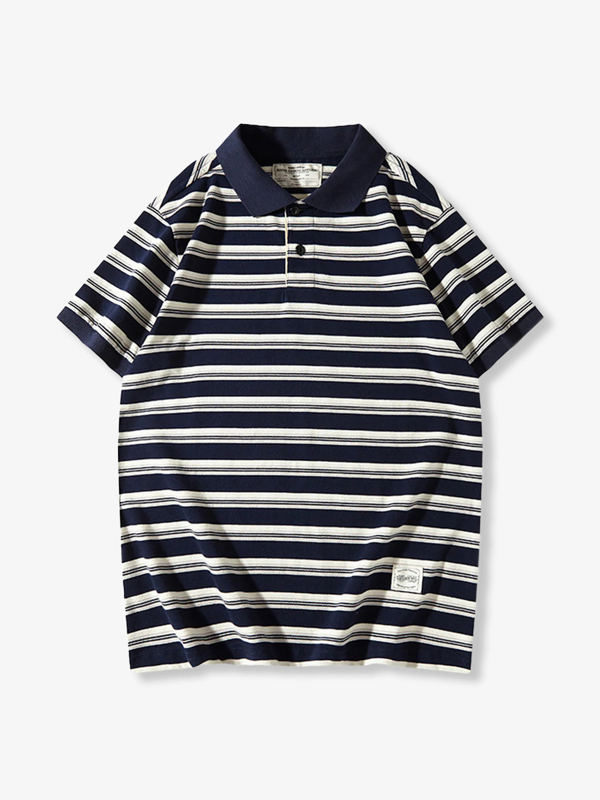 245g Heavyweight Wide-Stripe Polo Shirt (4 Colors)