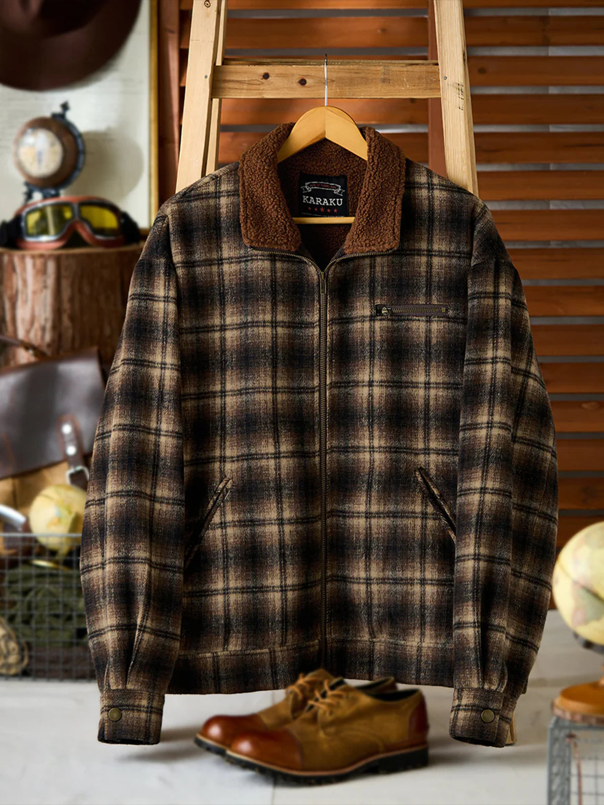 [Pre-Order] Wool-Blend Check Tweed-Style Detroit Jacket with Polar Fleece Lining and Collar