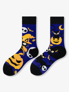 These Halloween crew socks feature bold graphics of black cats, jack-o’-lanterns, and skulls, bringing instant festive flair to any look. The soft blended fabric offers a comfortable, breathable fit that’s easy to wear all day. Finished with a stretchy ribbed cuff that stays in place without squeezing, they’re perfect for everyday wear, parties, or gifting.