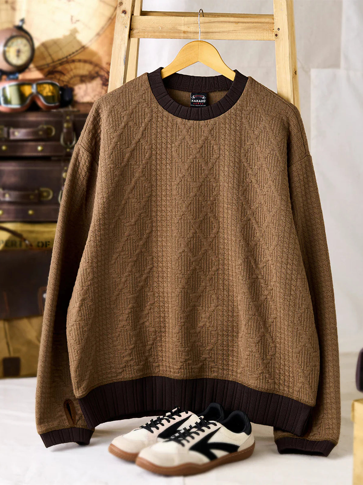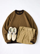 [Pre-Order] Cable-Knit Style Sweatshirt with Thumb-Hole Cuffs & Contrast Collar/Hem
