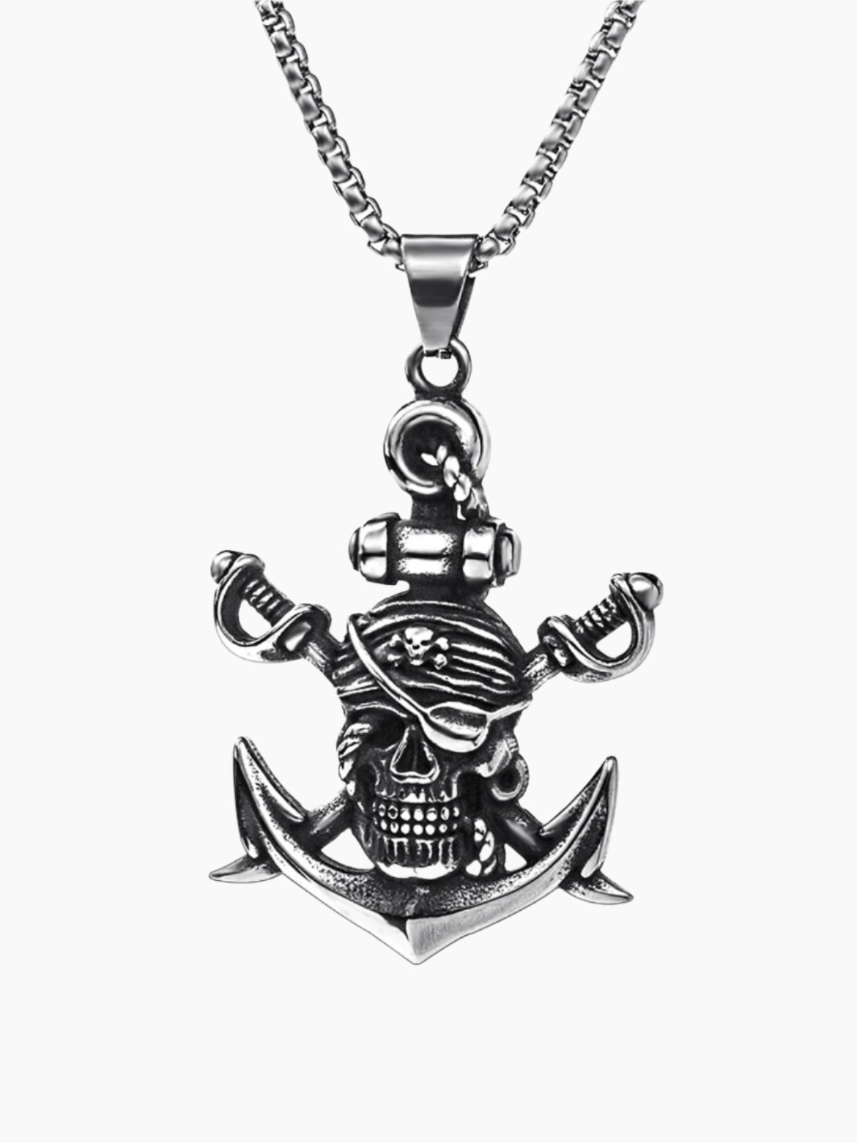 Jolly Roger Skeleton Pirate Titanium Necklace