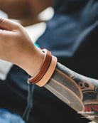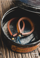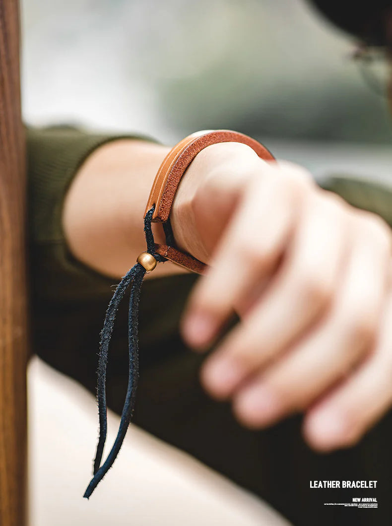 Opt for a leather bracelet to add a focal point to your outfit. This 6mm thick tanned leather bracelet features navy deerskin rope and copper beads, adjustable for a perfect fit, and exudes a vintage vibe that retro enthusiasts love. Over time, the leather develops a rich character and unique charm. With proper care, it gains a deeper red and brown hue.