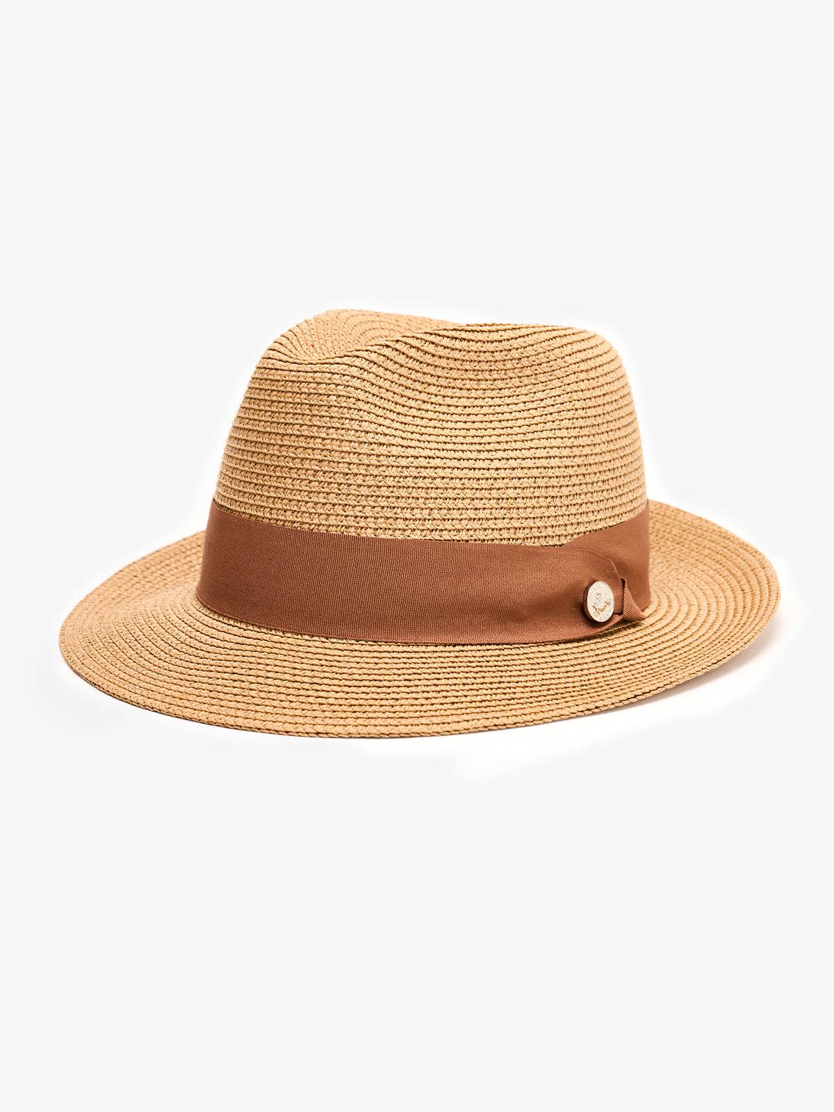 Complete your look with this traveling curled hat, perfect for those who love to explore paradise views. The stylish curled brim adds a sense of adventure to any outfit.