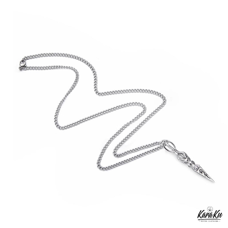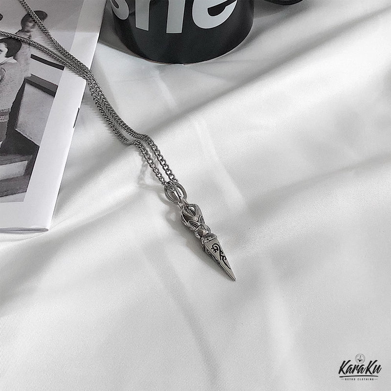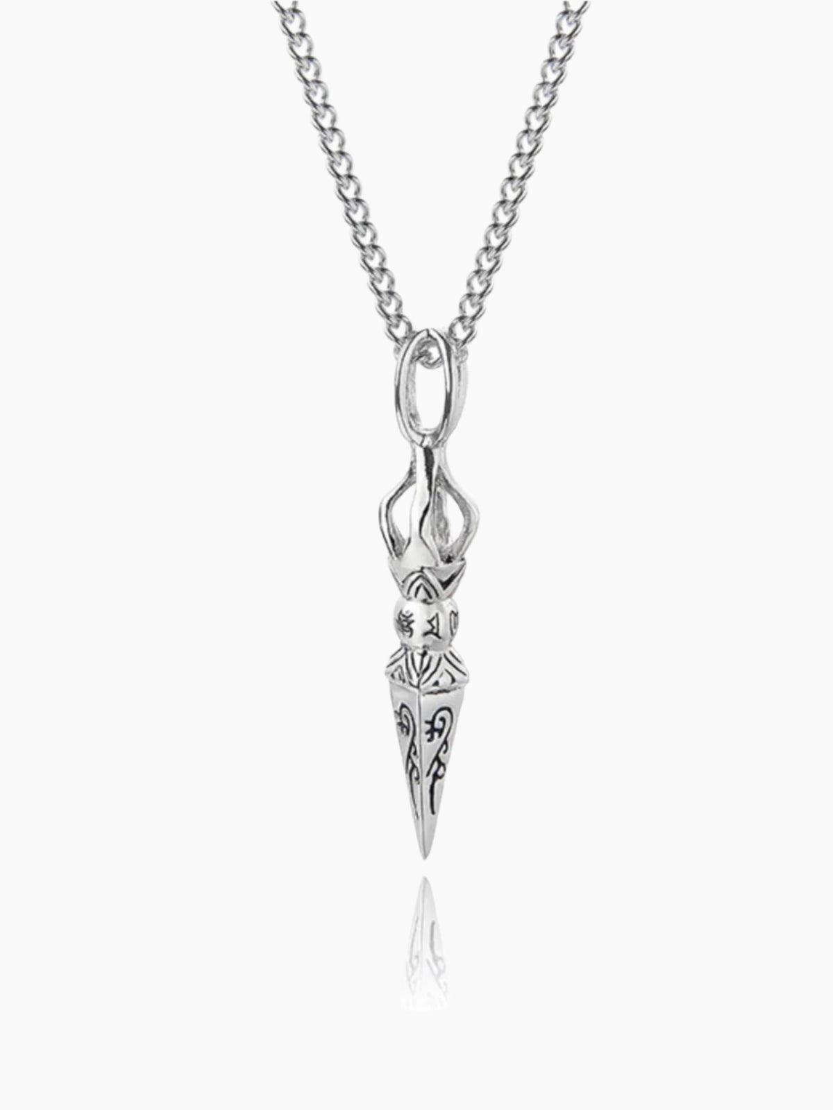 Introducing a stunning pendant necklace that blends contemporary fashion with the profound symbolism of the Vajra Dorje from esoteric Buddhist rituals. Crafted with high-quality titanium, this piece is lightweight, rust-resistant, and less likely to cause metal allergies. Its intricate design exudes a punk aesthetic, making it perfect for both collection and adornment.