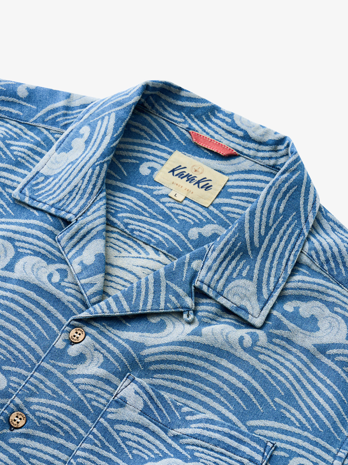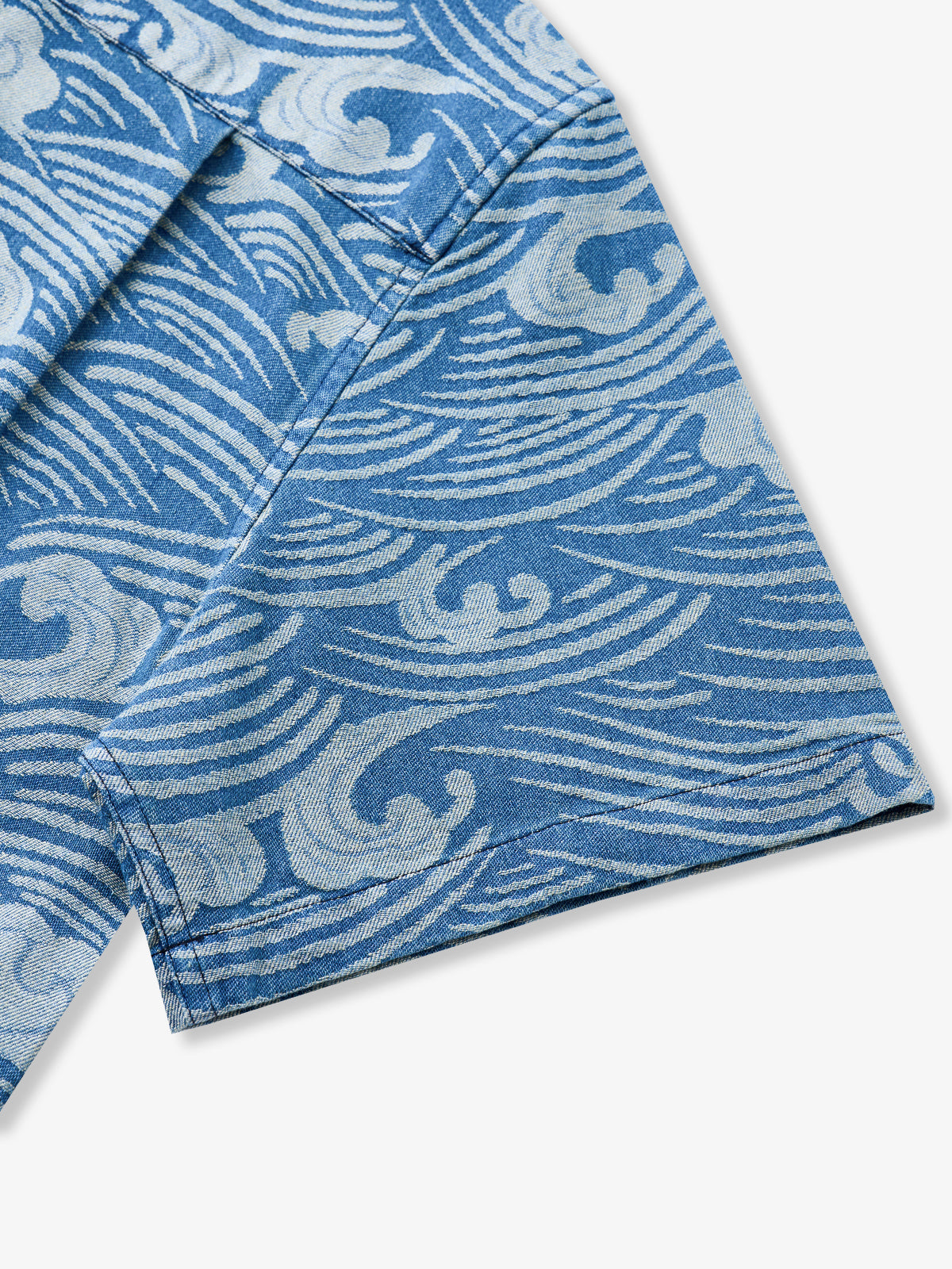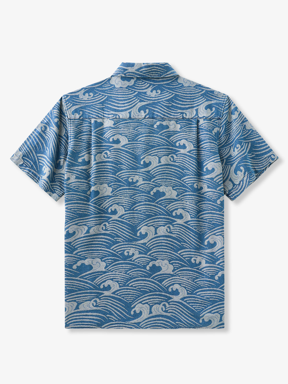 Inspired by sea spray, this shirt in natural blue hues brings a refreshing, resort vibe. Made from 100% cotton jacquard with a woven pattern, it offers depth and texture. The breathable fabric ensures comfort, keeping you cool in warm weather. Coconut buttons add unique craftsmanship, making it ideal for vacations or casual wear with its perfect balance of style and ease.