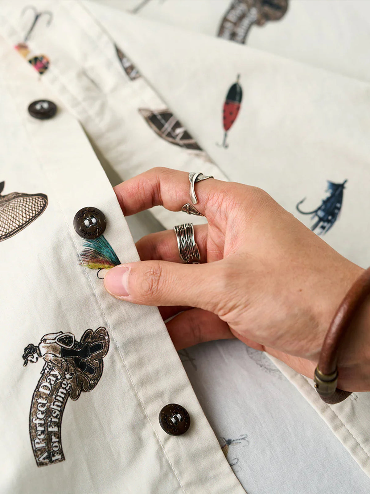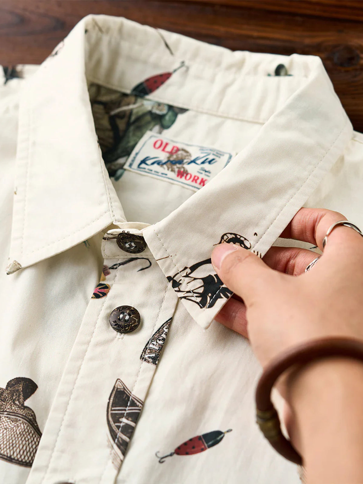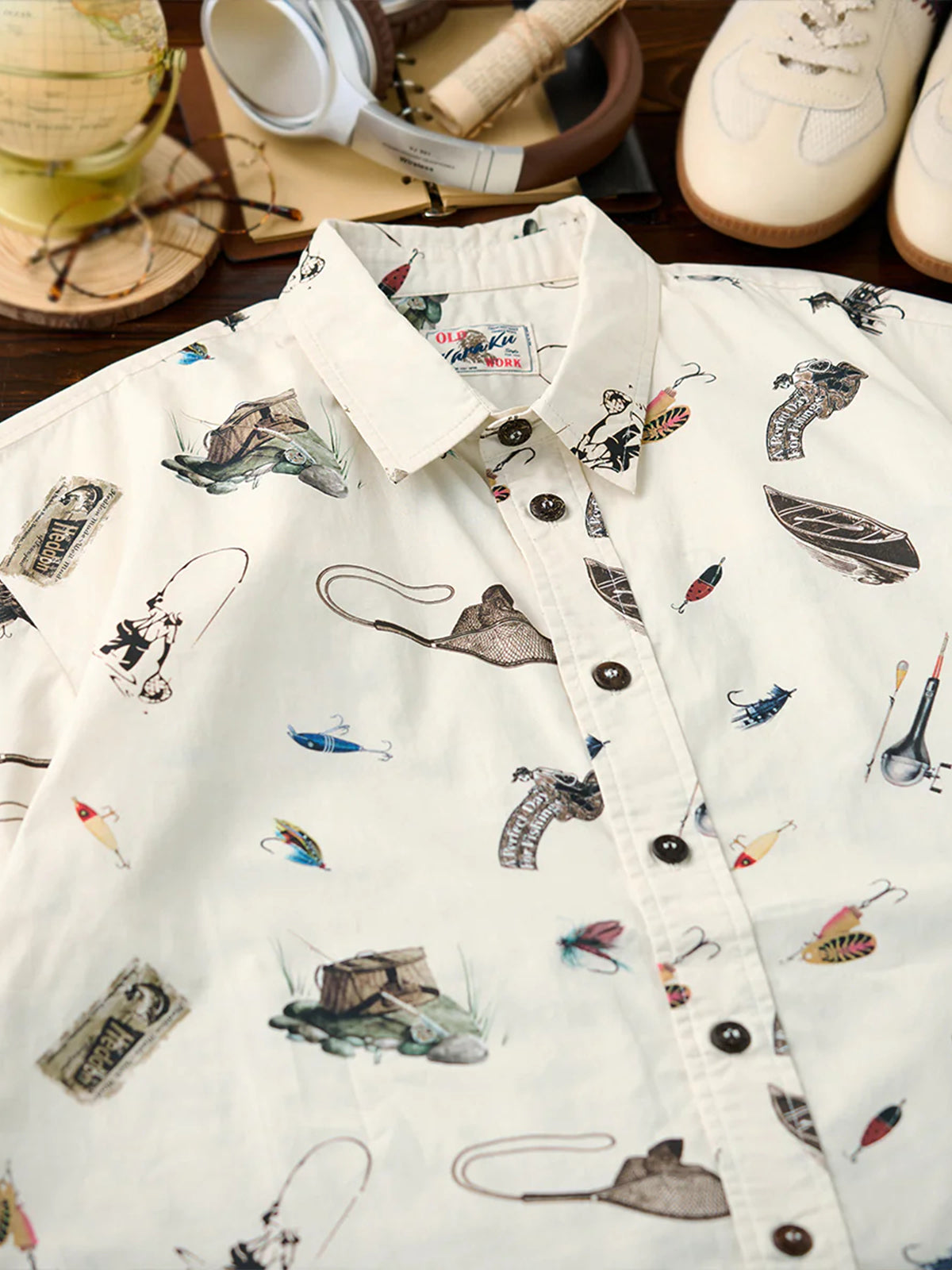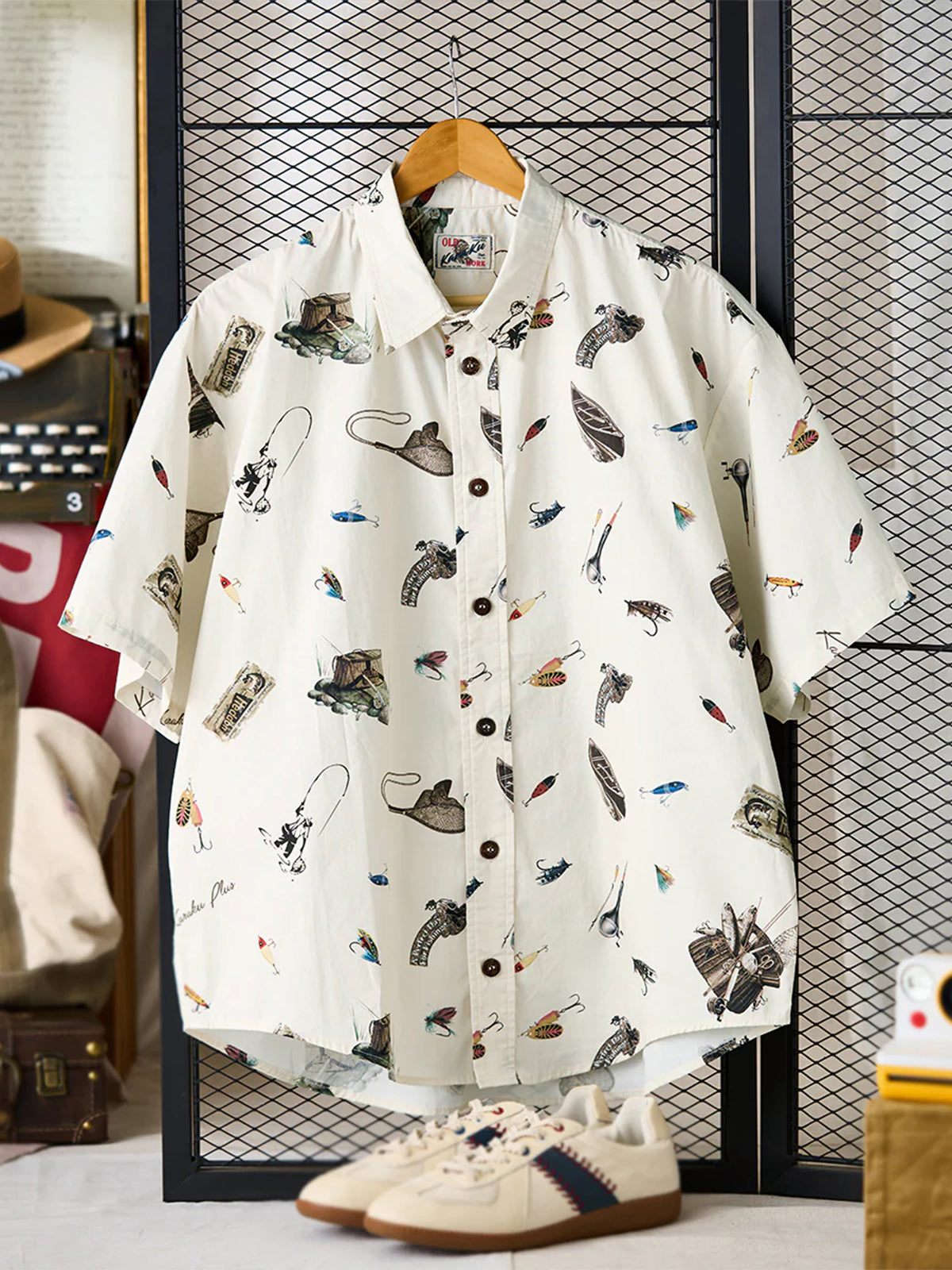 Retro Hand-Drawn Fishing Gear Short-Sleeve Shirt