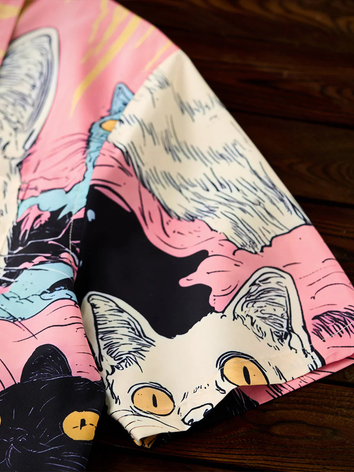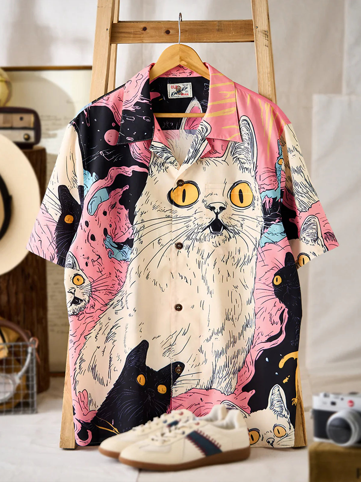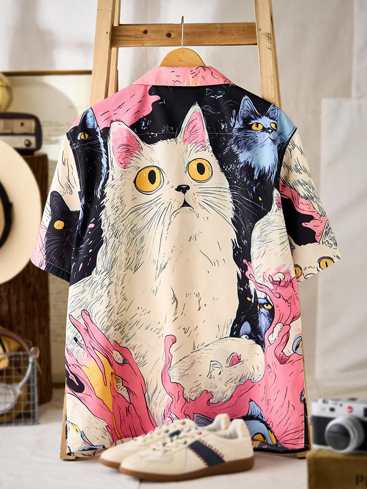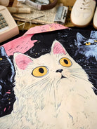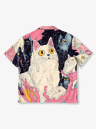"Cat's Fantasy Universe" Asymmetric Print Open Collar Aloha Shirt