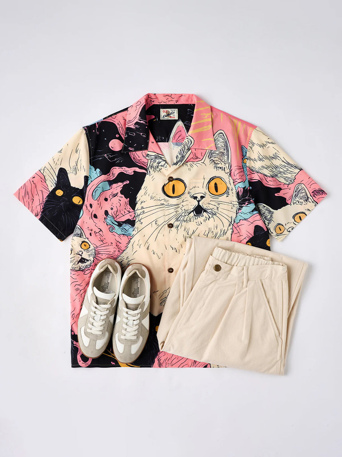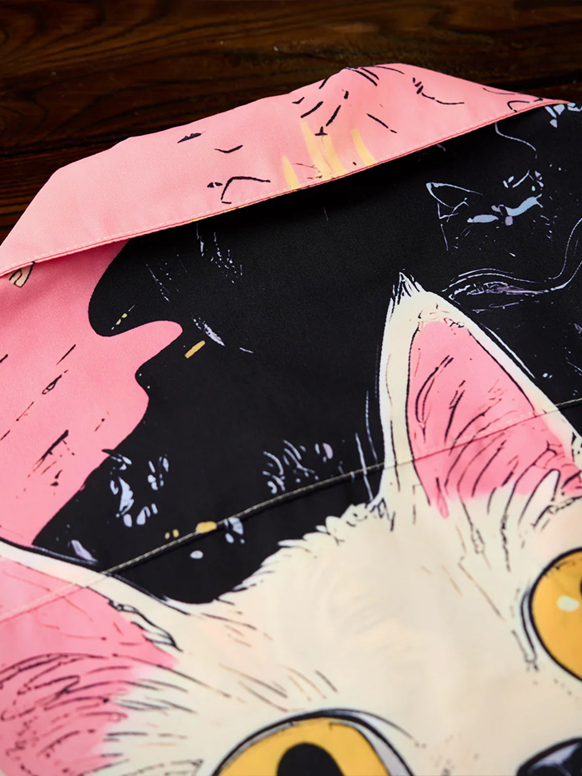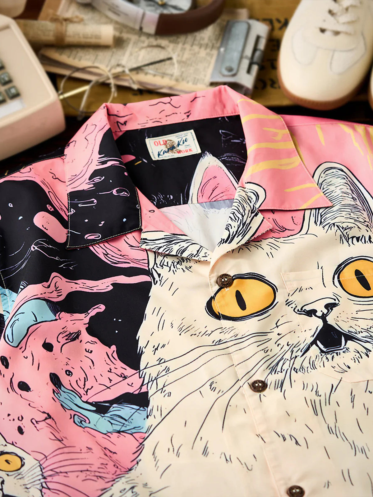 "Cat's Fantasy Universe" Asymmetric Print Open Collar Aloha Shirt