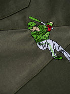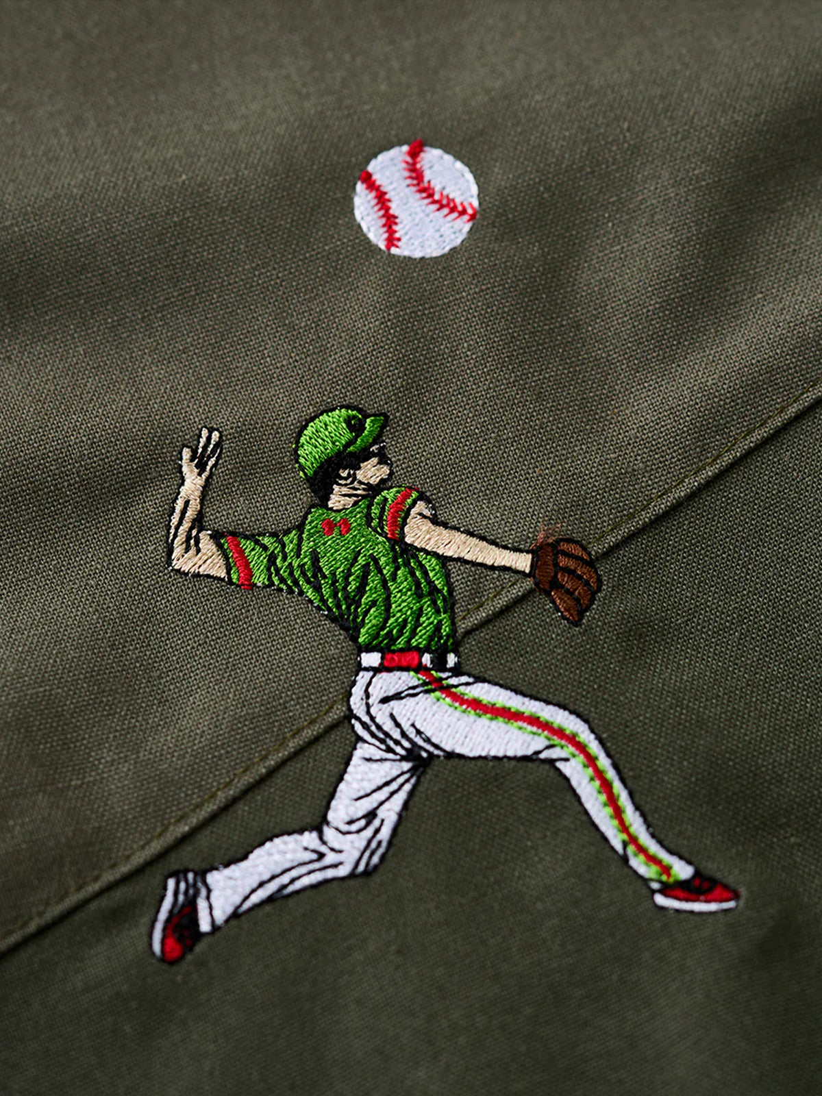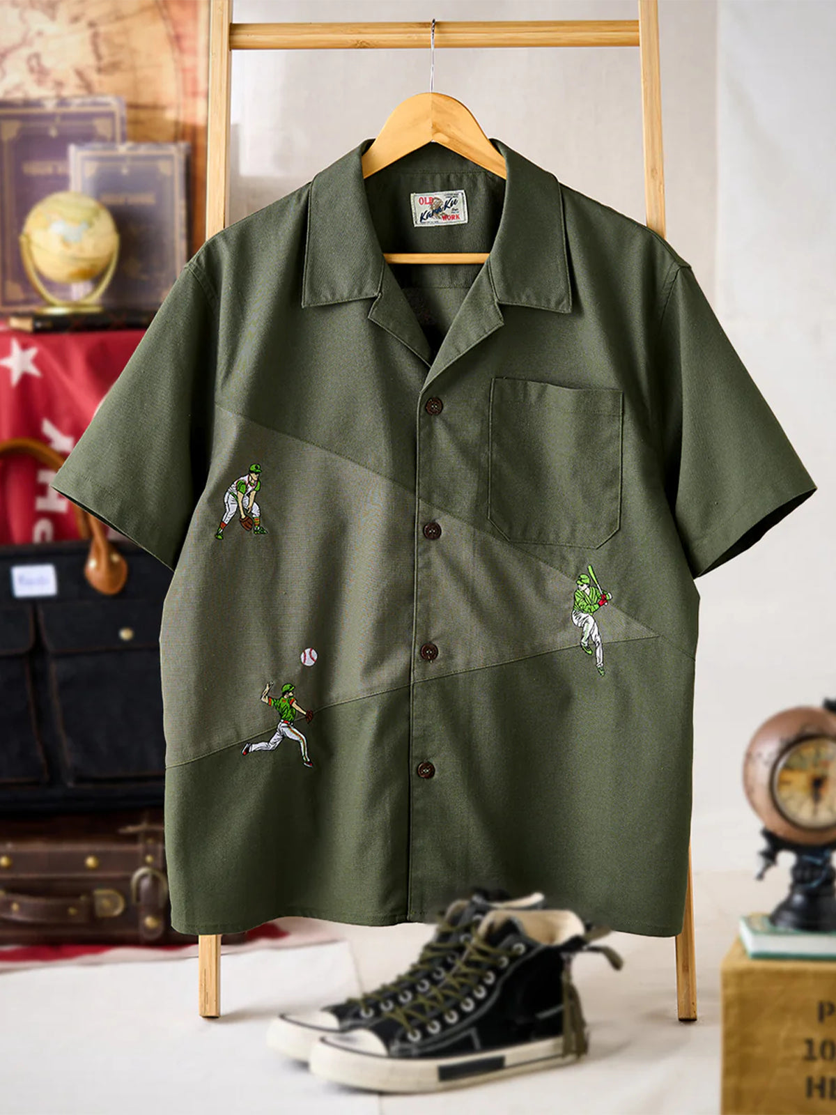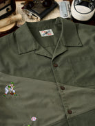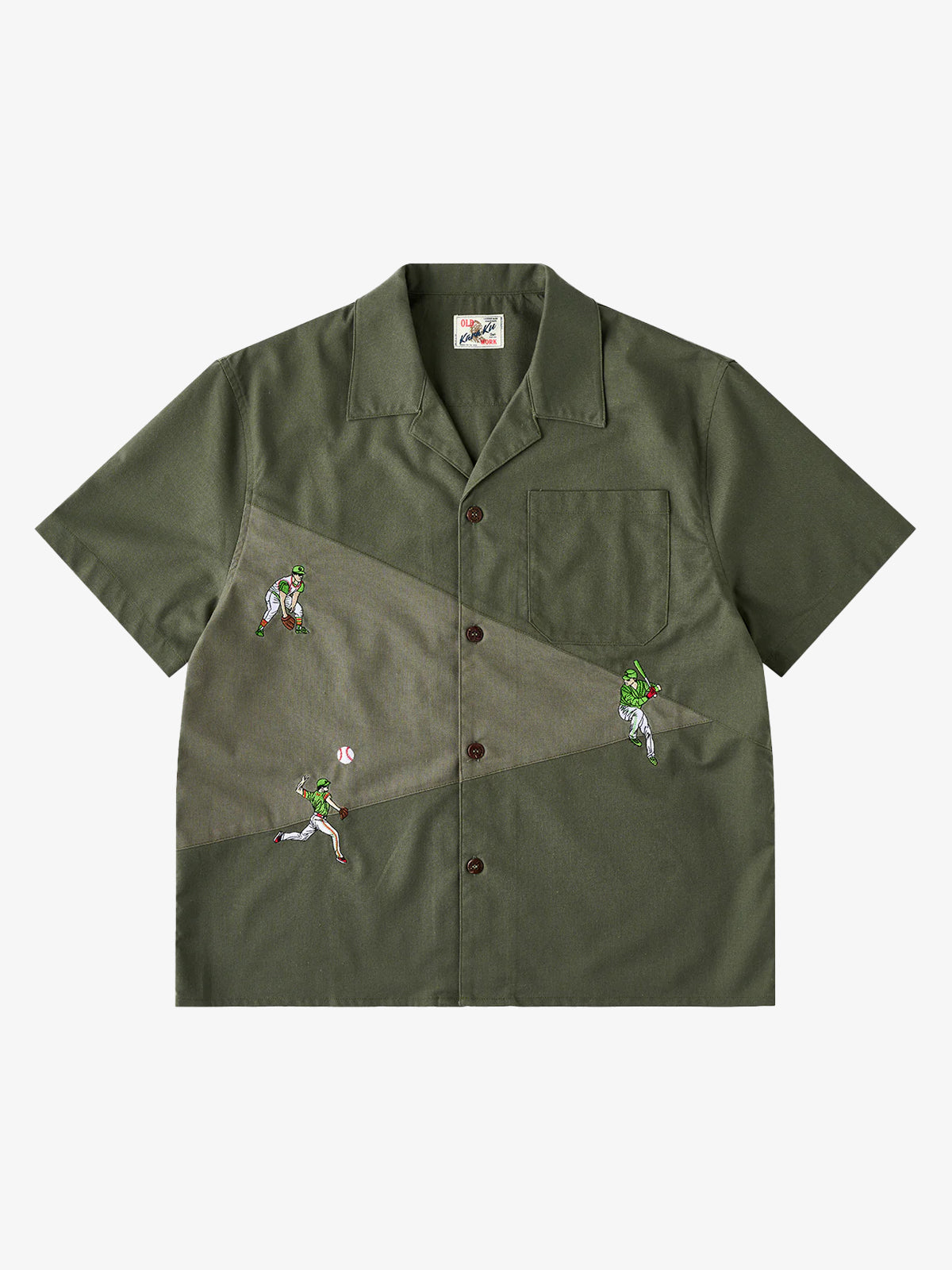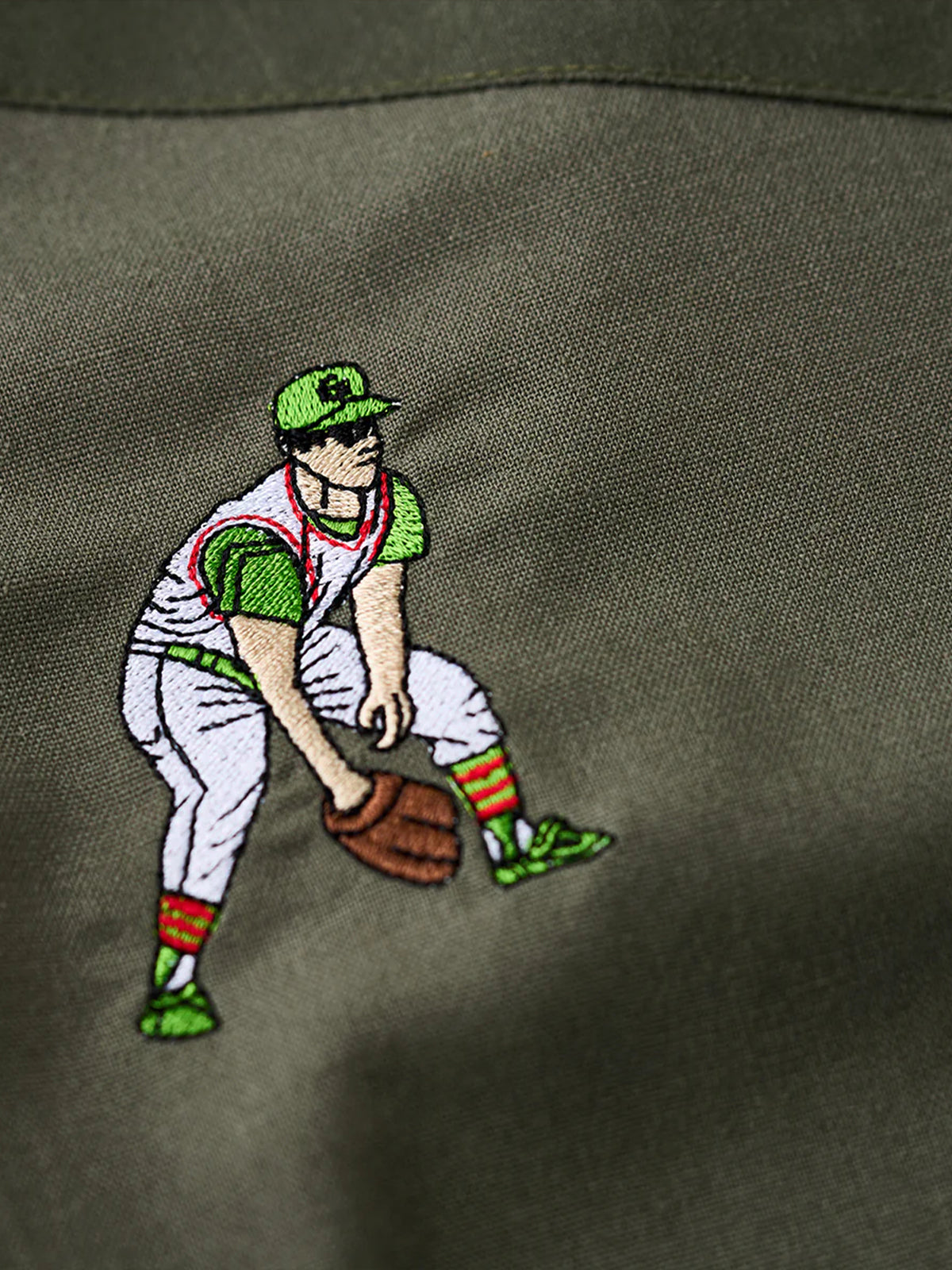 "Baseball Positions" Embroidered Linen-Blend Open-Collar Shirt