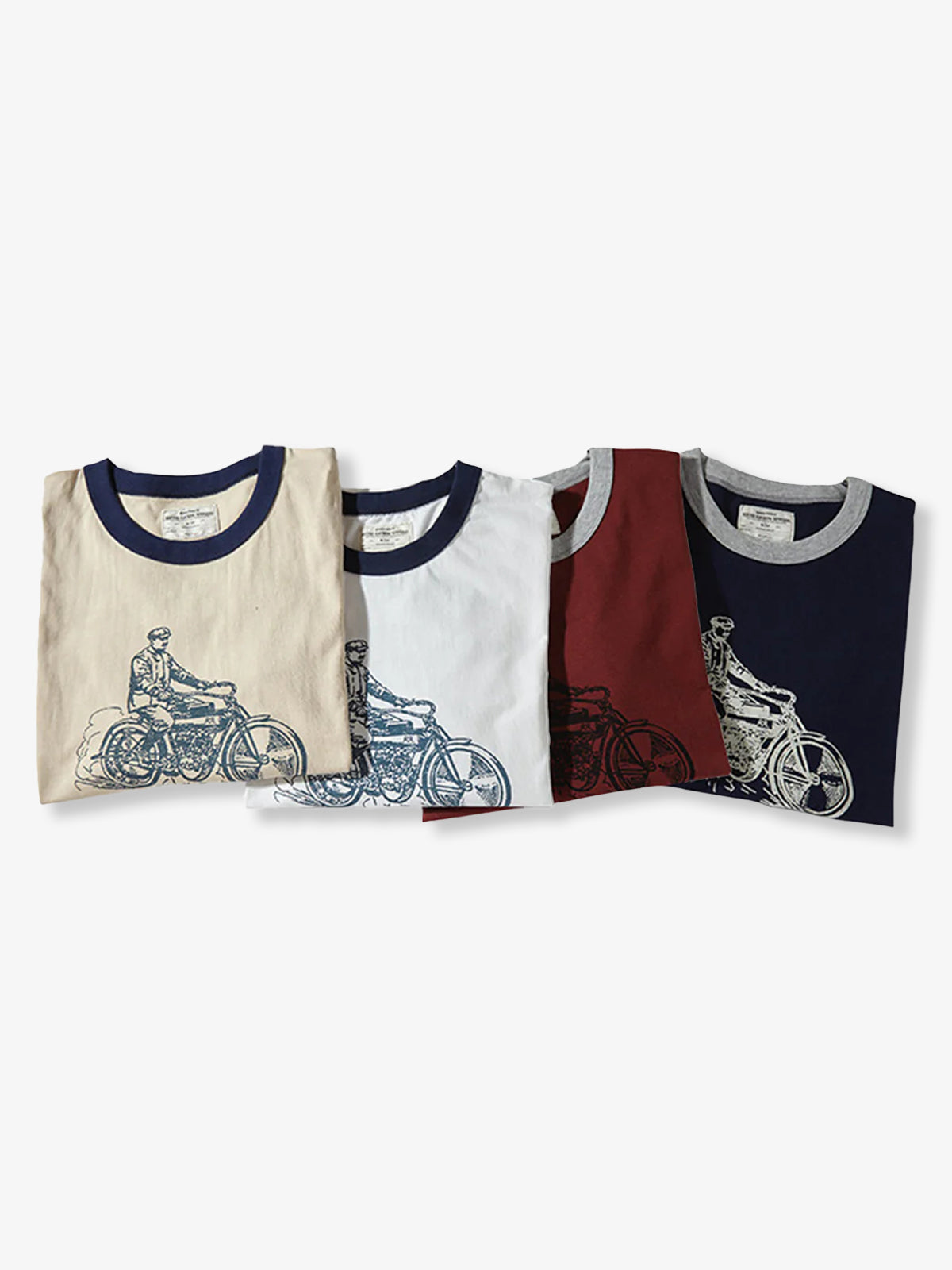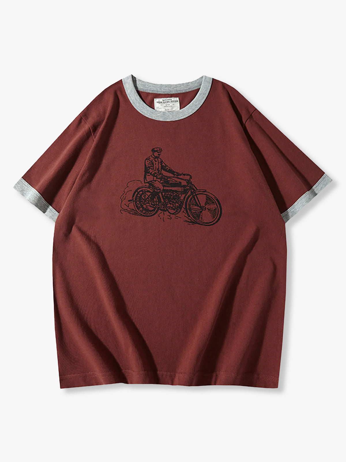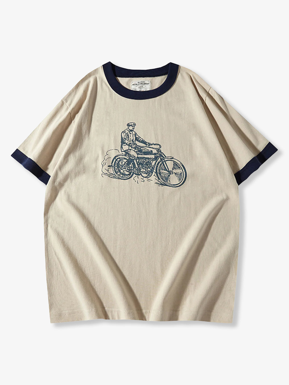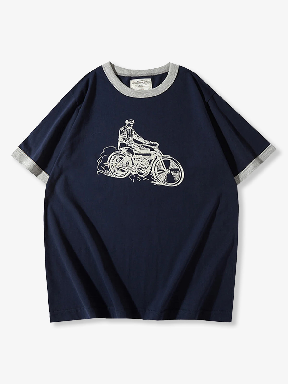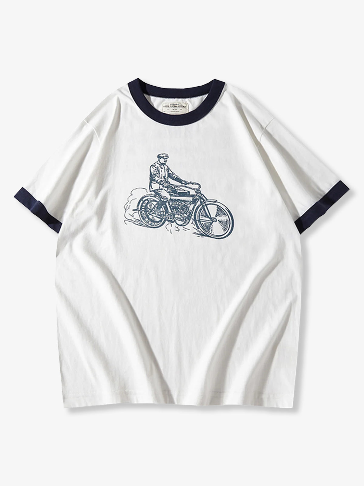 210g Heavyweight Hand-Drawn Style Motorcycle Print Ringer T-Shirt