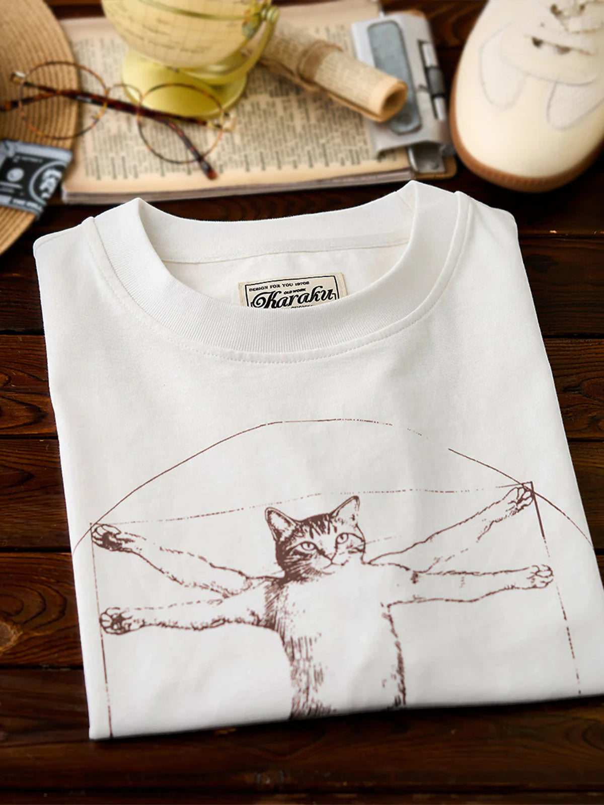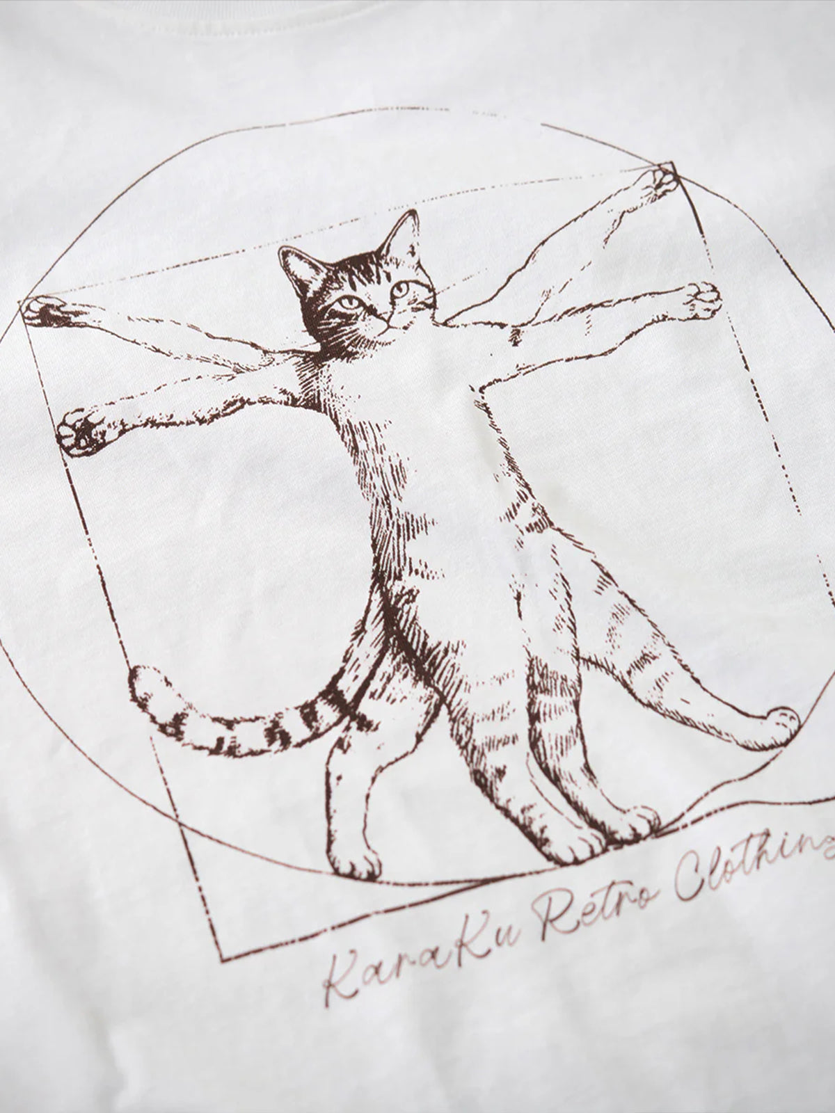 “Vitruvian Cat” Sketch-Style Line Drawing T-Shirt