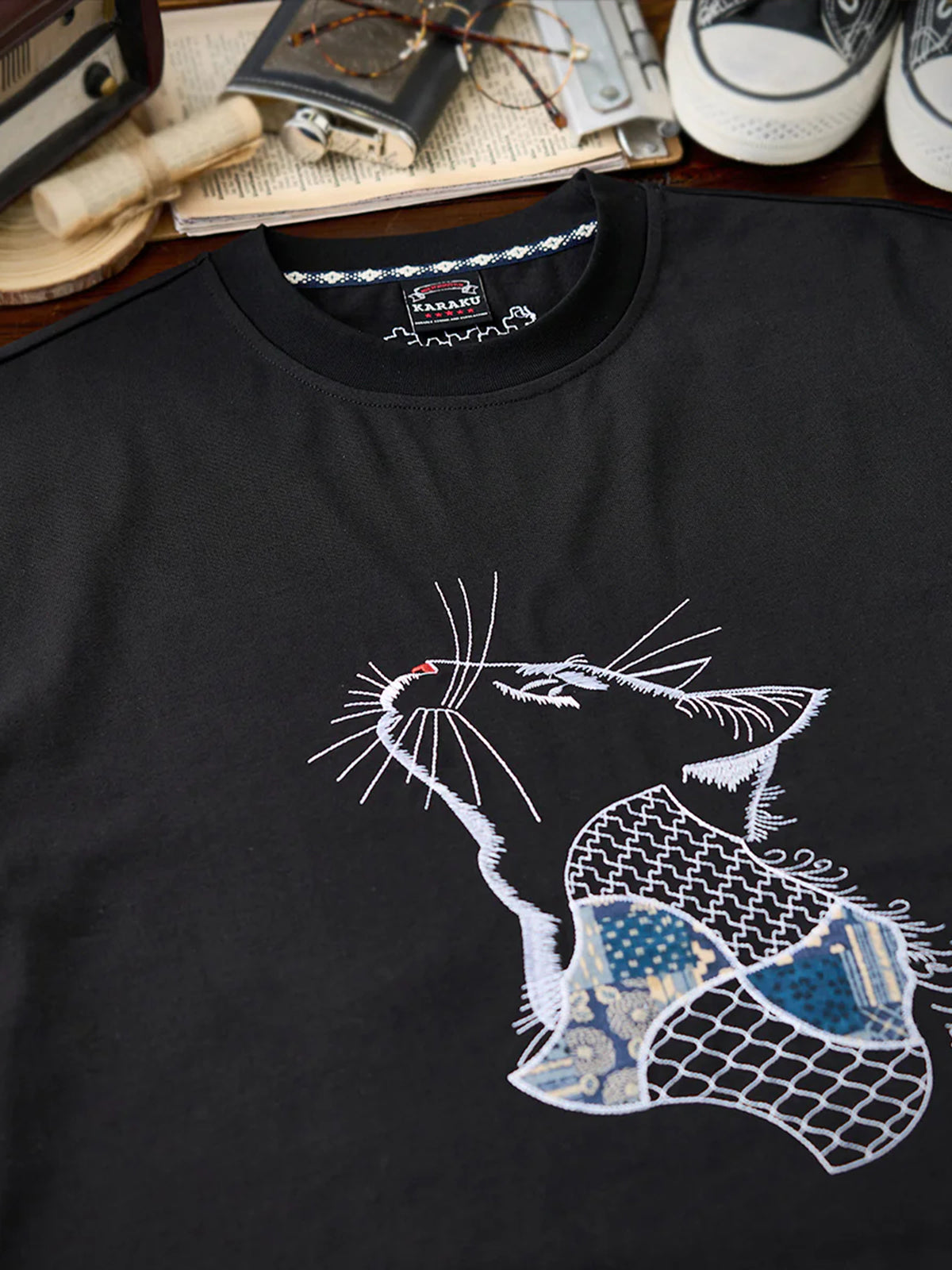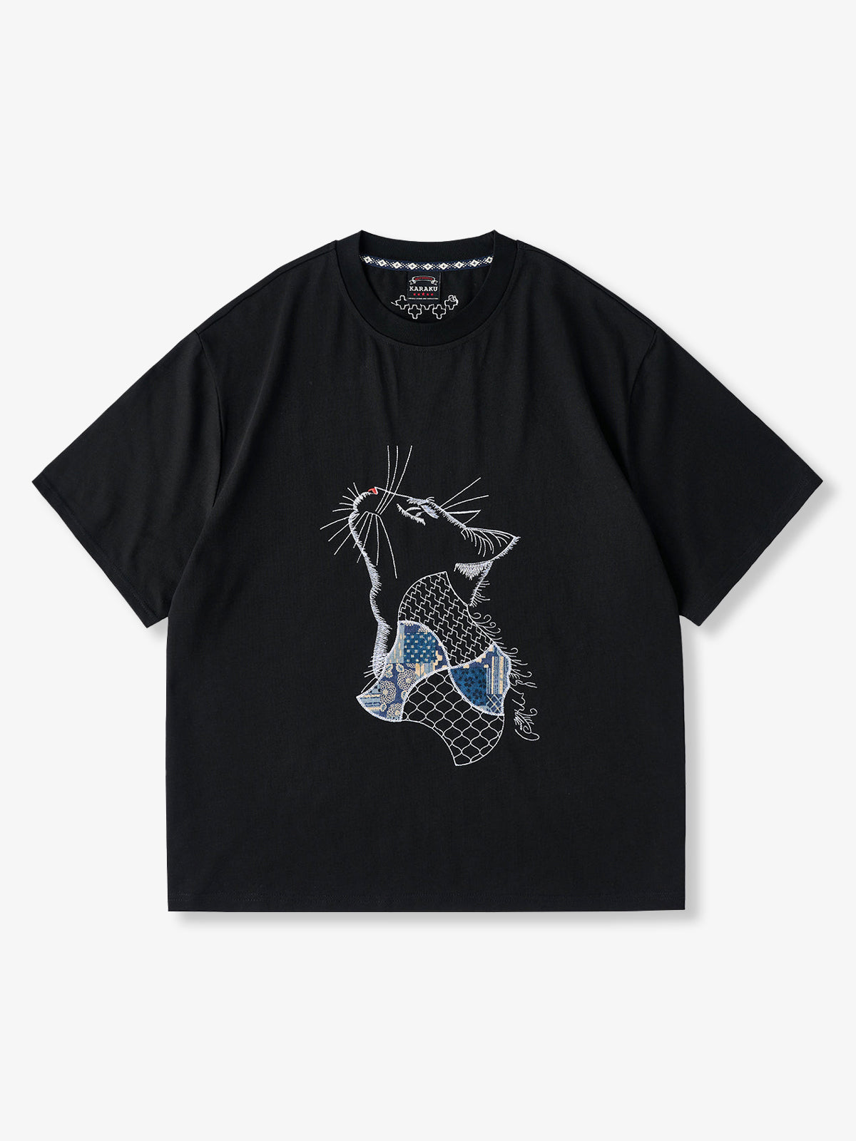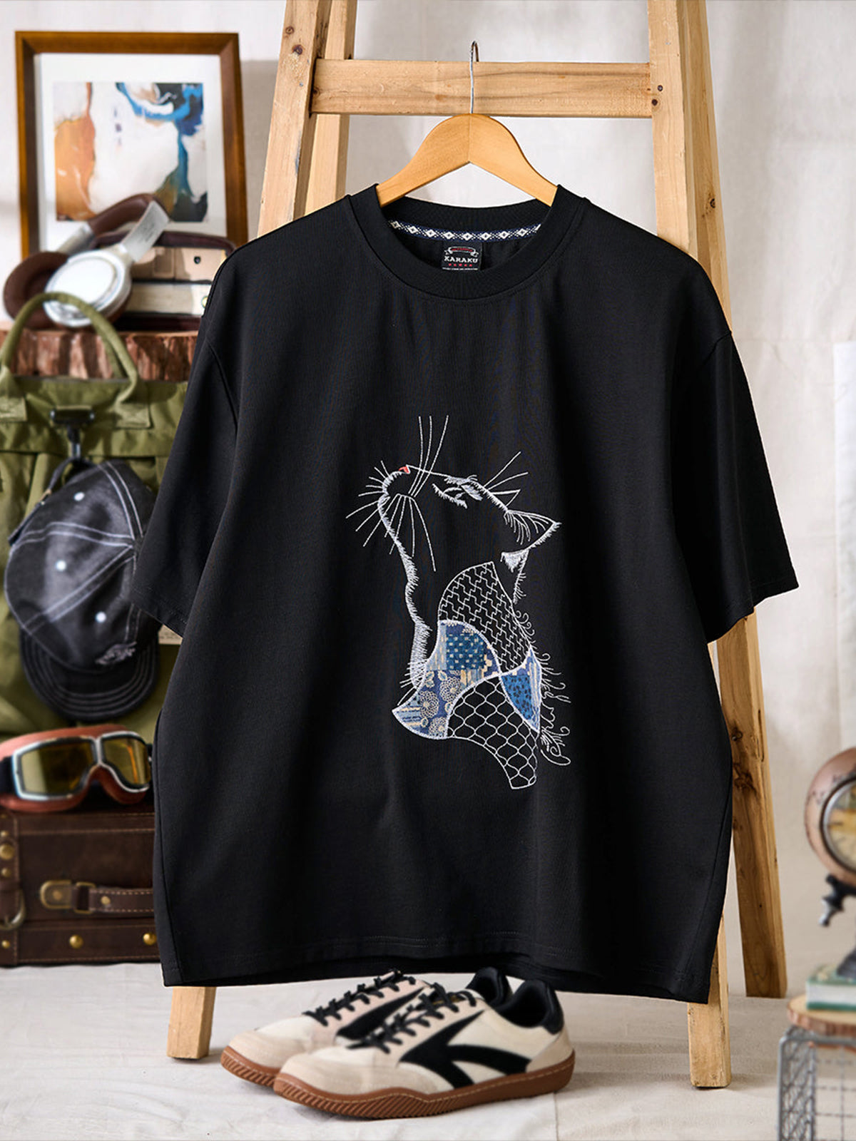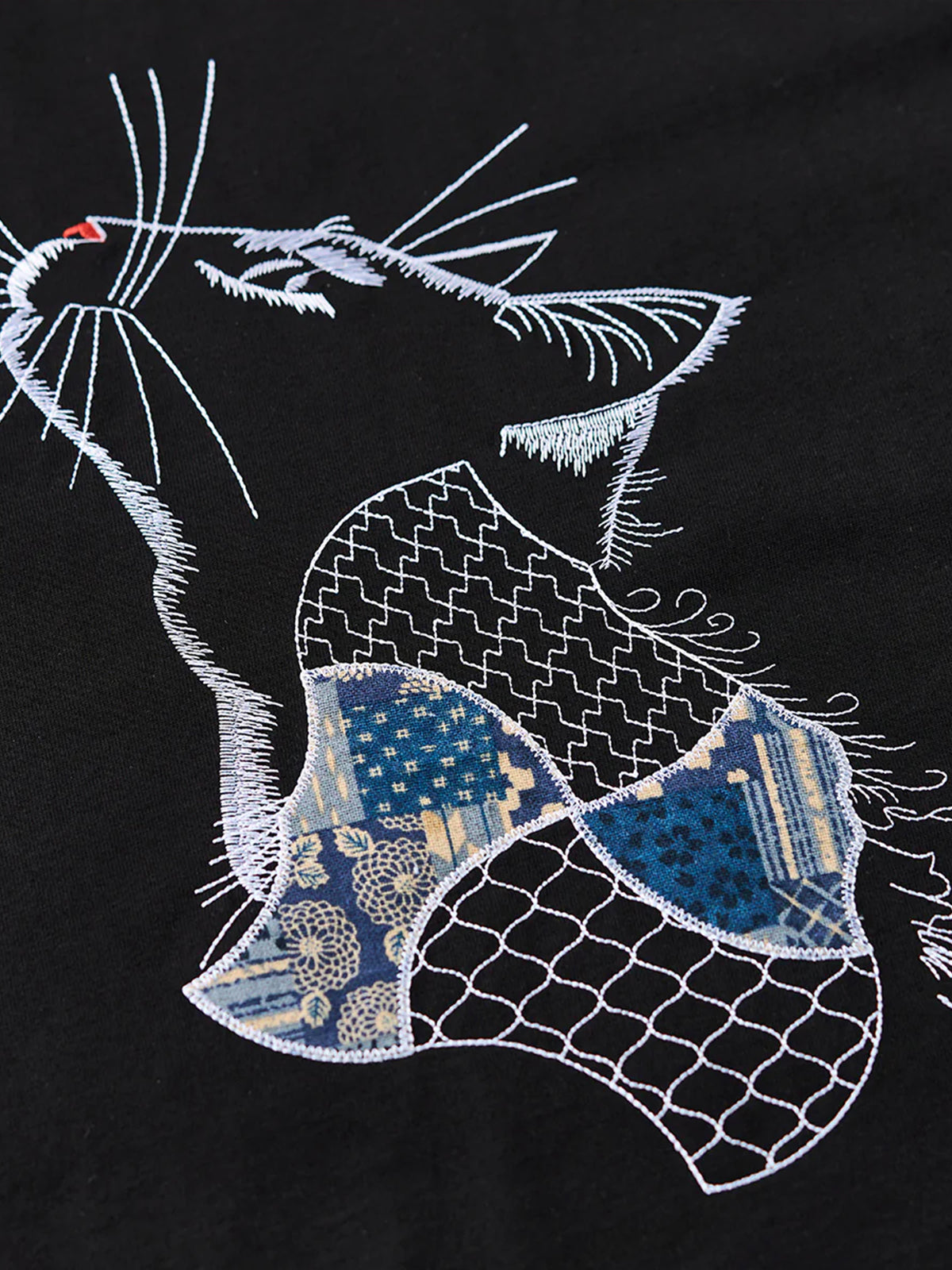 Reconstructed “Cat’s Prayer” Sashiko × Vintage Patchwork T-Shirt