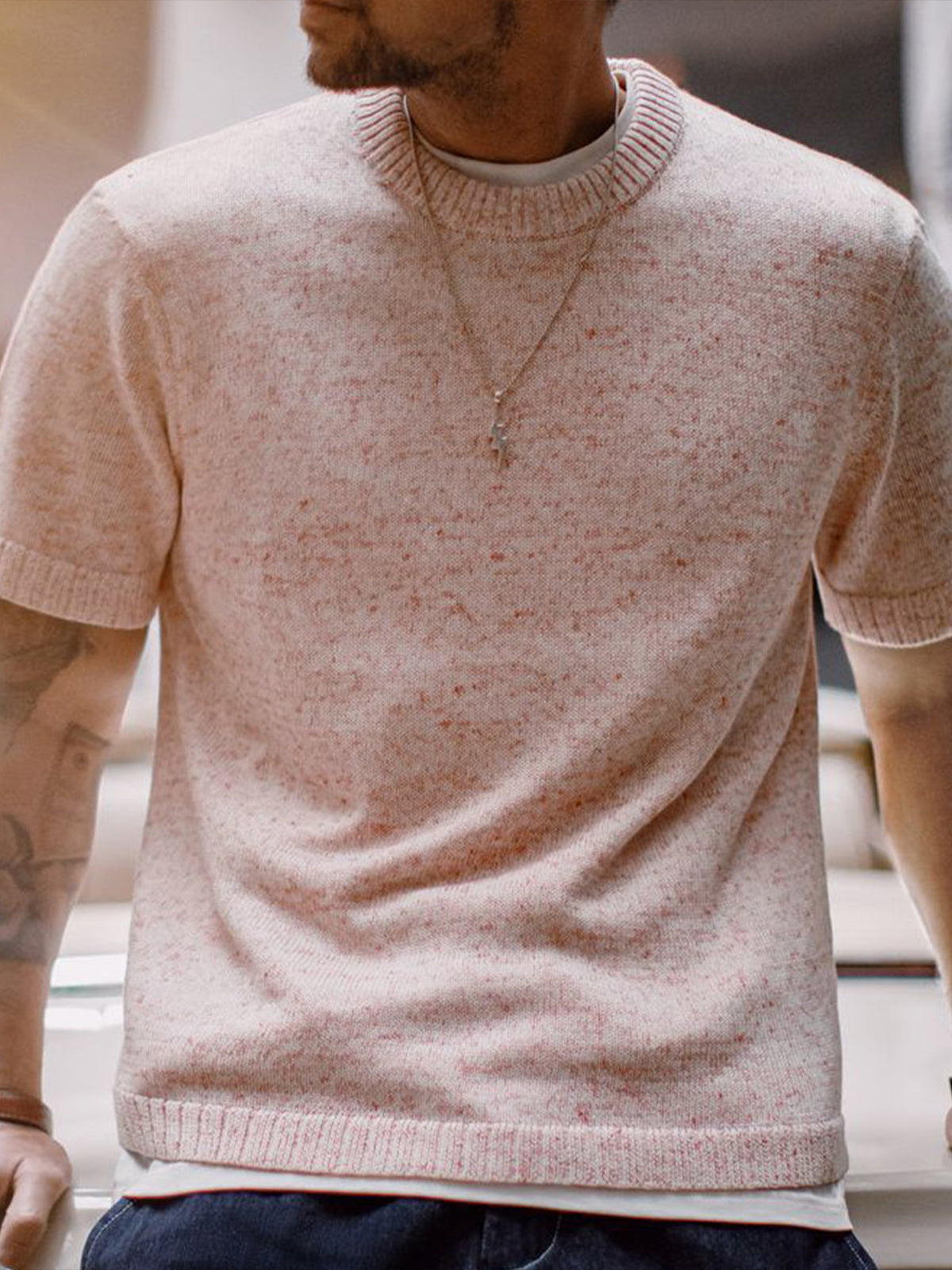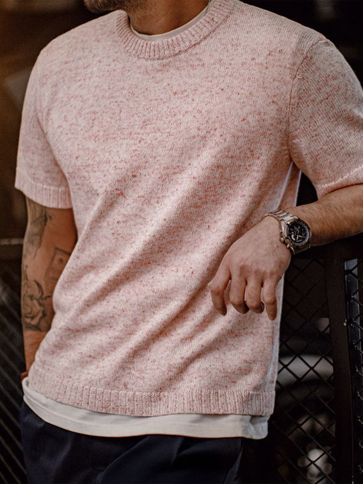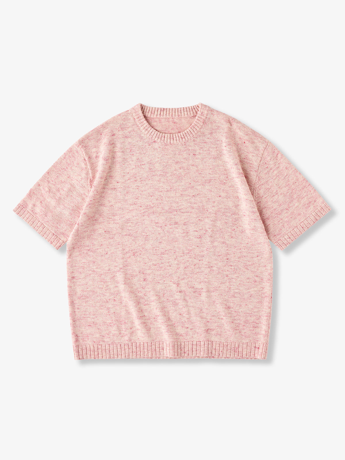 MACHO PINK Melange Knit Crew Neck T-Shirt