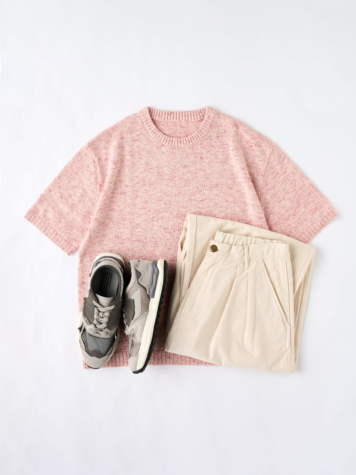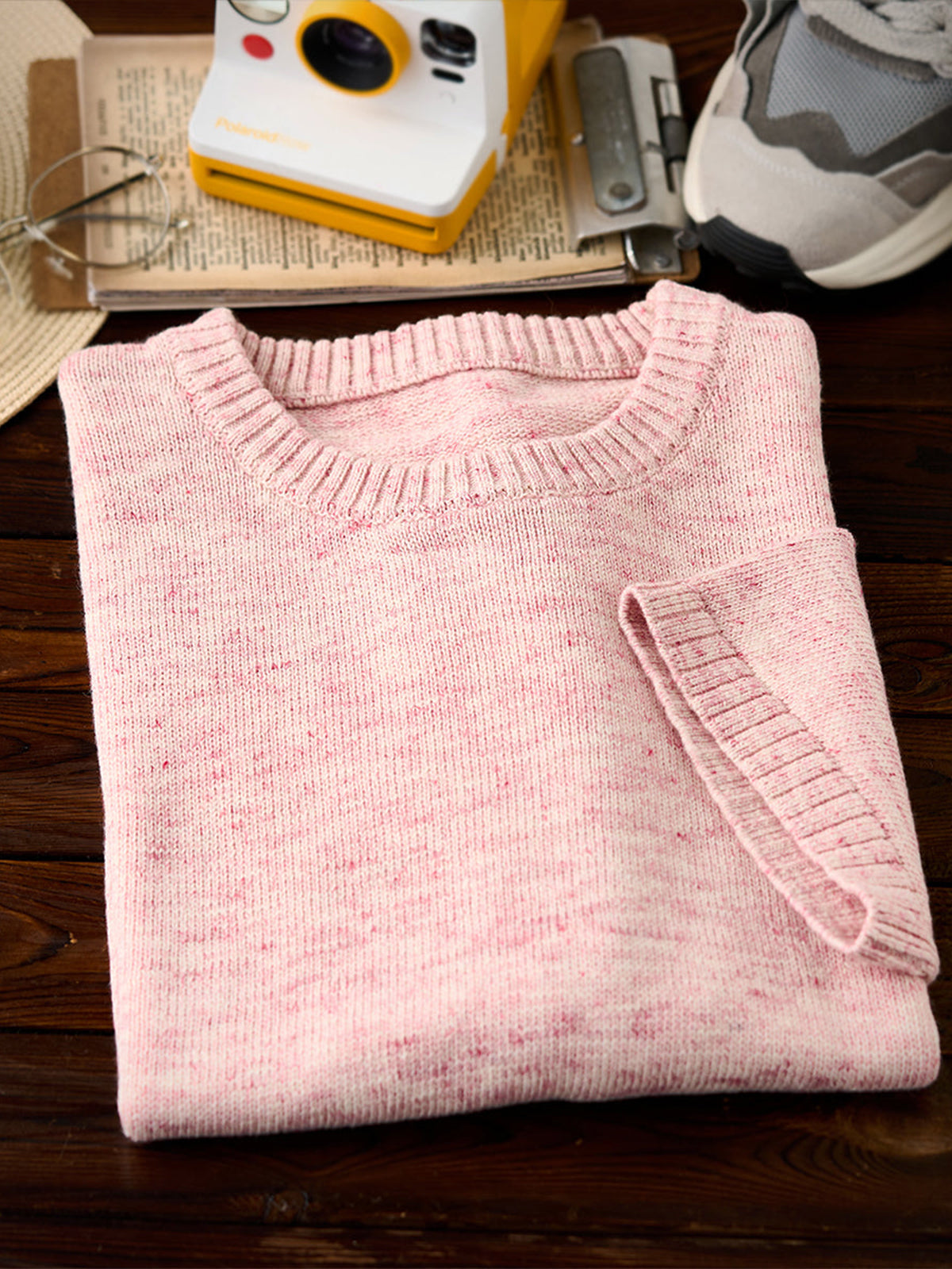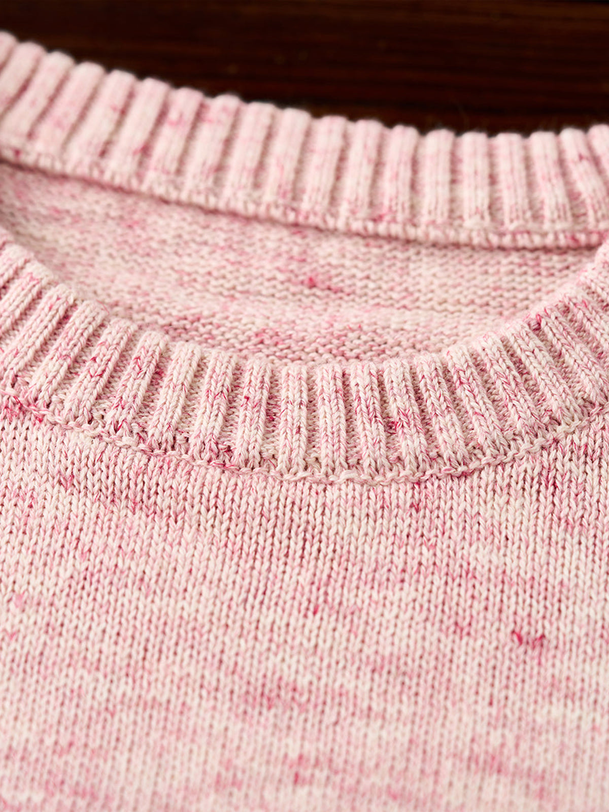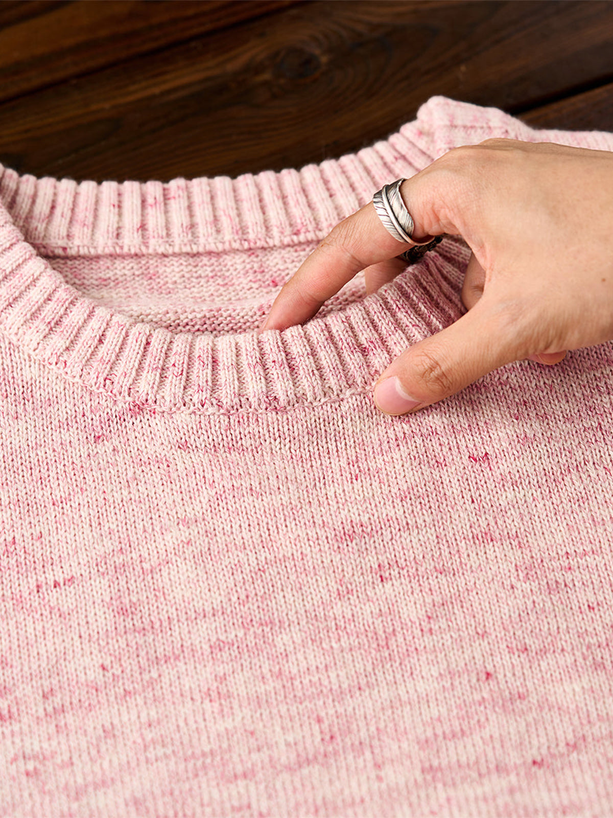 MACHO PINK Melange Knit Crew Neck T-Shirt