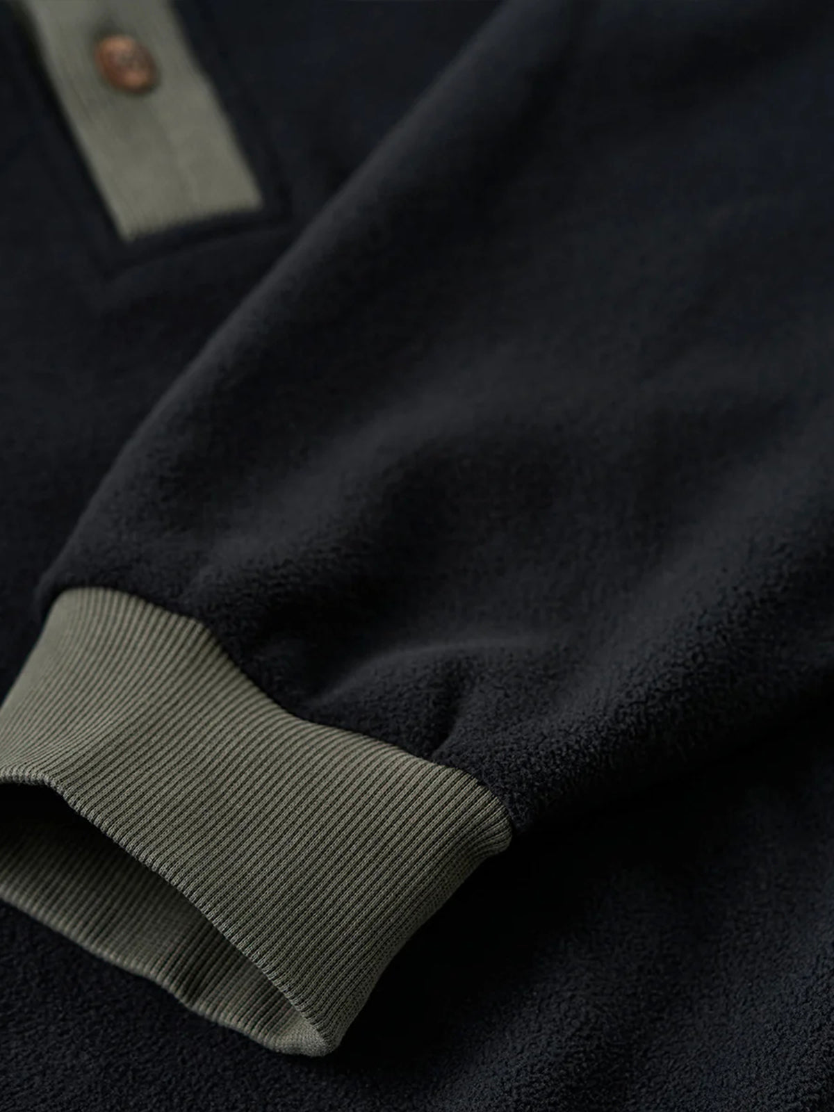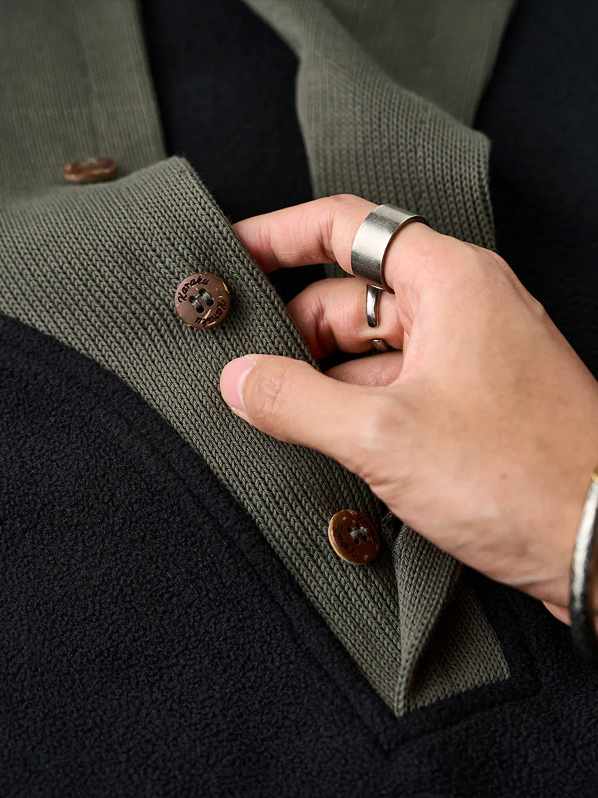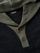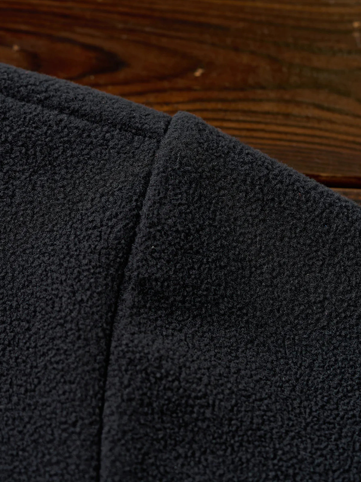 - Fabric Features: Fleece material is used for the body, offering high heat retention and comfort suitable for the autumn and winter seasons. Knit fabric is used around the hood and button area, emphasizing the contrast with the fleece.