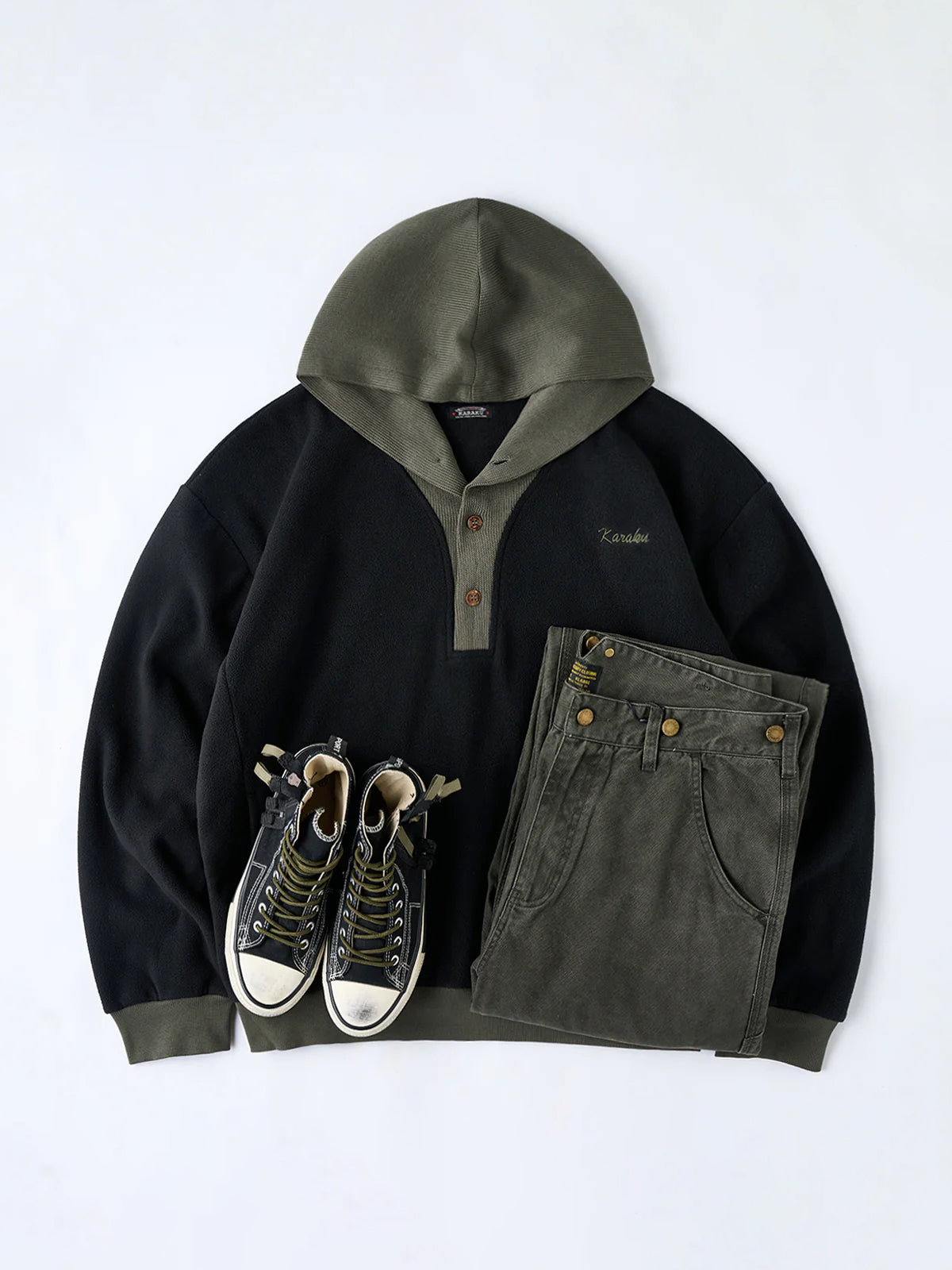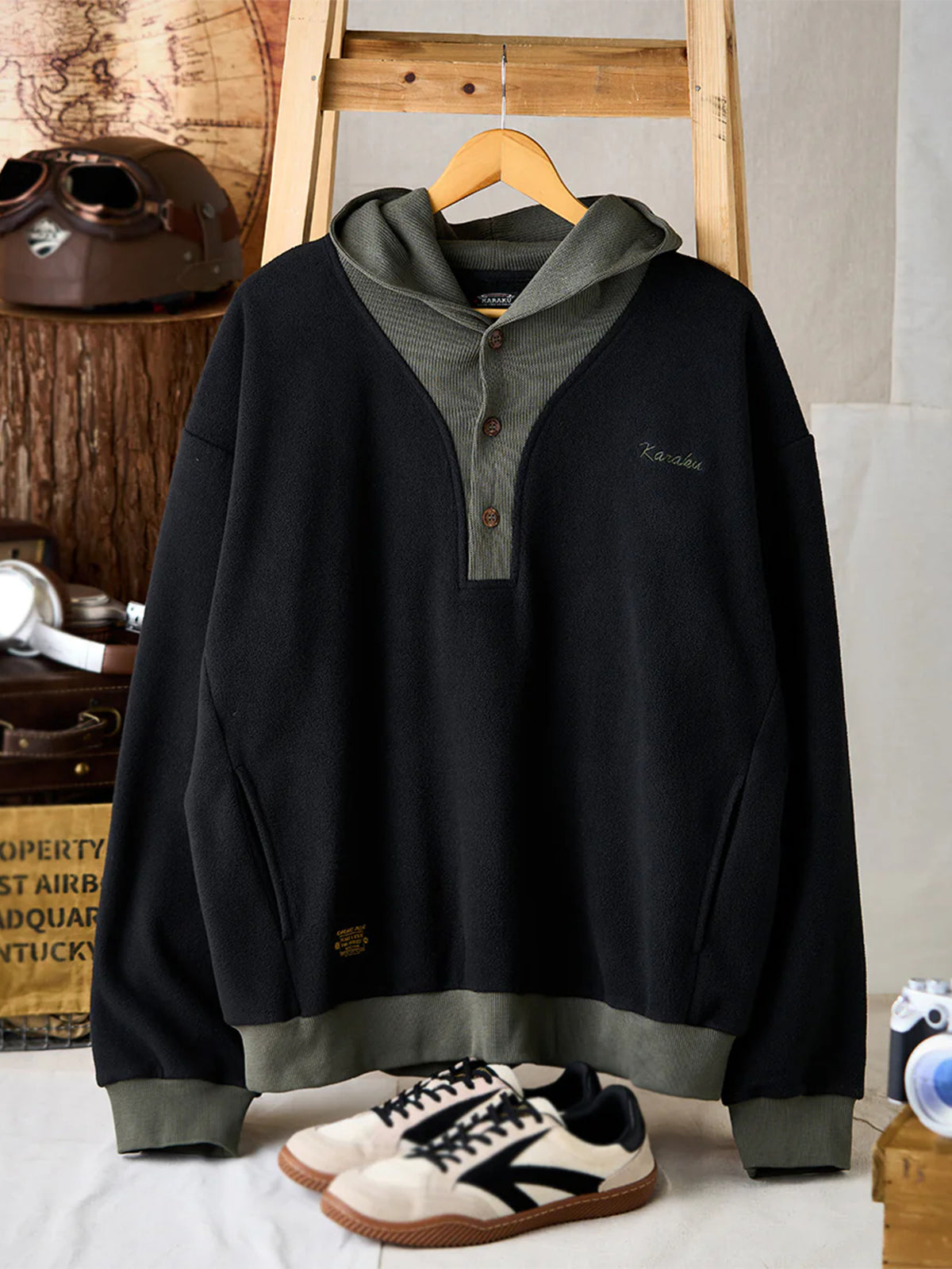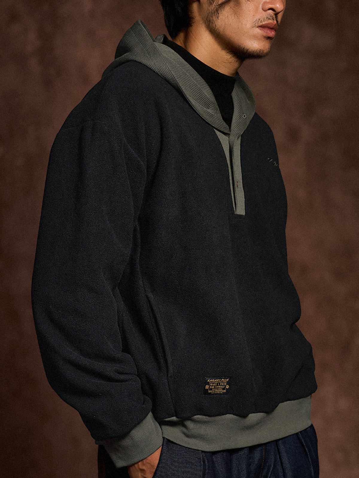 [Pre-order] Knit-Contrast Double-Sided Brushed Fleece Hoodie