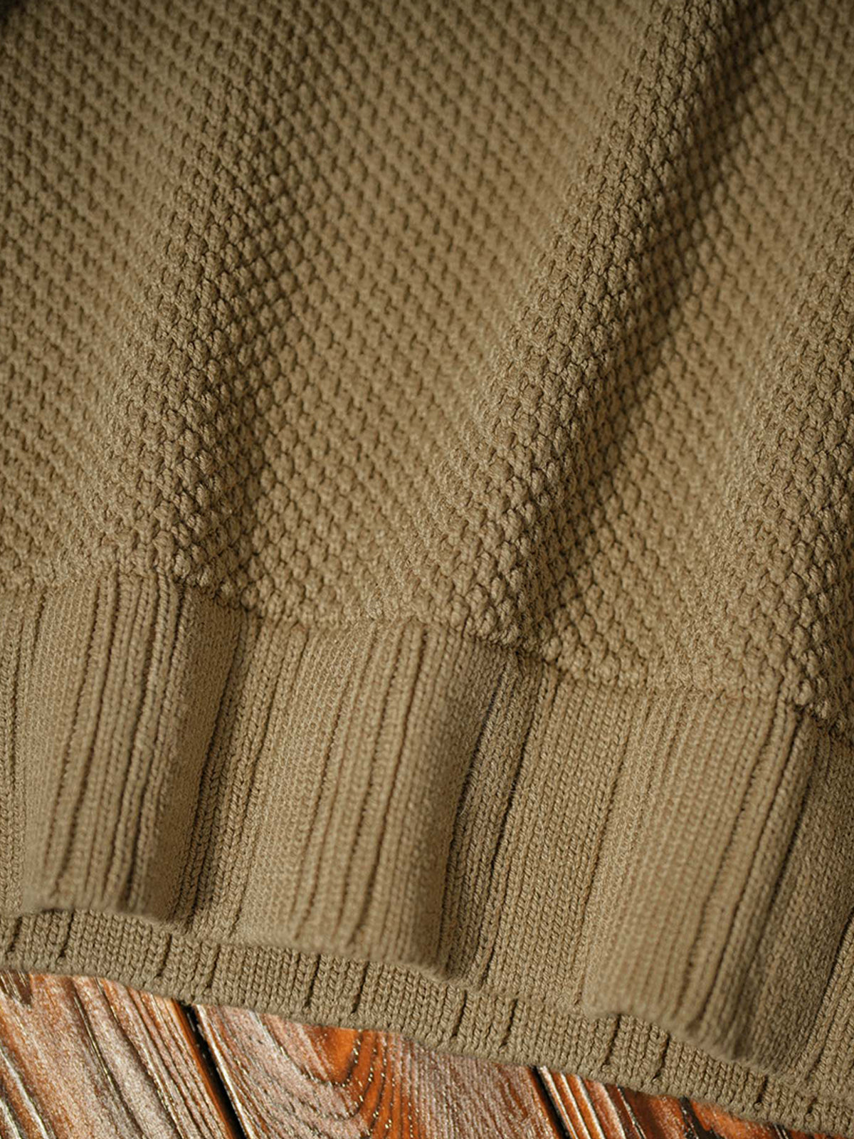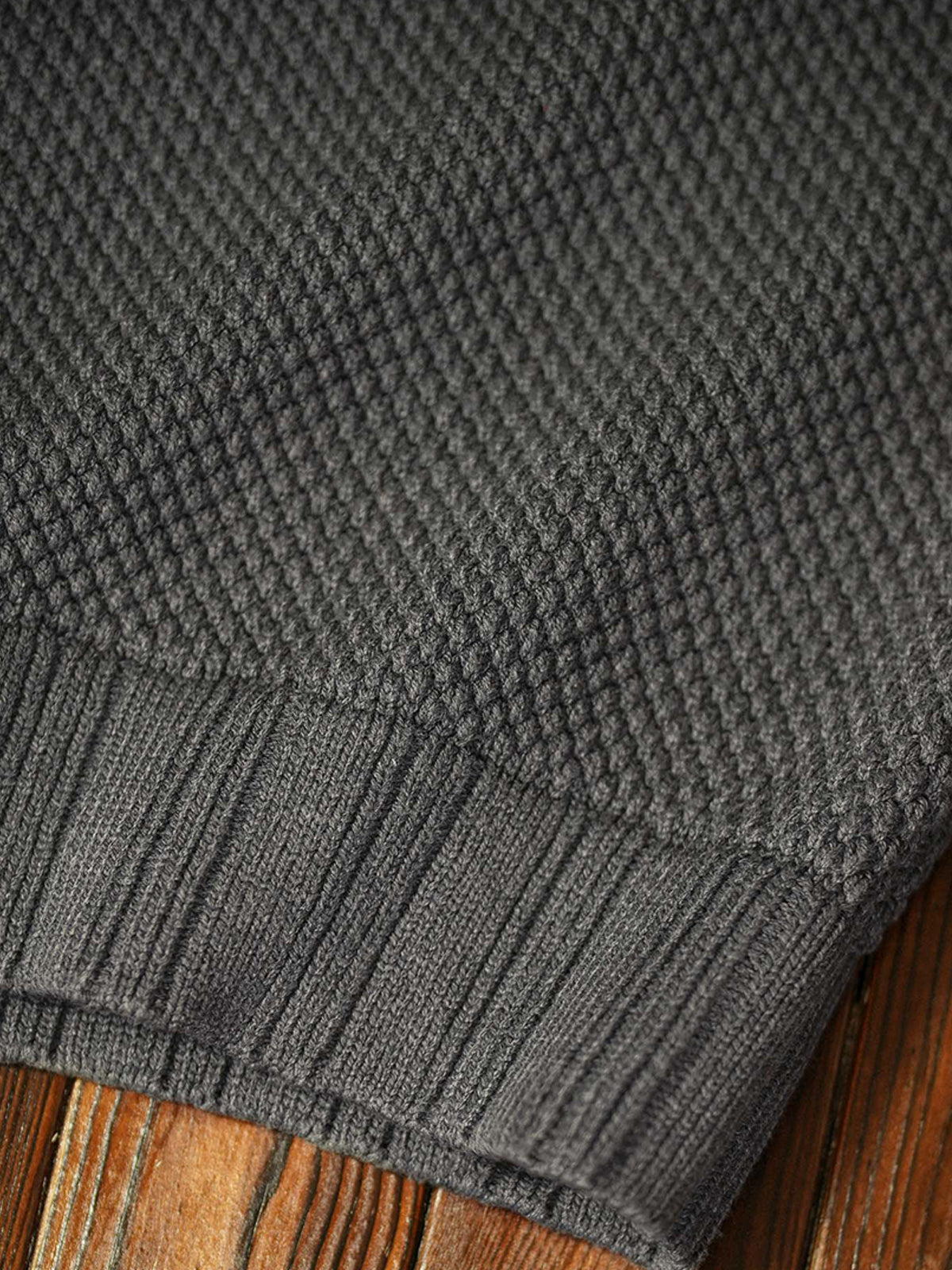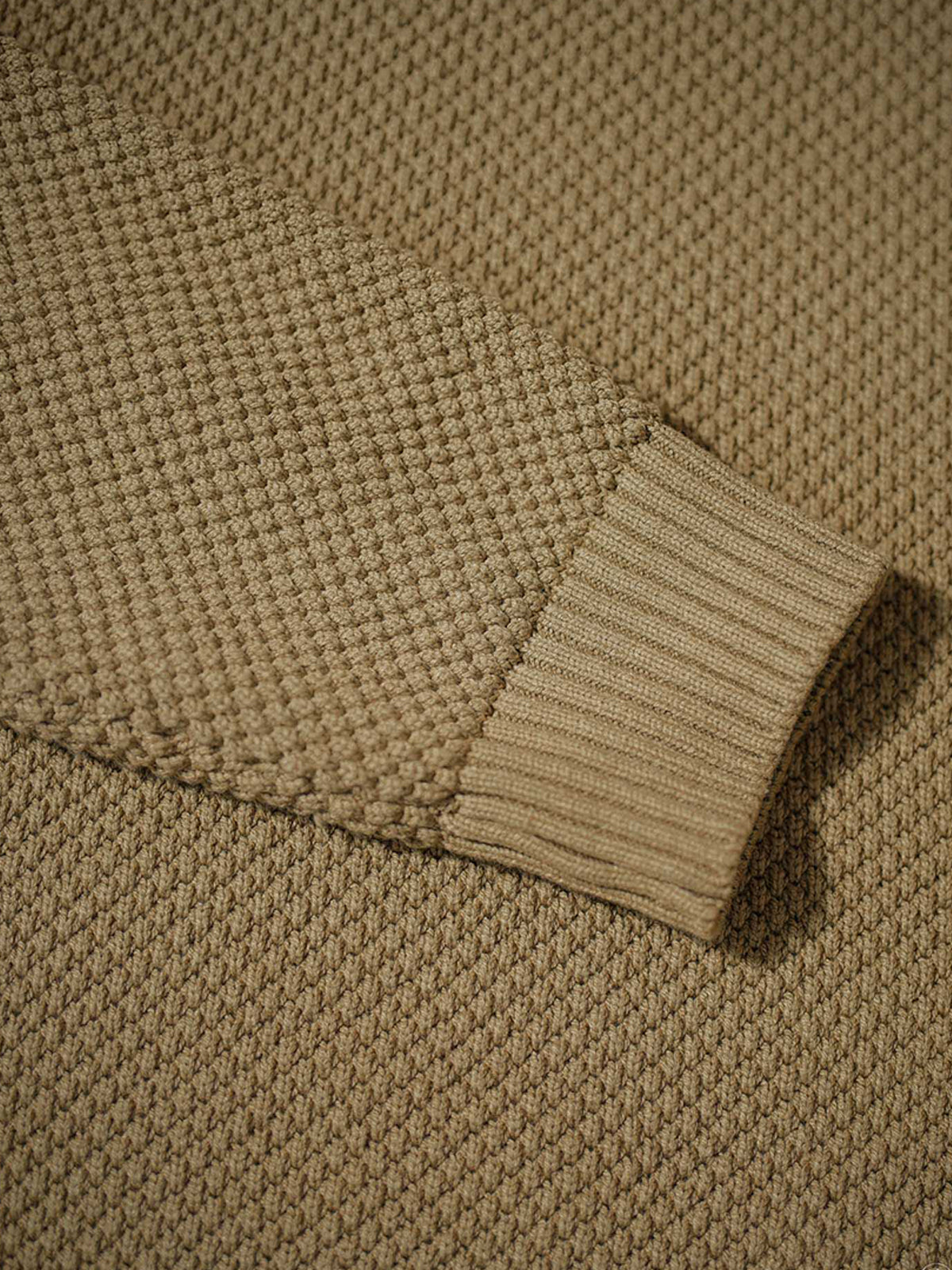 - Ribbed trim at collar, cuffs, and hem.