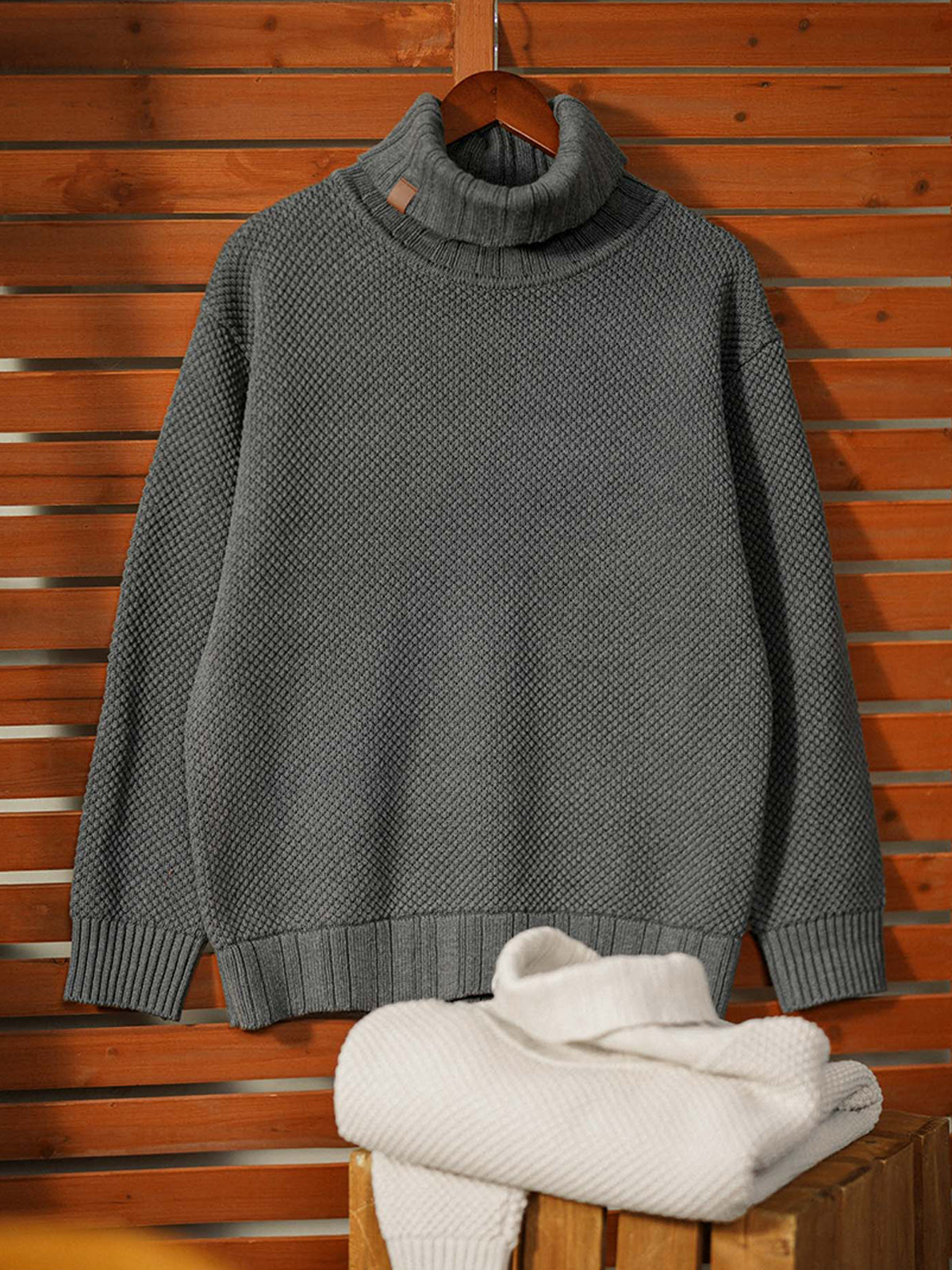 The turtleneck design ensures warmth around the neck, while the ribbed details enhance both comfort and durability. Its soft and breathable cotton blend offers a pleasant wearing experience, even for those with sensitive skin. This versatile sweater can be paired effortlessly with wide, baggy, or skinny pants, making it a go-to piece for layering or wearing on its own during autumn and winter.