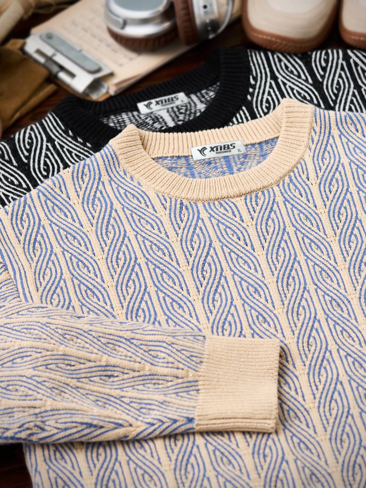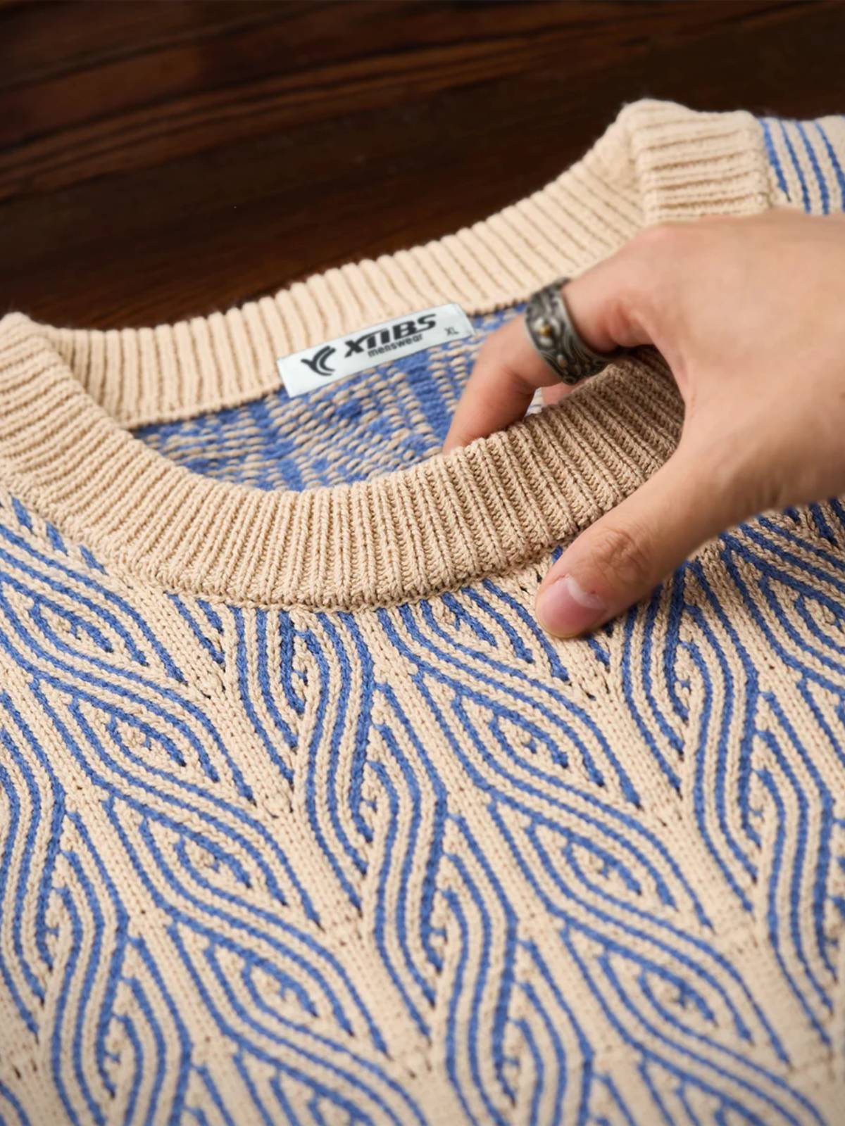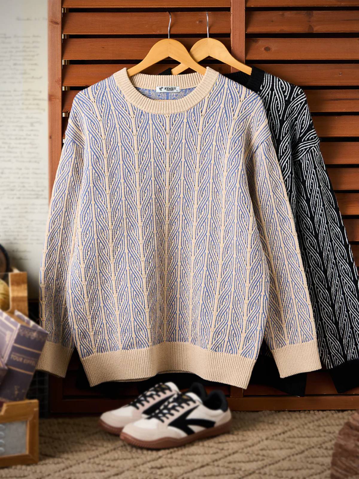 This classic jacquard sweater features a textured design with delicate patterns, creating a sophisticated and warm look. Made from a high-quality cotton blend, it offers a soft touch, excellent warmth, and durability. Perfect for layering, it pairs well with denim, chinos, or wide-leg pants, making it ideal for both casual and semi-formal occasions in fall and winter.