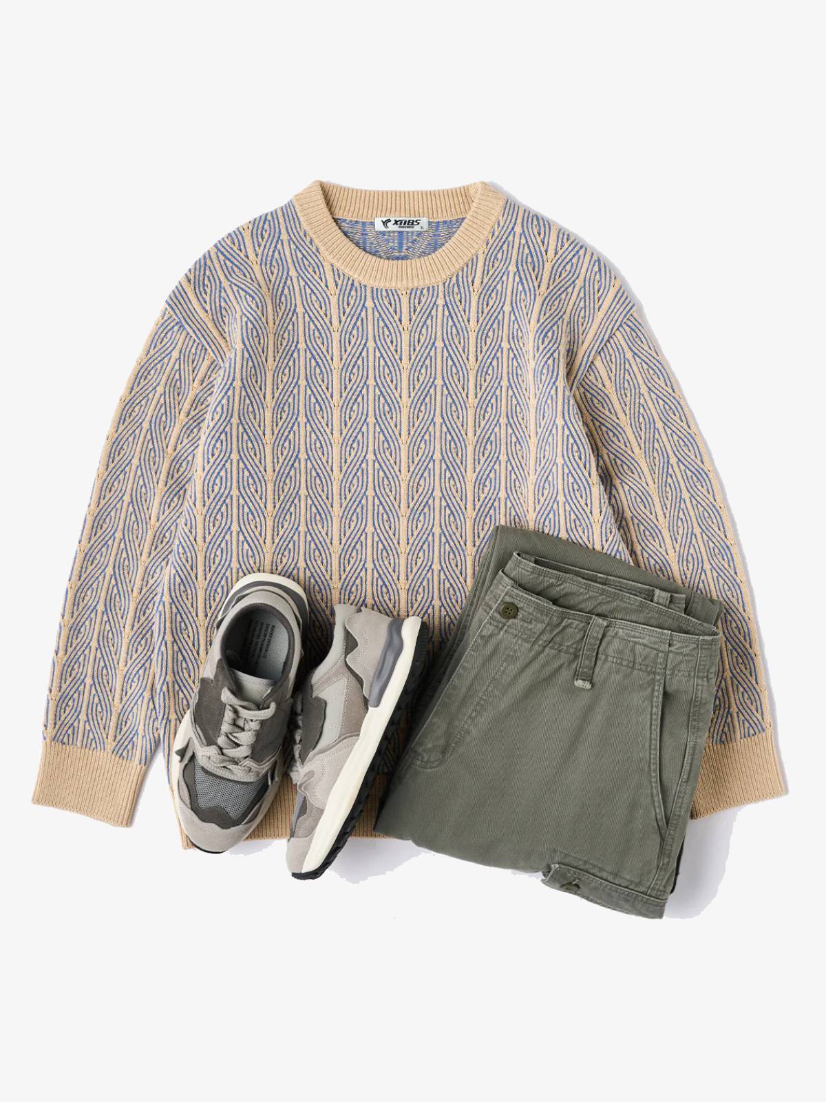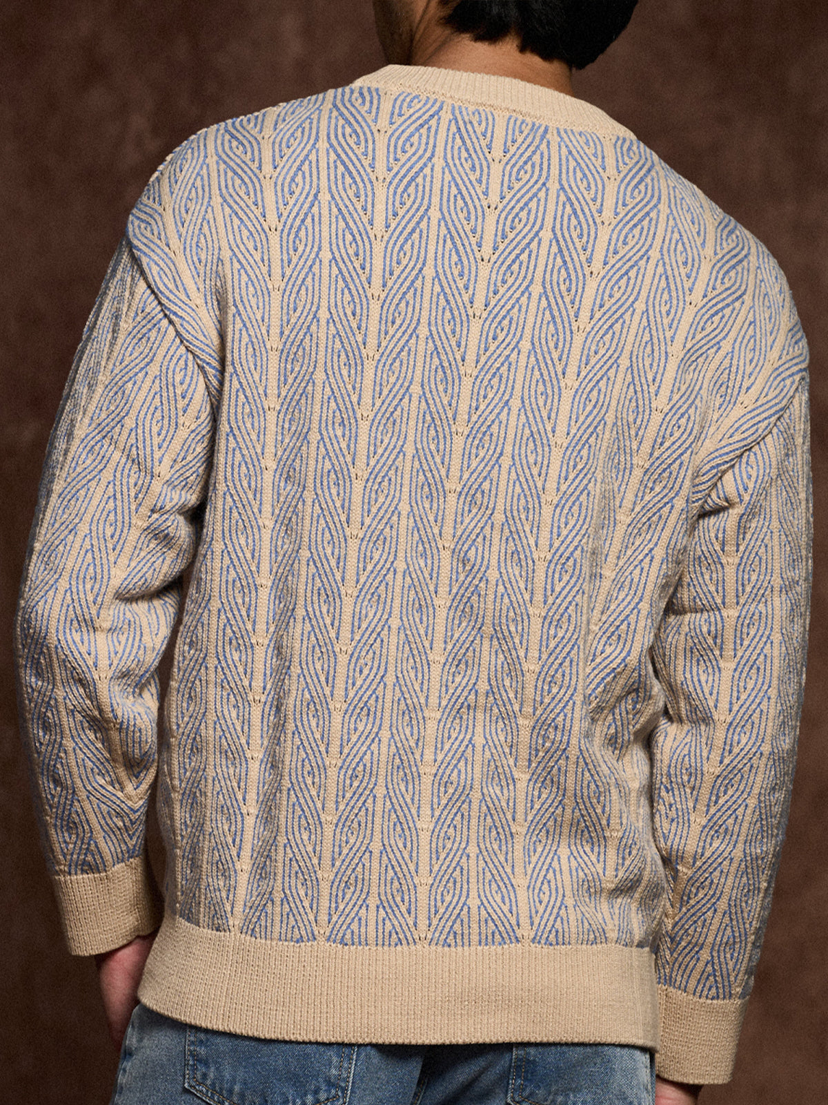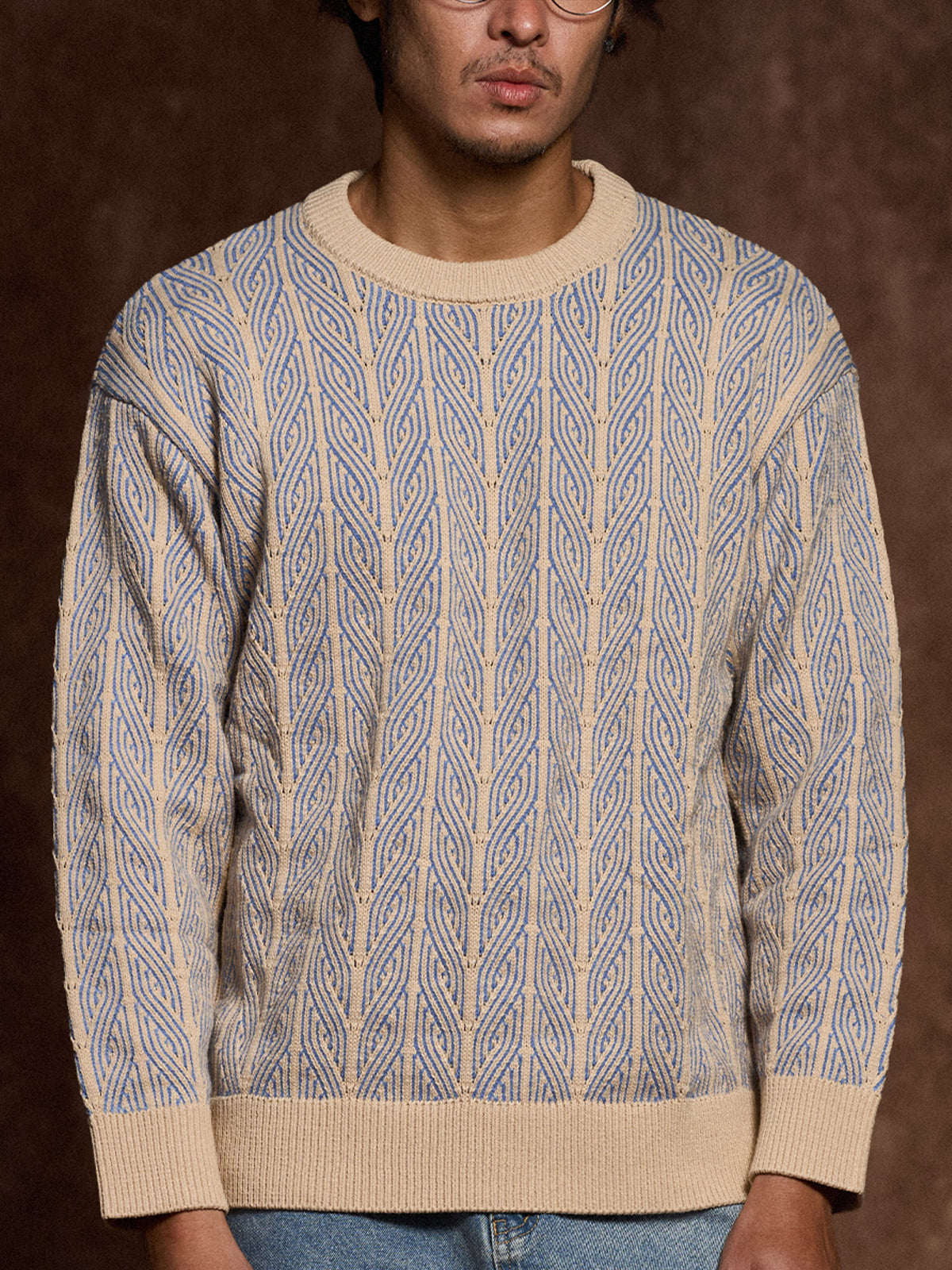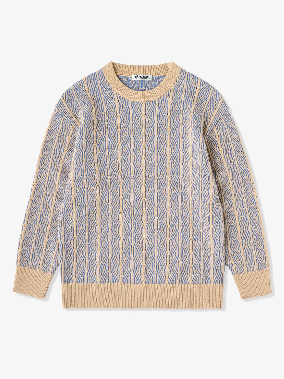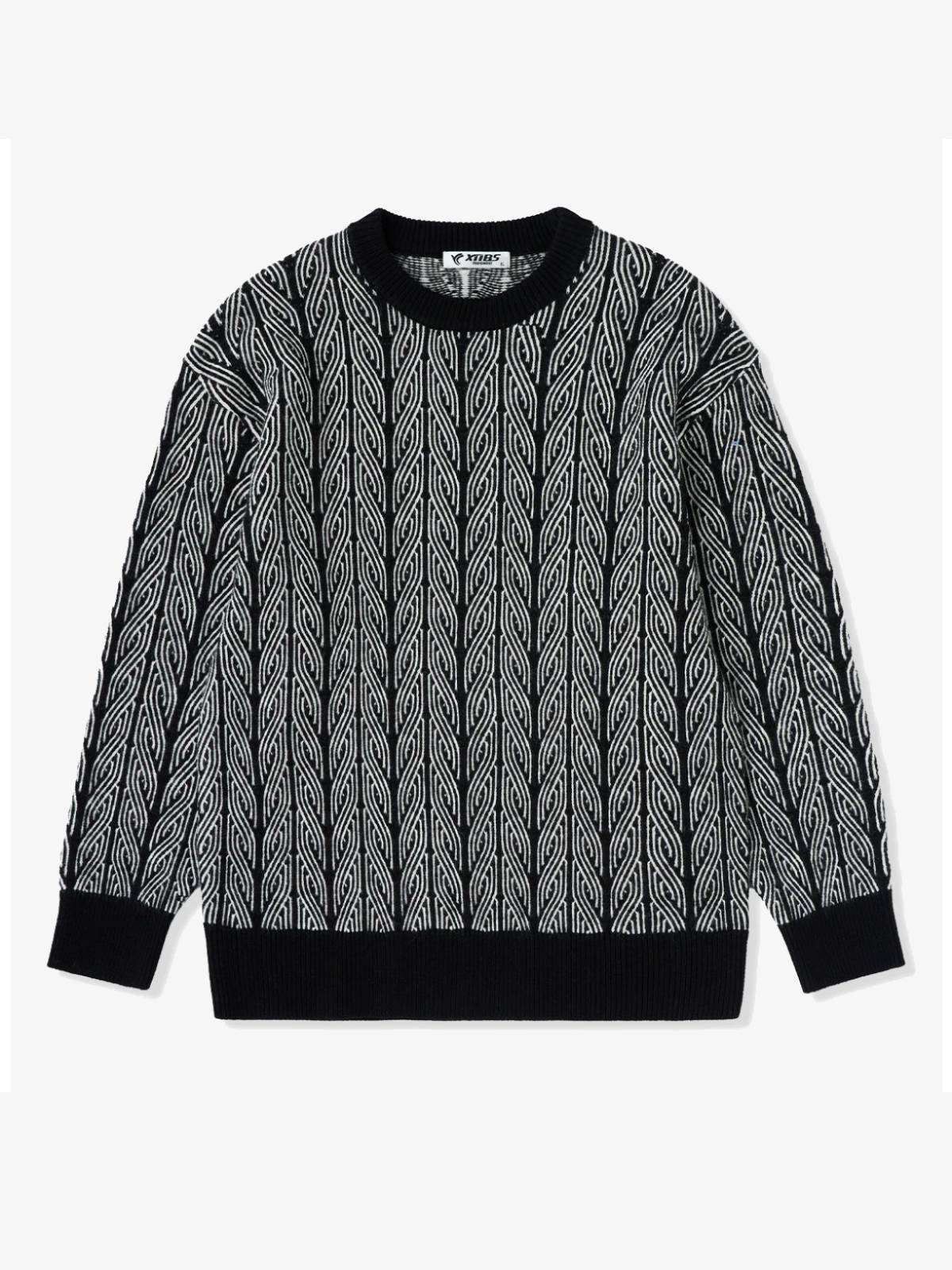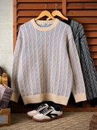Cable Knit Jacquard Crew Neck Sweater
