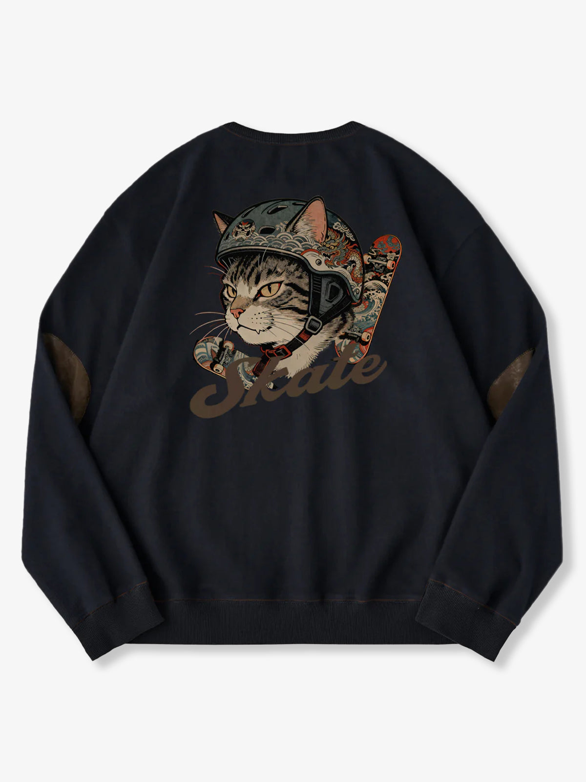 [Pre-Order] Elbow Suede Patch “Helmet Cat” Print Sweatshirt