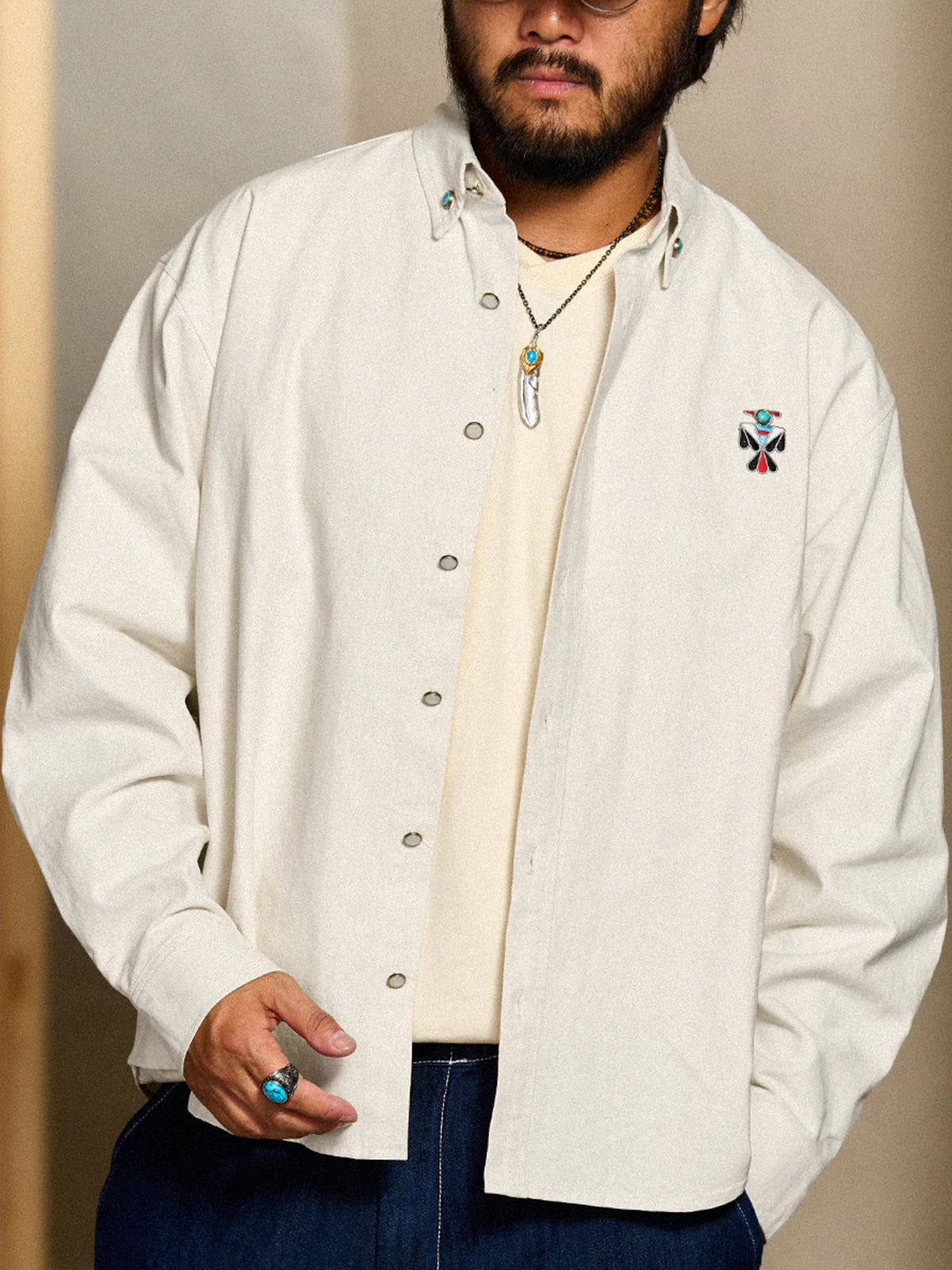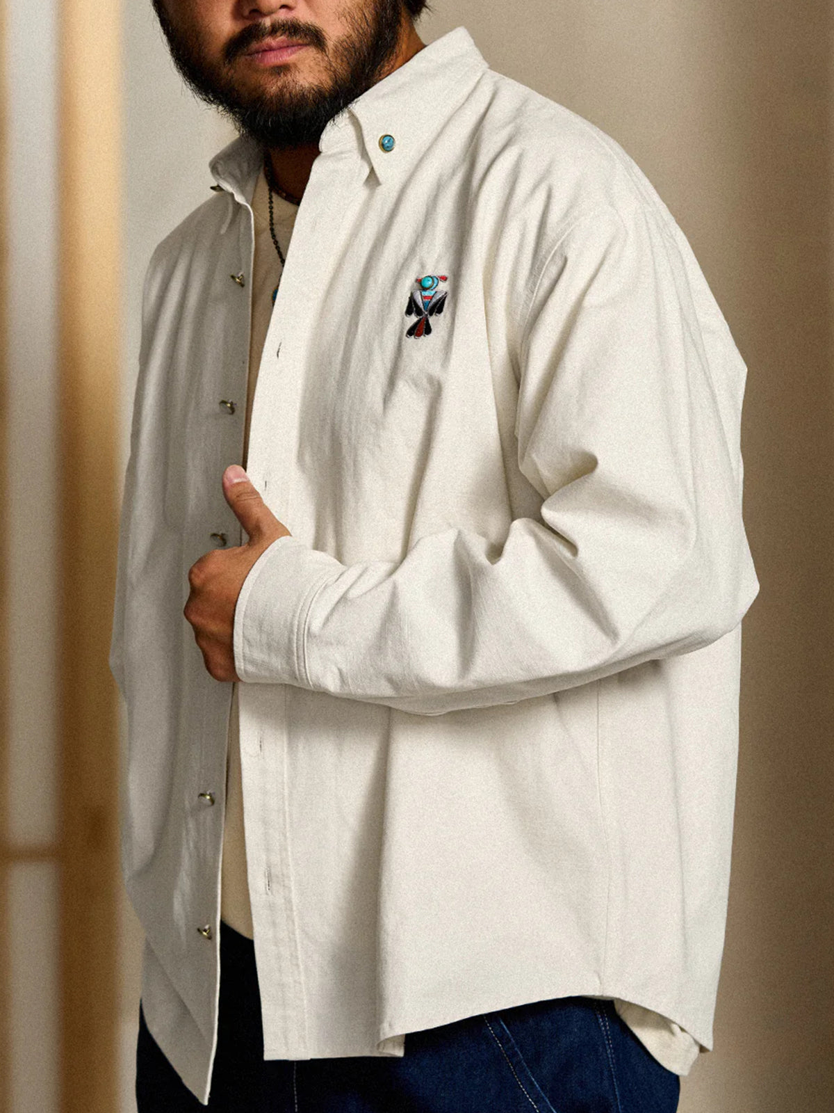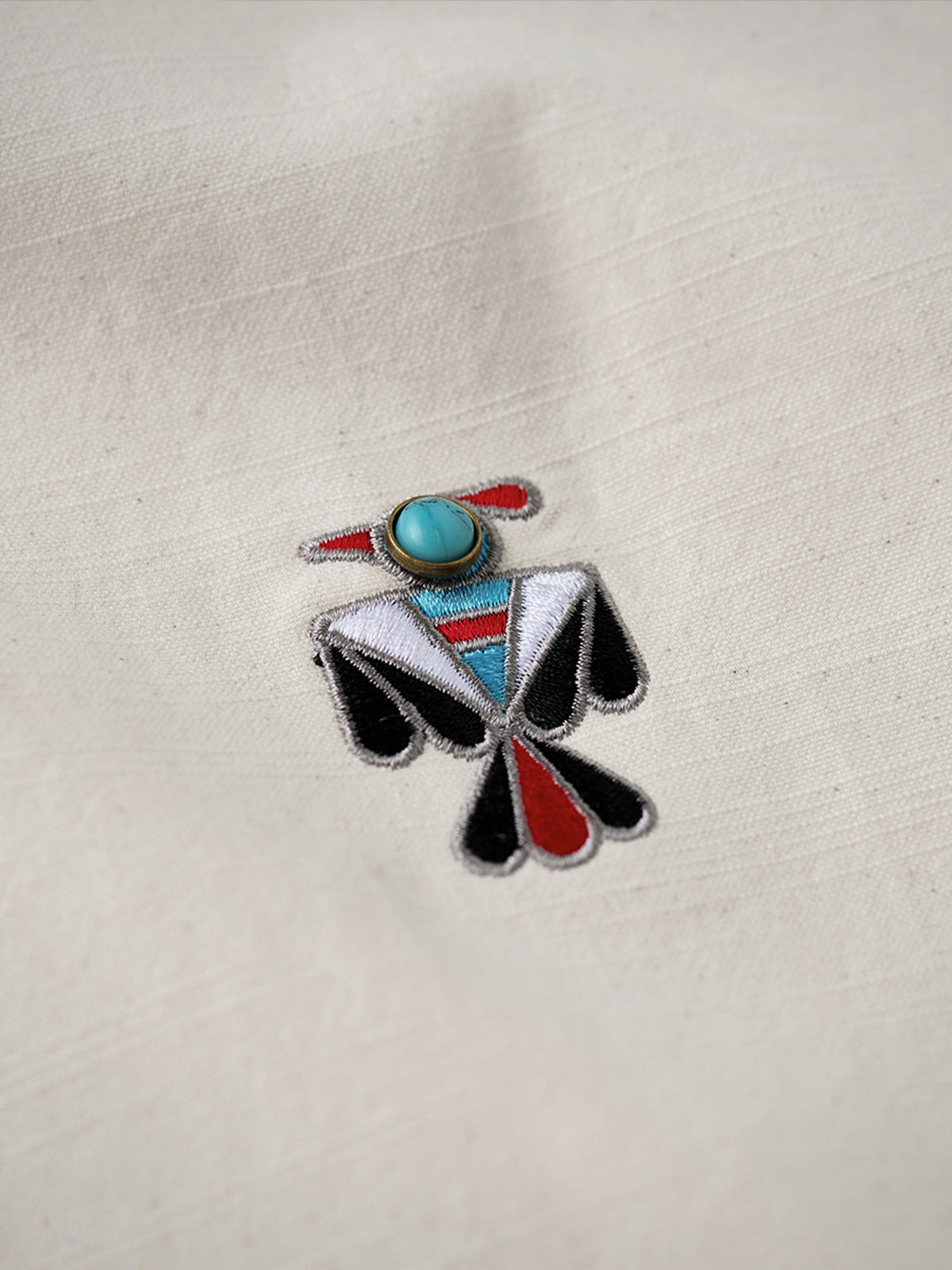Indian-style "Turquoise Thunderbird" Embroidered Long-Sleeve Shirt