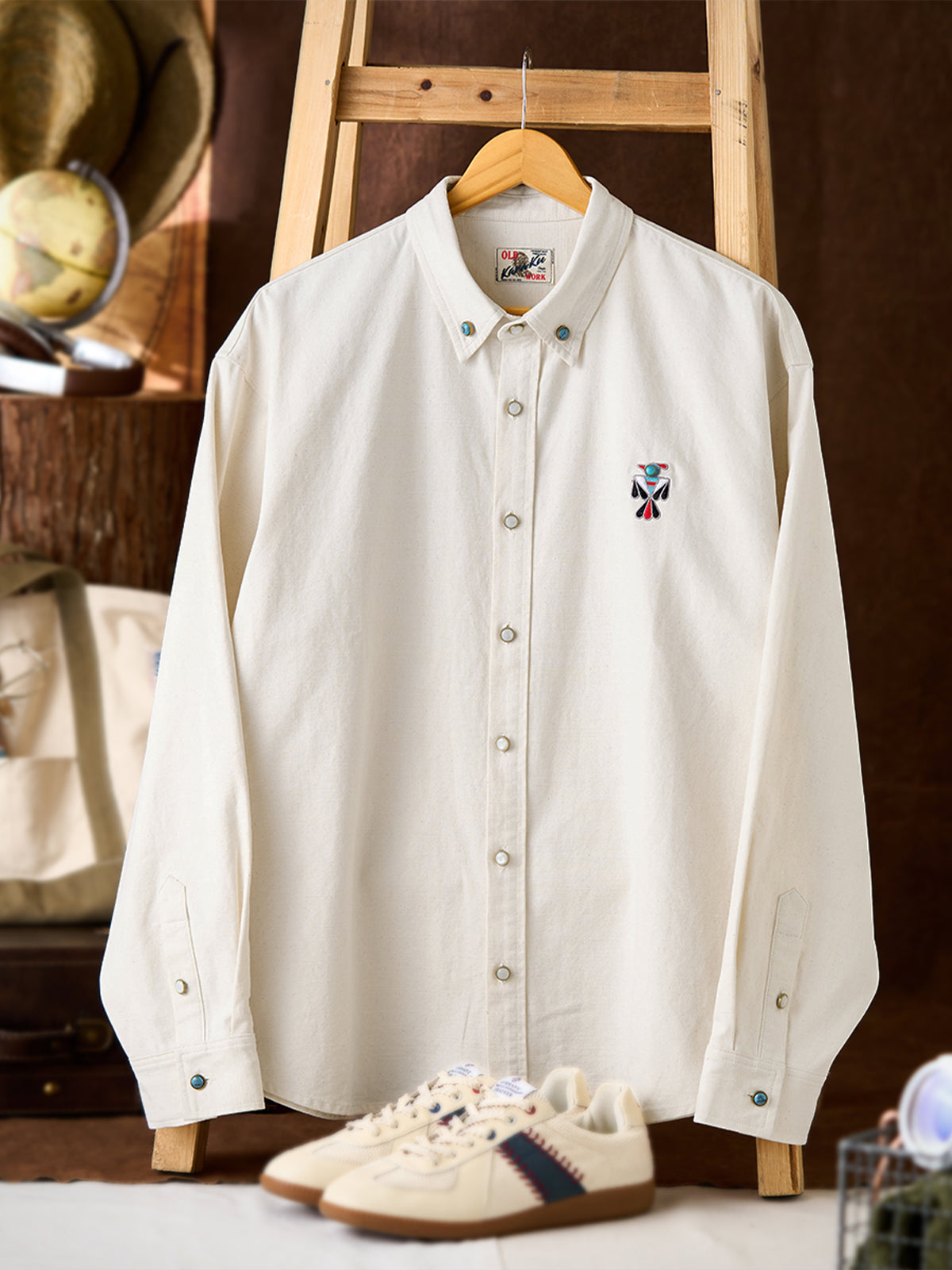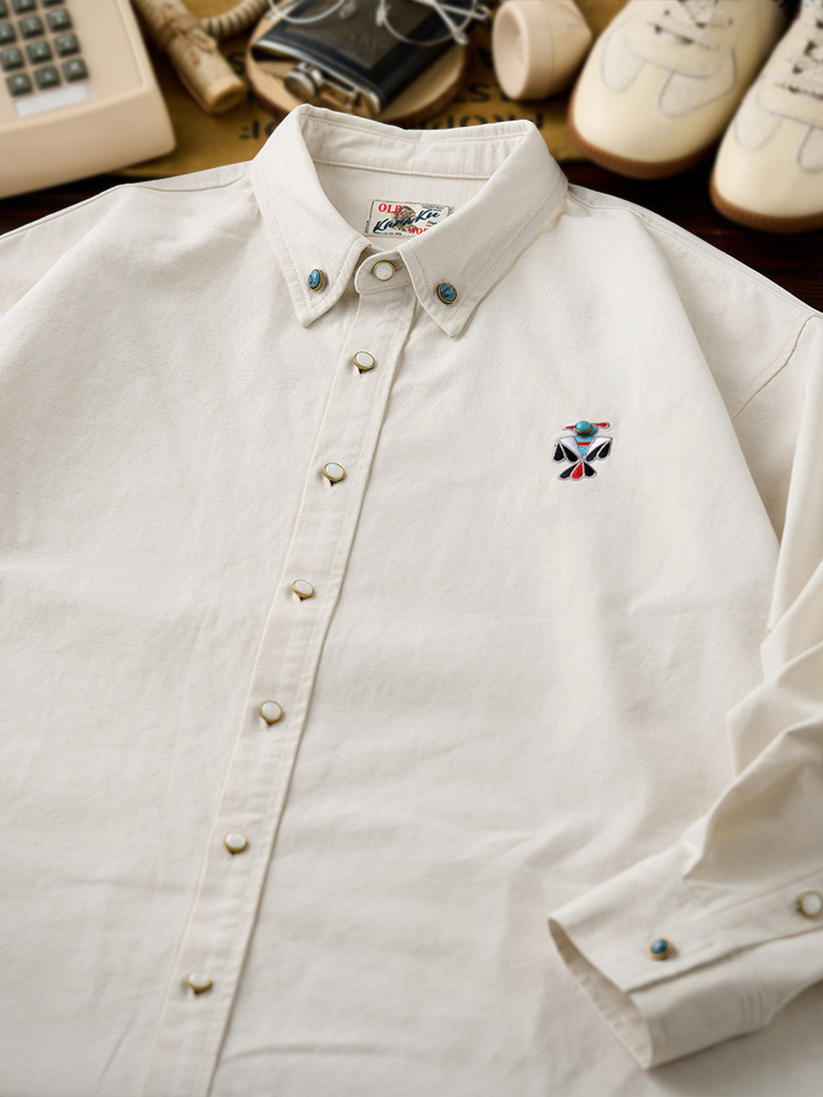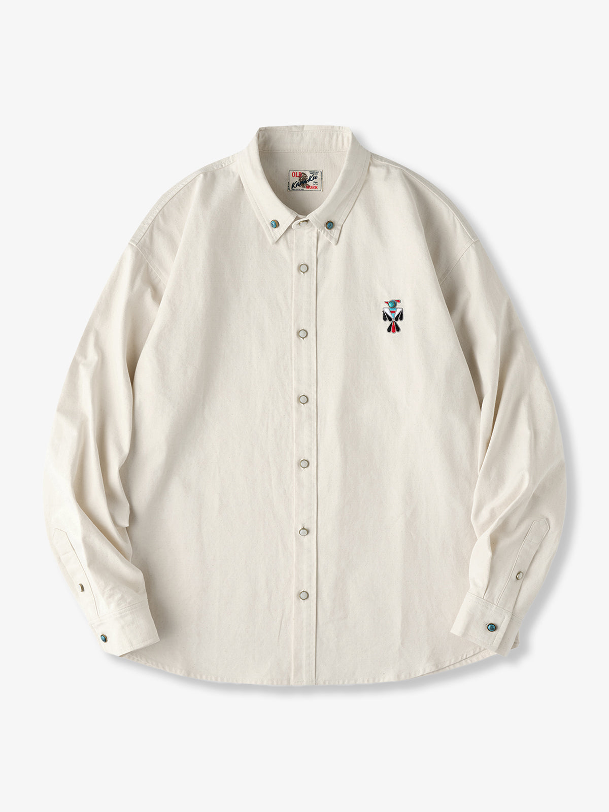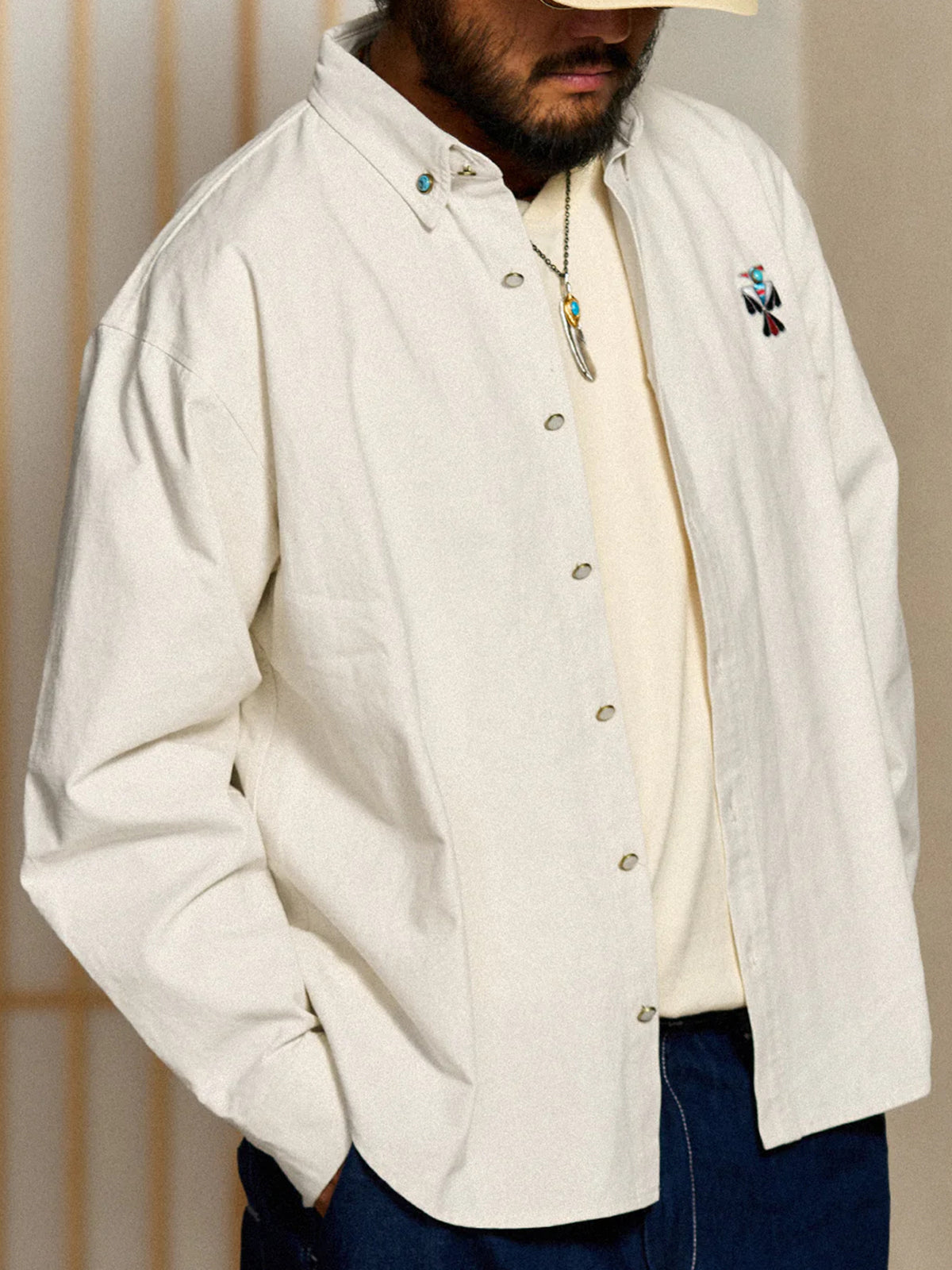 Indian-style "Turquoise Thunderbird" Embroidered Long-Sleeve Shirt
