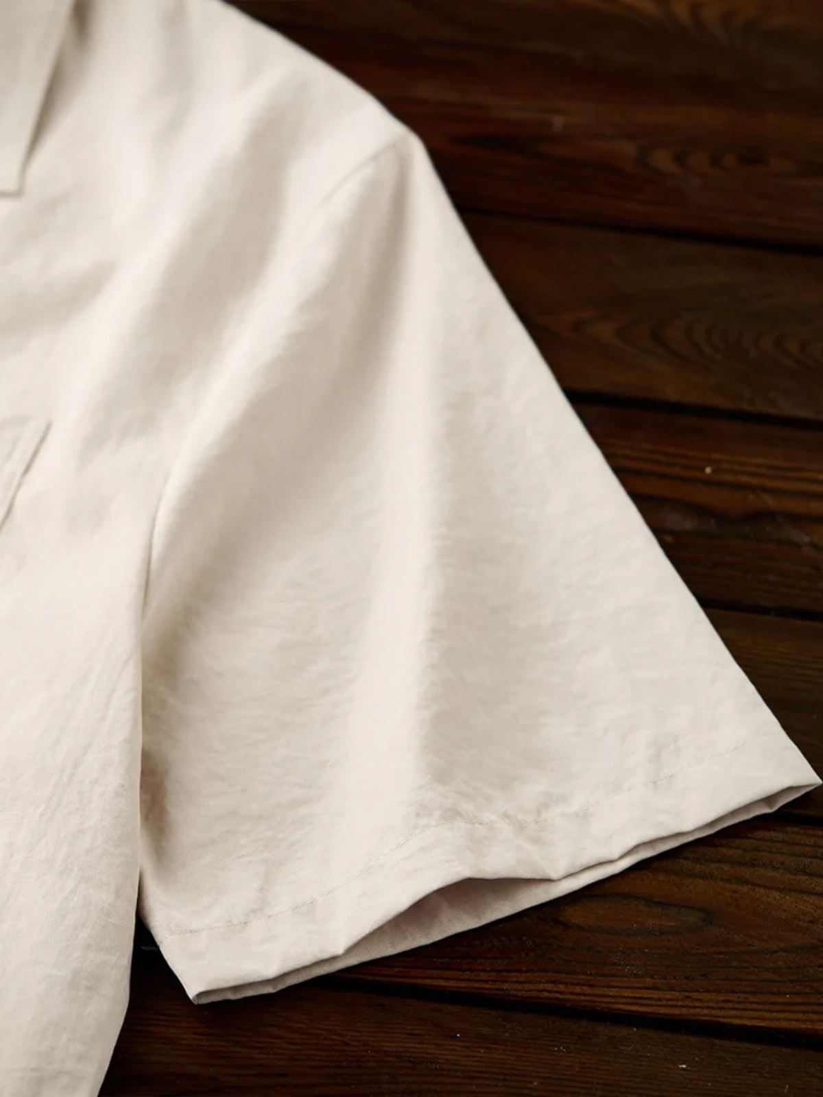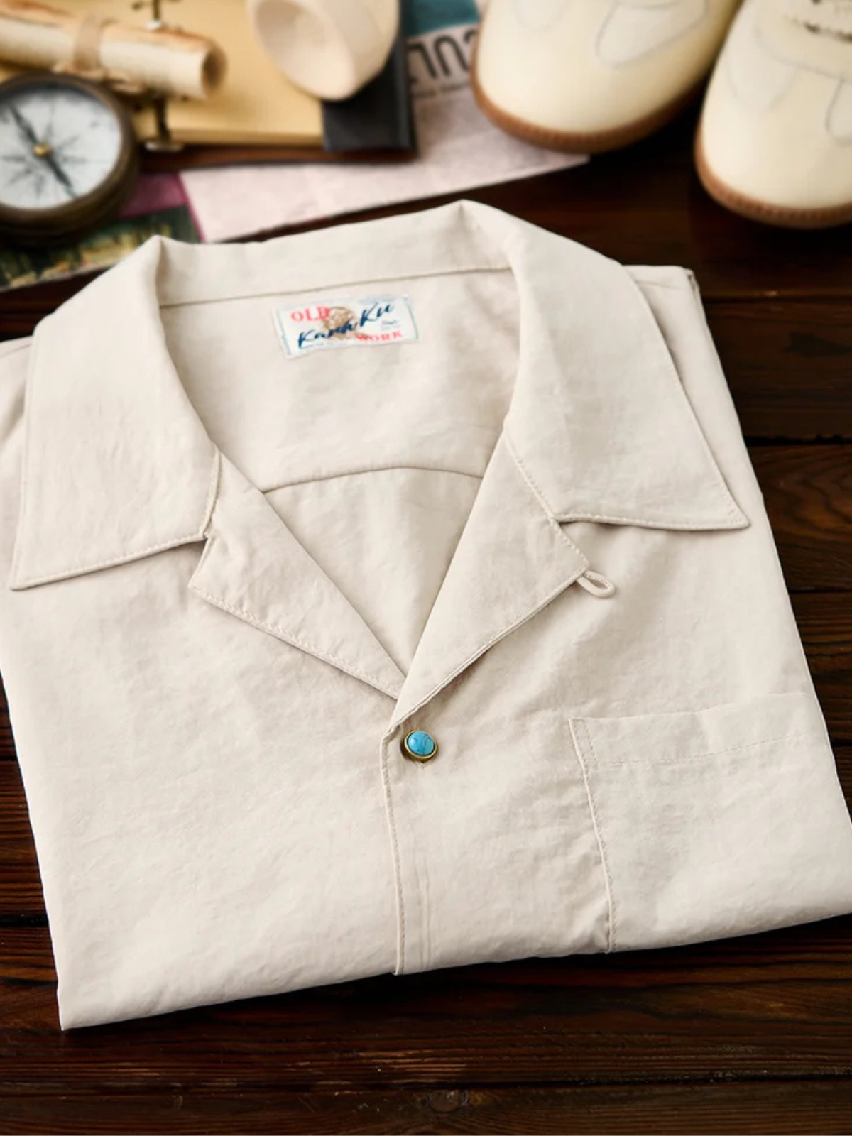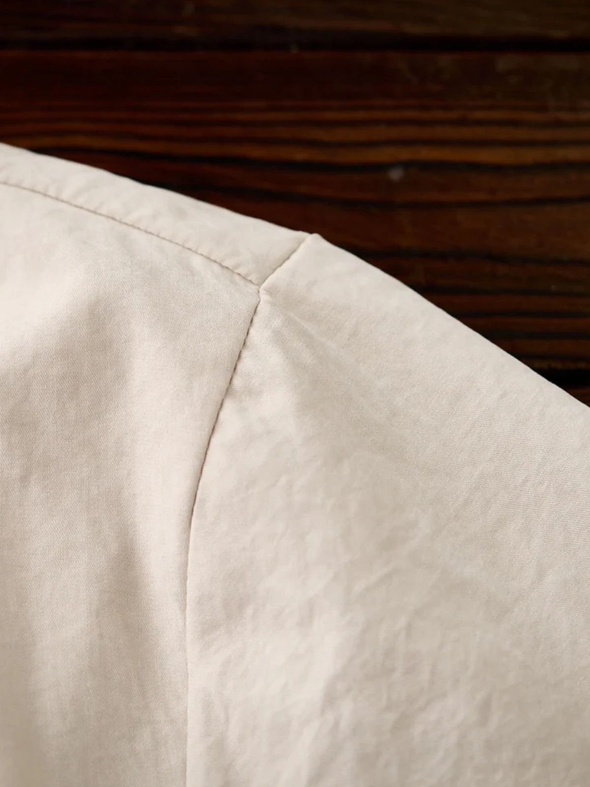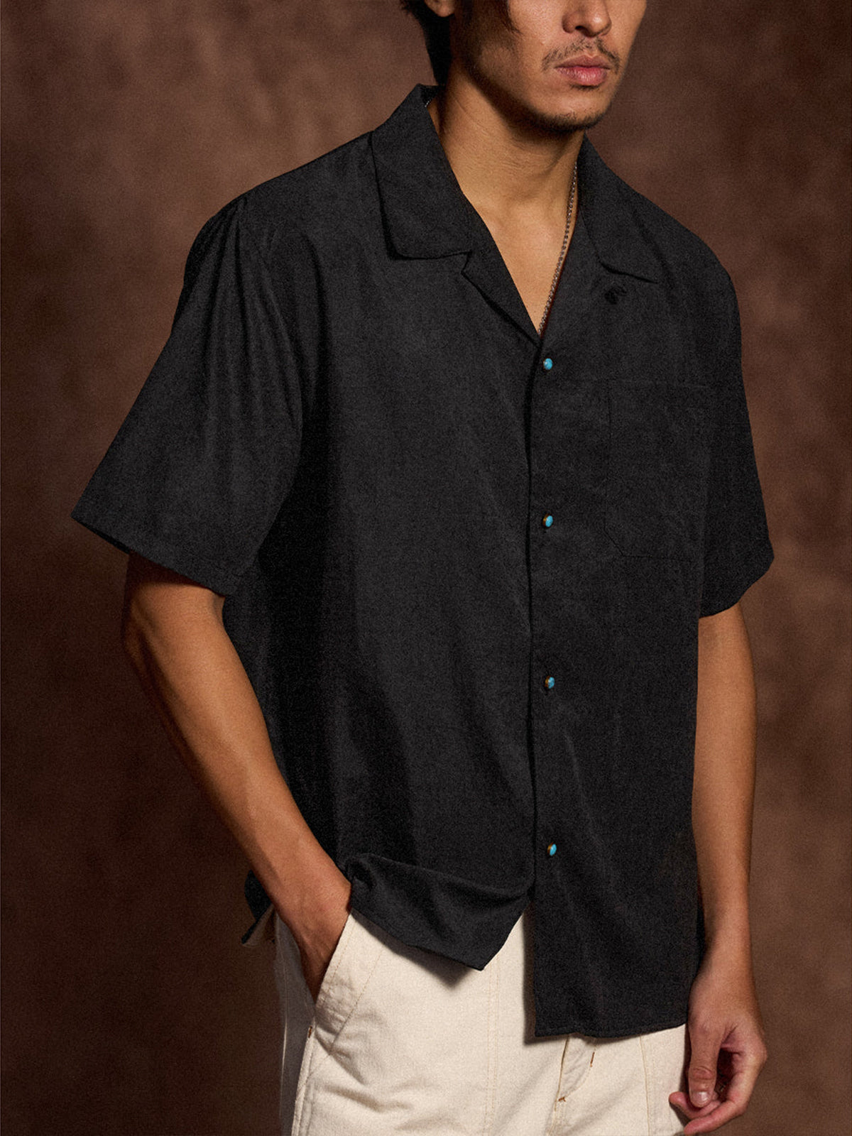 The stylish Cuban collar enhances the coordinated three-dimensional effect, and the cuffs are cut with space for easier movement. There is a pocket on the left chest, which is a point that is stuck on at the same time so as not to drop small items. The center of the metal button is inlaid with turquoise, and the button is surrounded by an antique gold and silver frame. And adds beautiful tailoring, a firm sewing method, and richness around the hem.