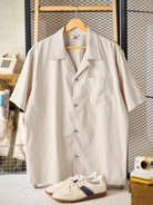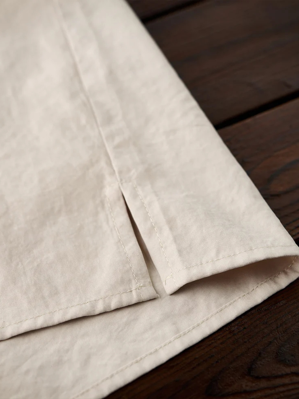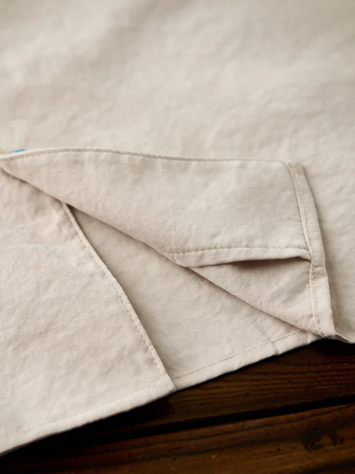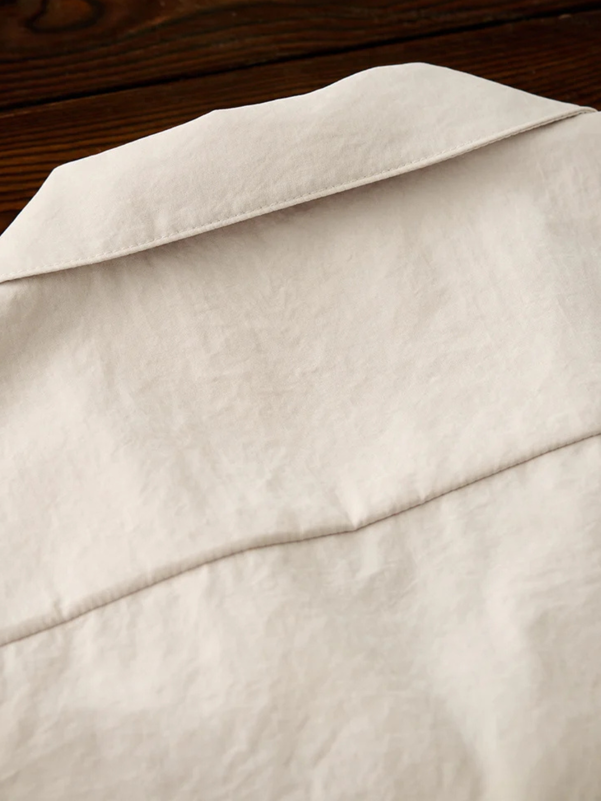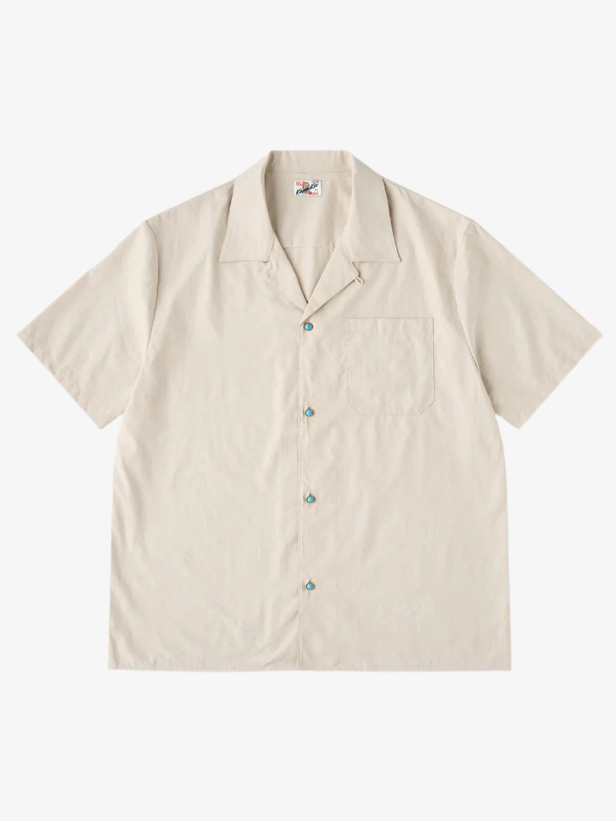 The stylish Cuban collar enhances the coordinated three-dimensional effect, and the cuffs are cut with space for easier movement. There is a pocket on the left chest, which is a point that is stuck on at the same time so as not to drop small items. The center of the metal button is inlaid with turquoise, and the button is surrounded by an antique gold and silver frame. And adds beautiful tailoring, a firm sewing method, and richness around the hem.