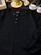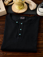 Improved Henley Neck T-Shirt with Turquoise-style Buttons