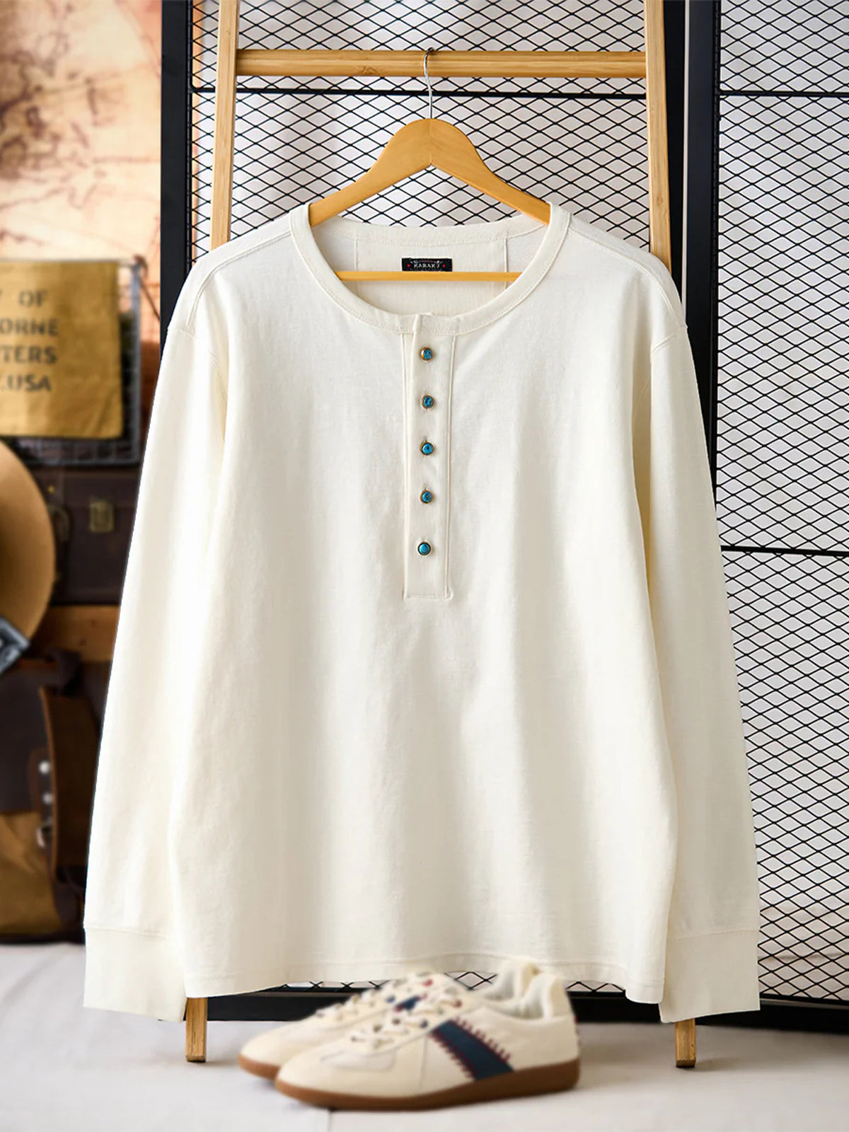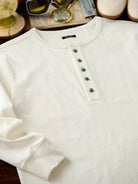 Turquoise-Style 5-Button Henley Long-Sleeve T-Shirt