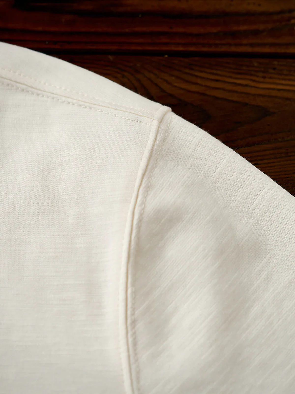 Ribbed detailing on the neck and cuffs helps maintain the garment's shape.