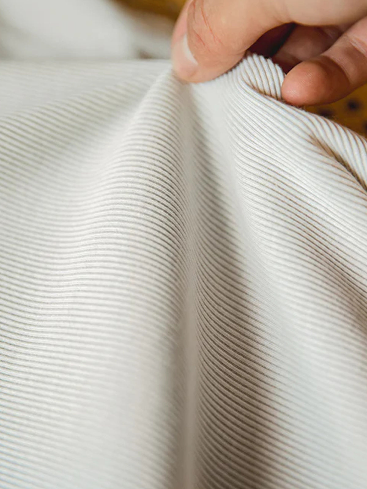 Rib, like knitwear and knitwear, is made of thread. Rib is made by weaving yarn with a flat knitting machine. The charm of ribs lies in the softness, elasticity and luxury of its texture. The soft texture of ribs is attractive. It may touch the skin directly, so if the texture is soft, it will not cause discomfort.An impressive knit made by randomly knitting with two colors of yarn. The wide random ribs have a bulge, and special attention is paid to creating a three-dimensional effect. The cut also achieves a healthy skin look.