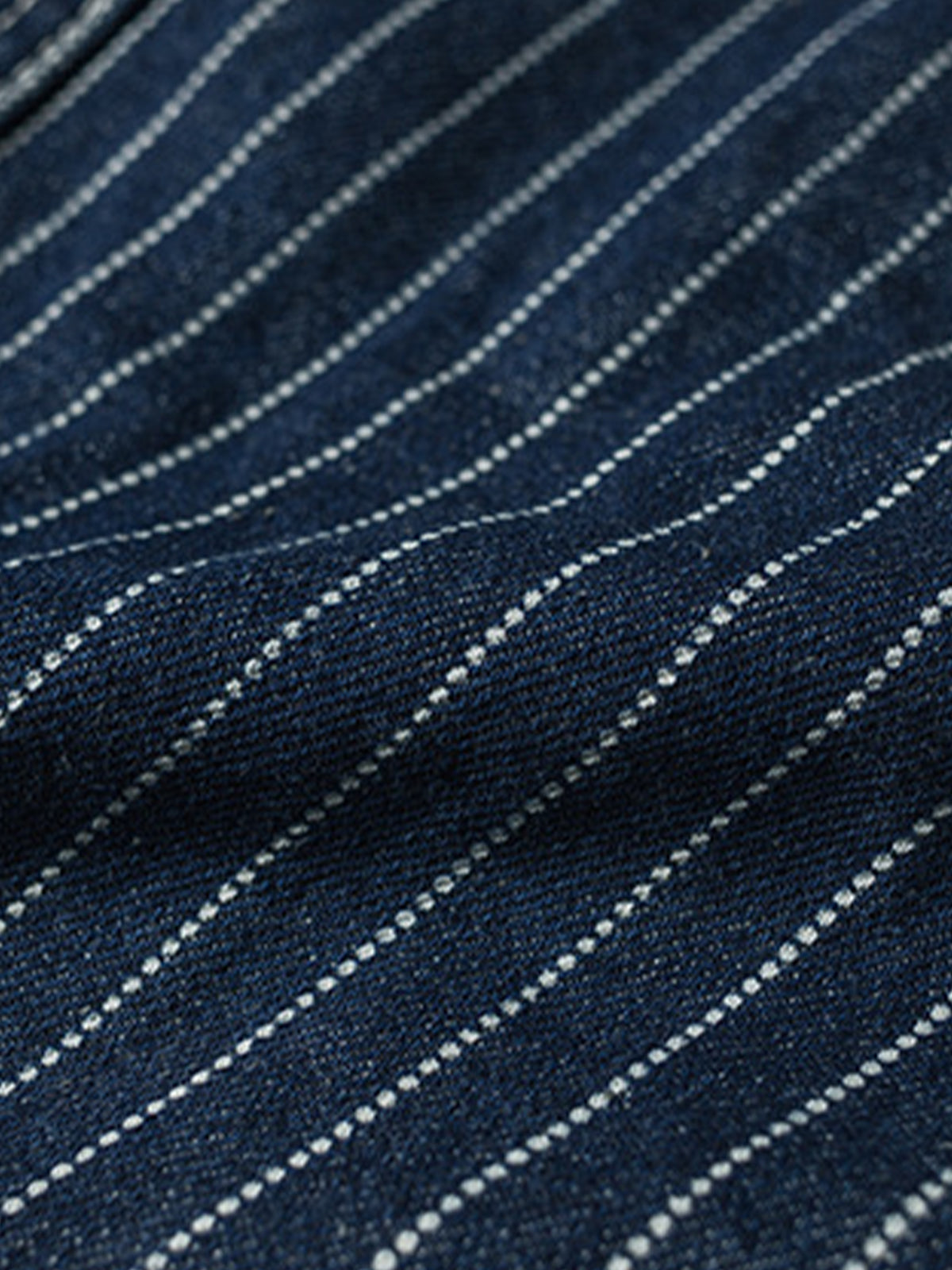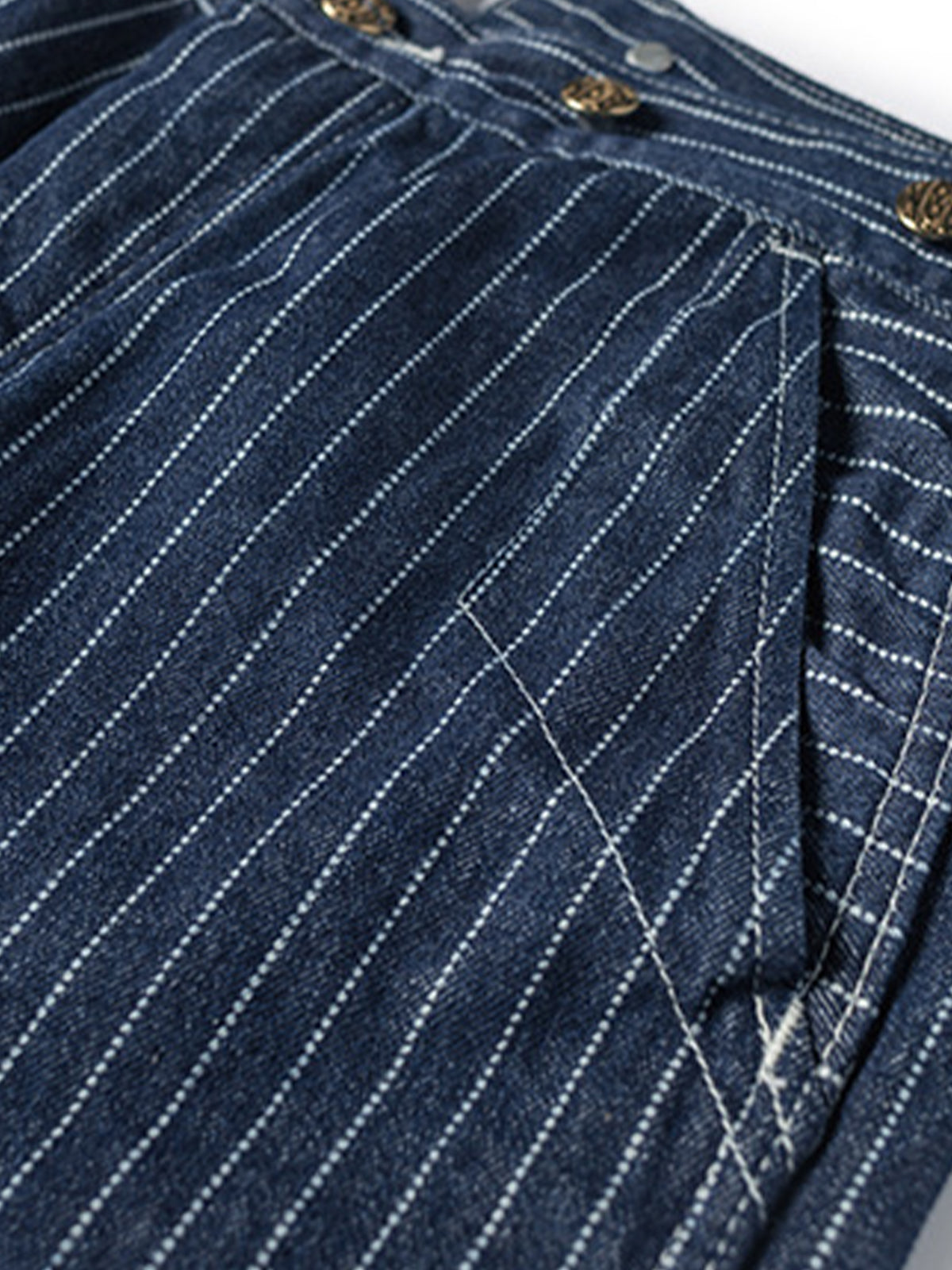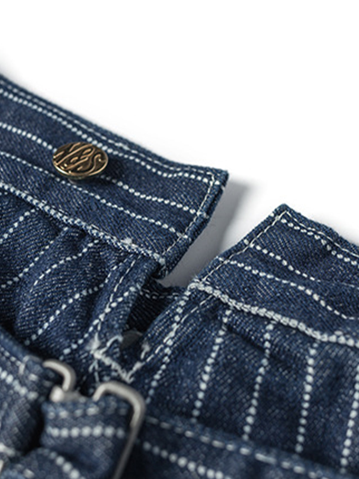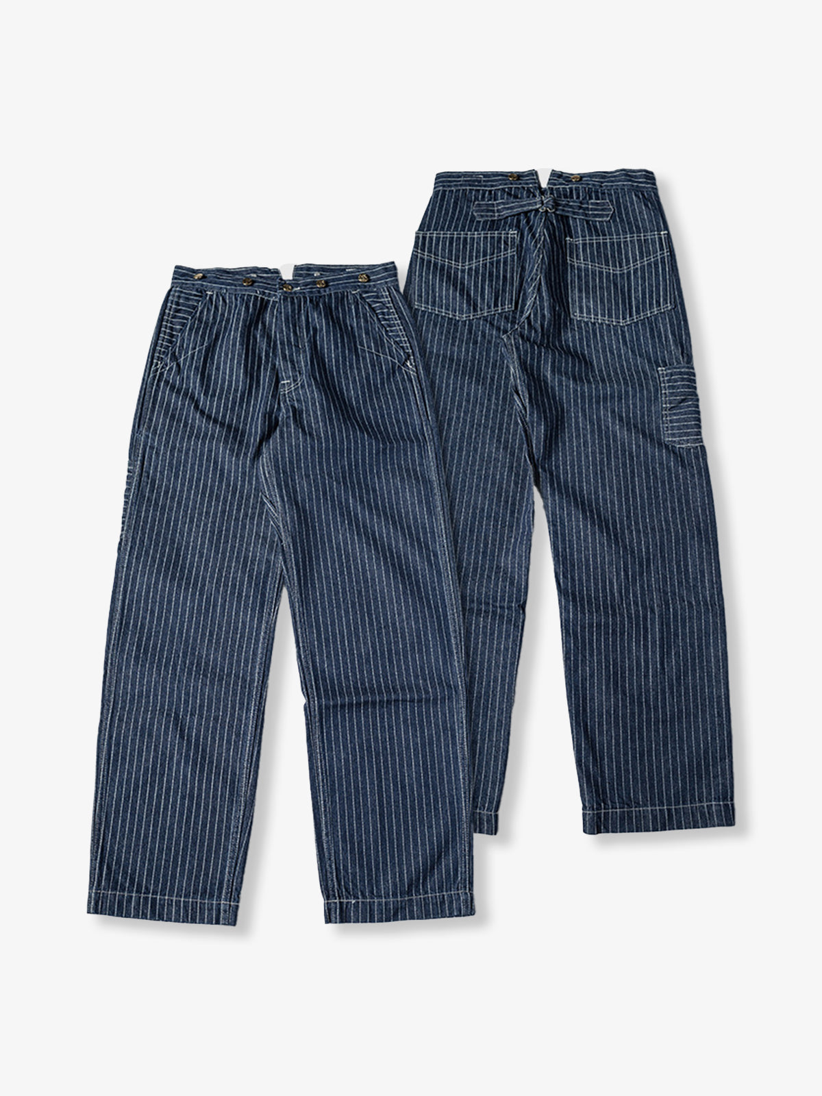 Inspired by 1920s American workwear, these Wabash Railroad Straight-Leg Jeans feature classic discharge dot stripes, a V-slit back waistband, and suspender-friendly belt loops. The mid-to-high rise and clean straight cut offer a vintage look that's easy to wear. Pair with a Henley tee or old-school shirt for an effortlessly retro style.