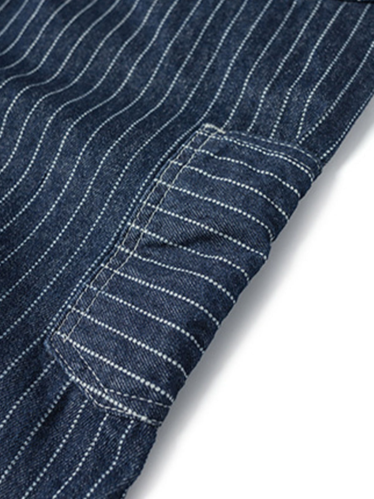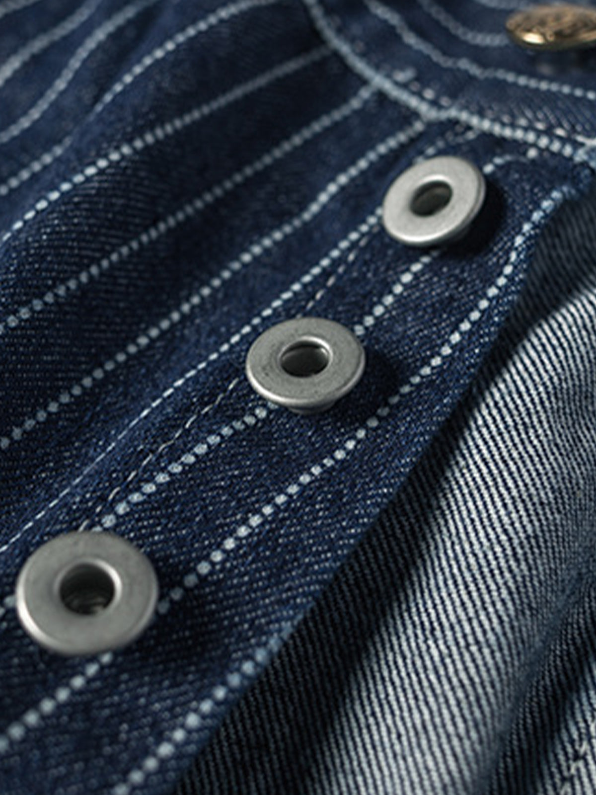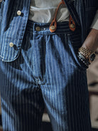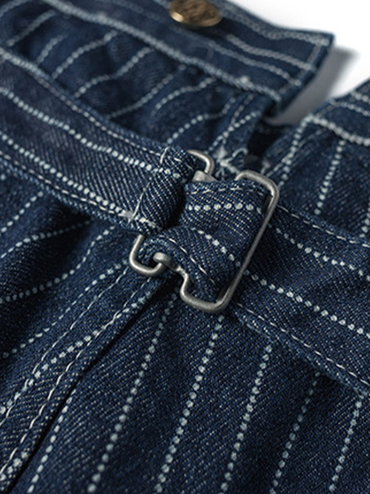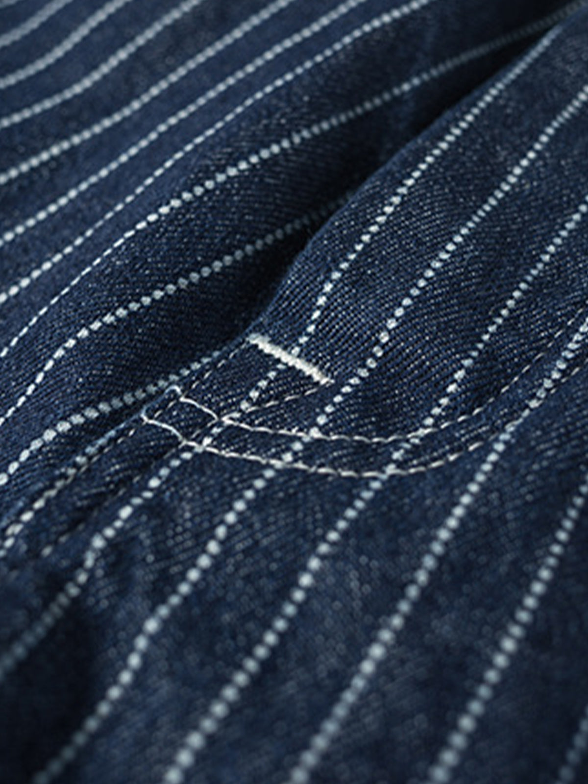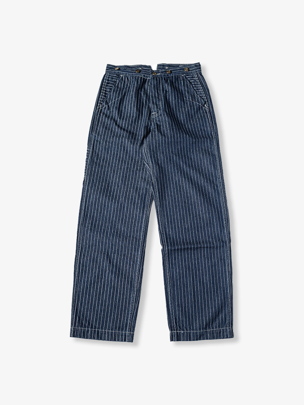 Inspired by 1920s American workwear, these Wabash Railroad Straight-Leg Jeans feature classic discharge dot stripes, a V-slit back waistband, and suspender-friendly belt loops. The mid-to-high rise and clean straight cut offer a vintage look that's easy to wear. Pair with a Henley tee or old-school shirt for an effortlessly retro style.