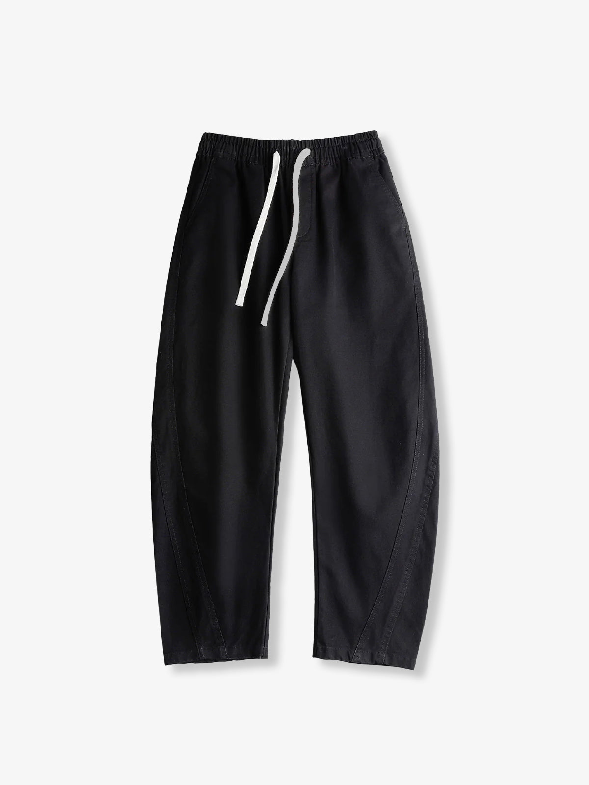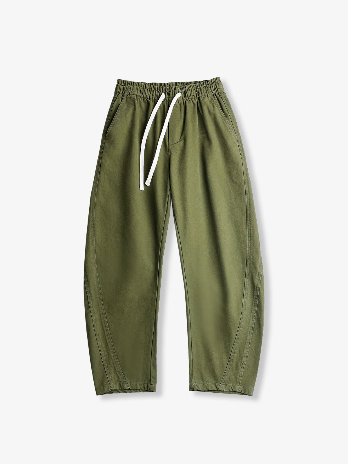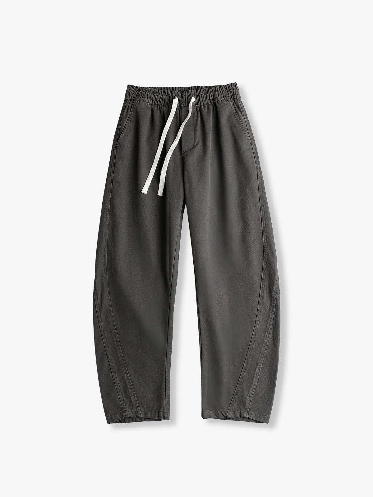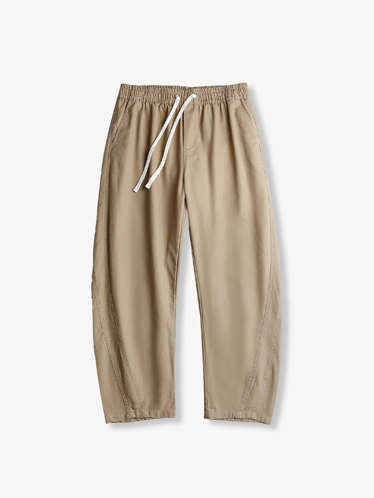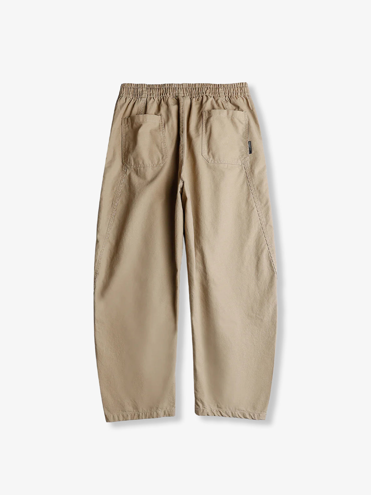 It features a tapered silhouette with plenty of room around the hips and thighs, and the design tapers slightly toward the hem, creating a delicately balanced silhouette that gives a relaxed feel without becoming sloppy. The waist has a drawstring, so it can be worn comfortably without a belt. Highlighting the sense of design,