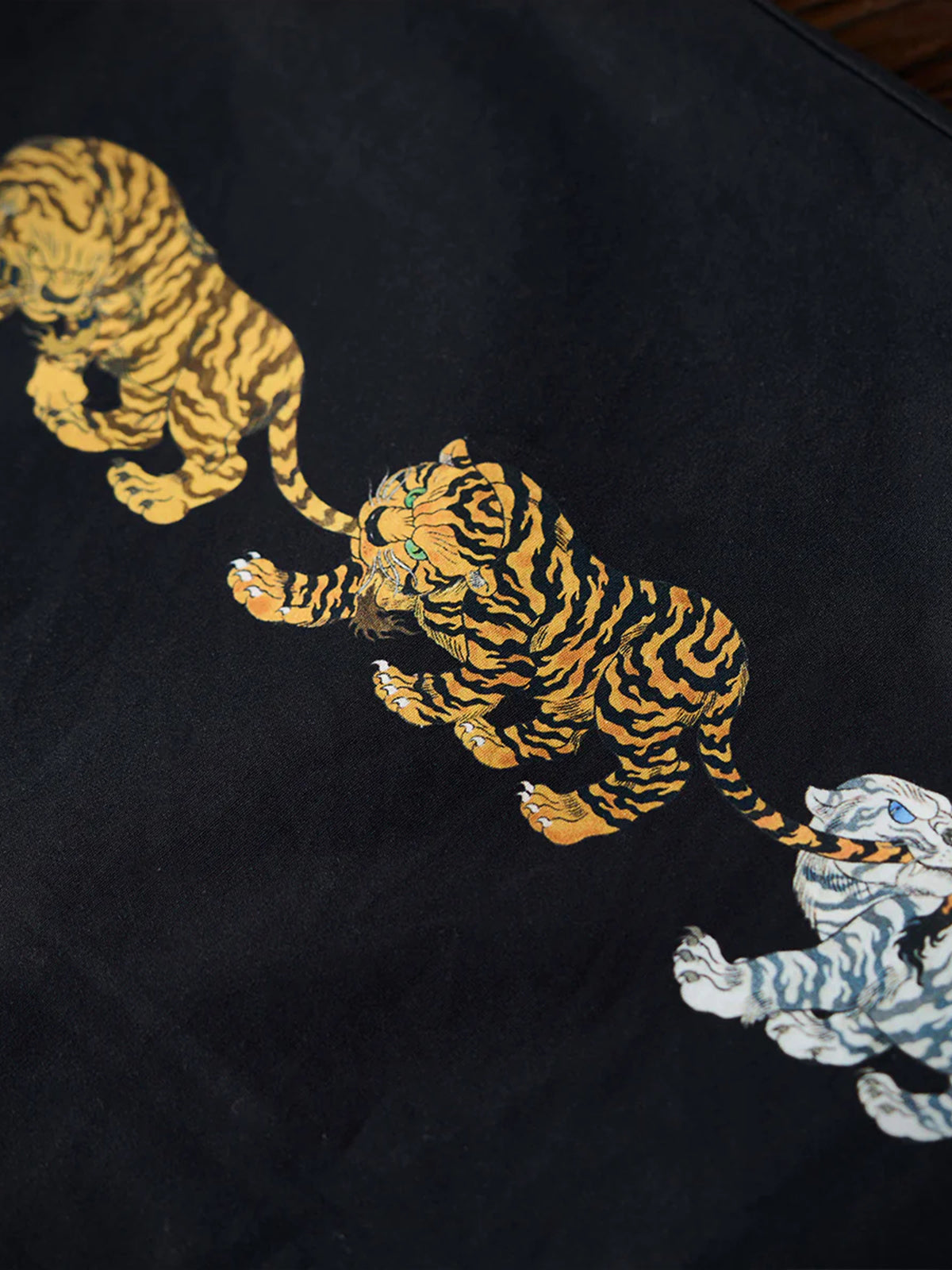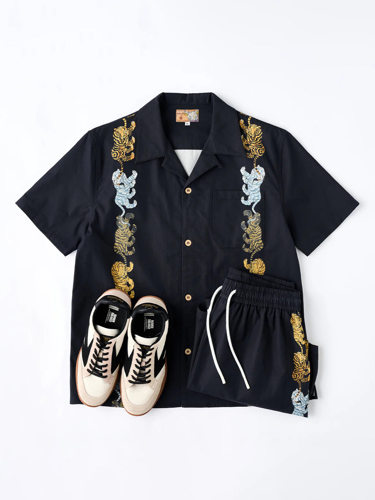 KARAKU×Ayako Ishiguro "Three Tiger Rows" Vertical Print Aloha Shirt