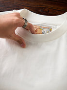 The unique "a row of tigers biting their tails" is a design with a circular repetitive structure that has humorous and philosophical meanings and seems to have no end. The tigers seem to help and rely on each other, which may suggest the interconnectedness of nature and human society. The tiger's fur is realistically drawn with fine stitching, and each tiger's eyes have different colors and expressions, emphasizing the three-dimensional sense and character. The whole T-shirt is pure white, and the embroidery on the sleeves is a bold embellishment. The balance between simplicity and charm gives it a sophisticated look.