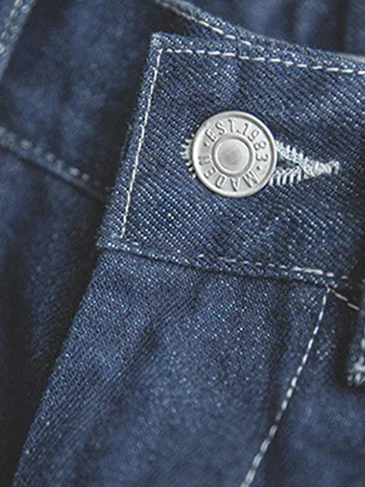 This item inherits the manufacturing with excellent practicality and durability in people's daily life in the past. From the material representing the 11.5OZ denim that workers love, the original denim fabric that thoroughly focuses on the twisting and density of the original yarn is hard, has a strong tension, and has a good texture, and can stand alone as it is. It is characterized by a deep crotch, and the silhouette is neatly displayed with a wide and calm fabric.